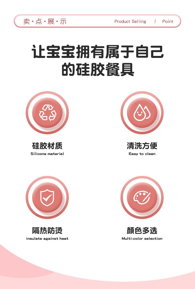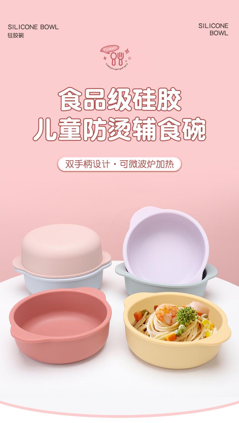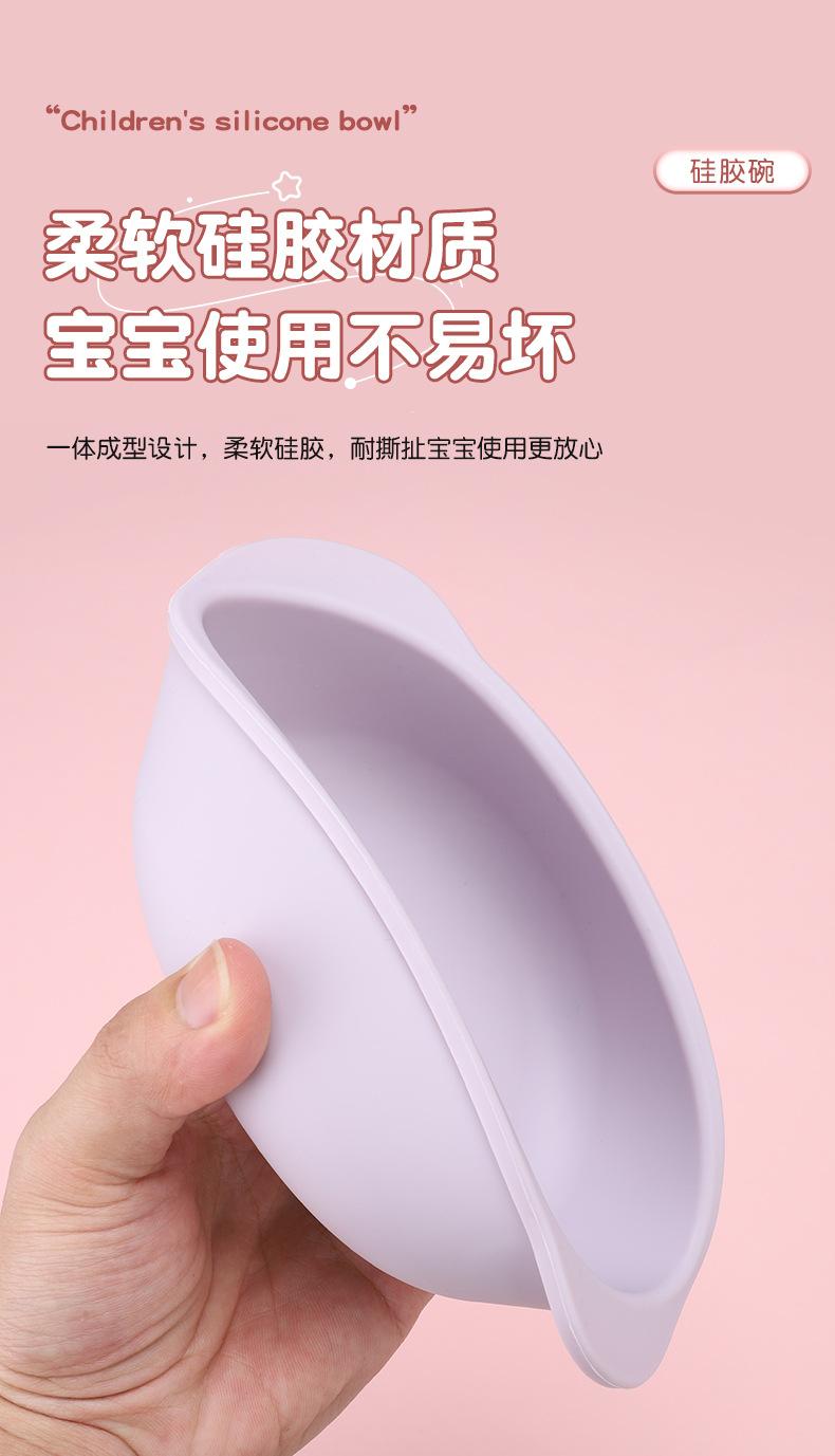 Vajilla para alimentación infantil al por mayor Grado alimenticio Tazón con ventosa para bebé Anticaída Plato de silicona para la cena Set de tazón para alimentos Tazón para bebé