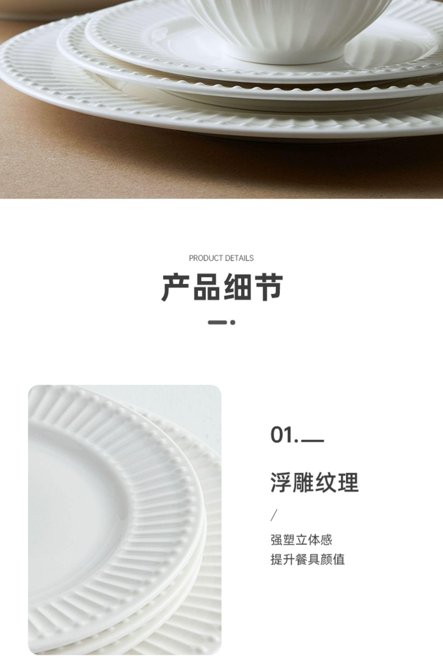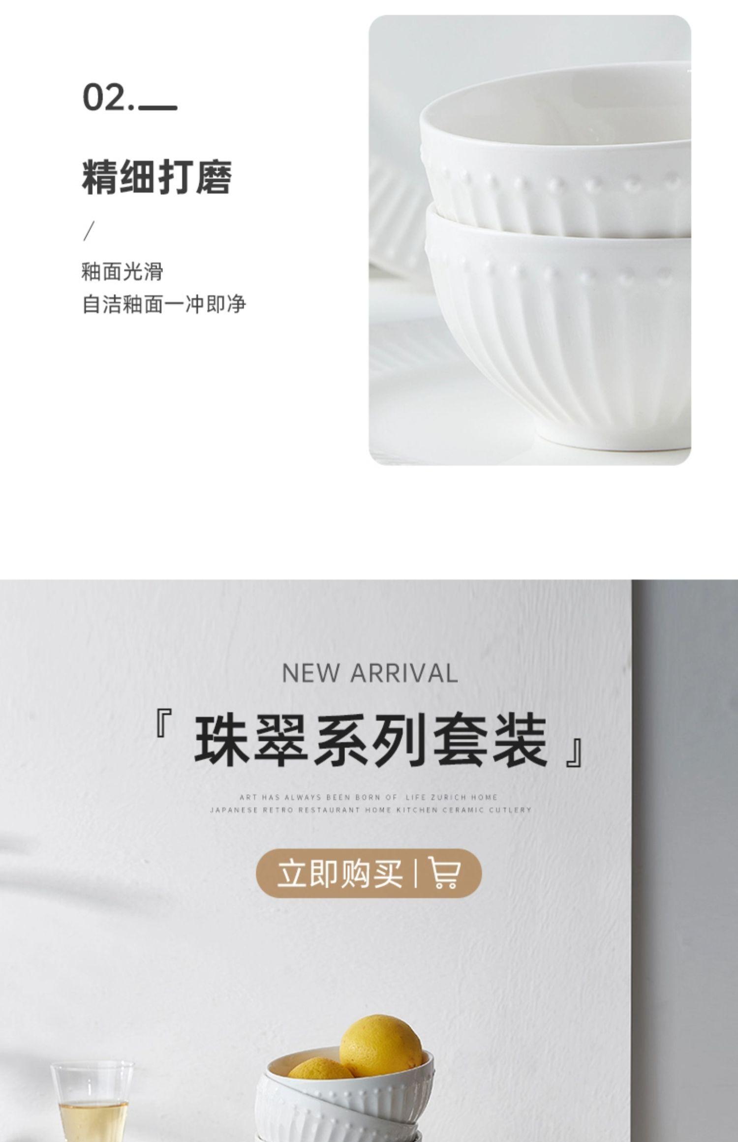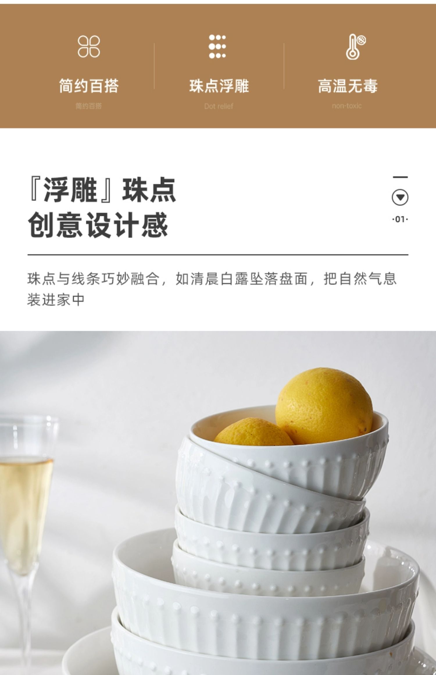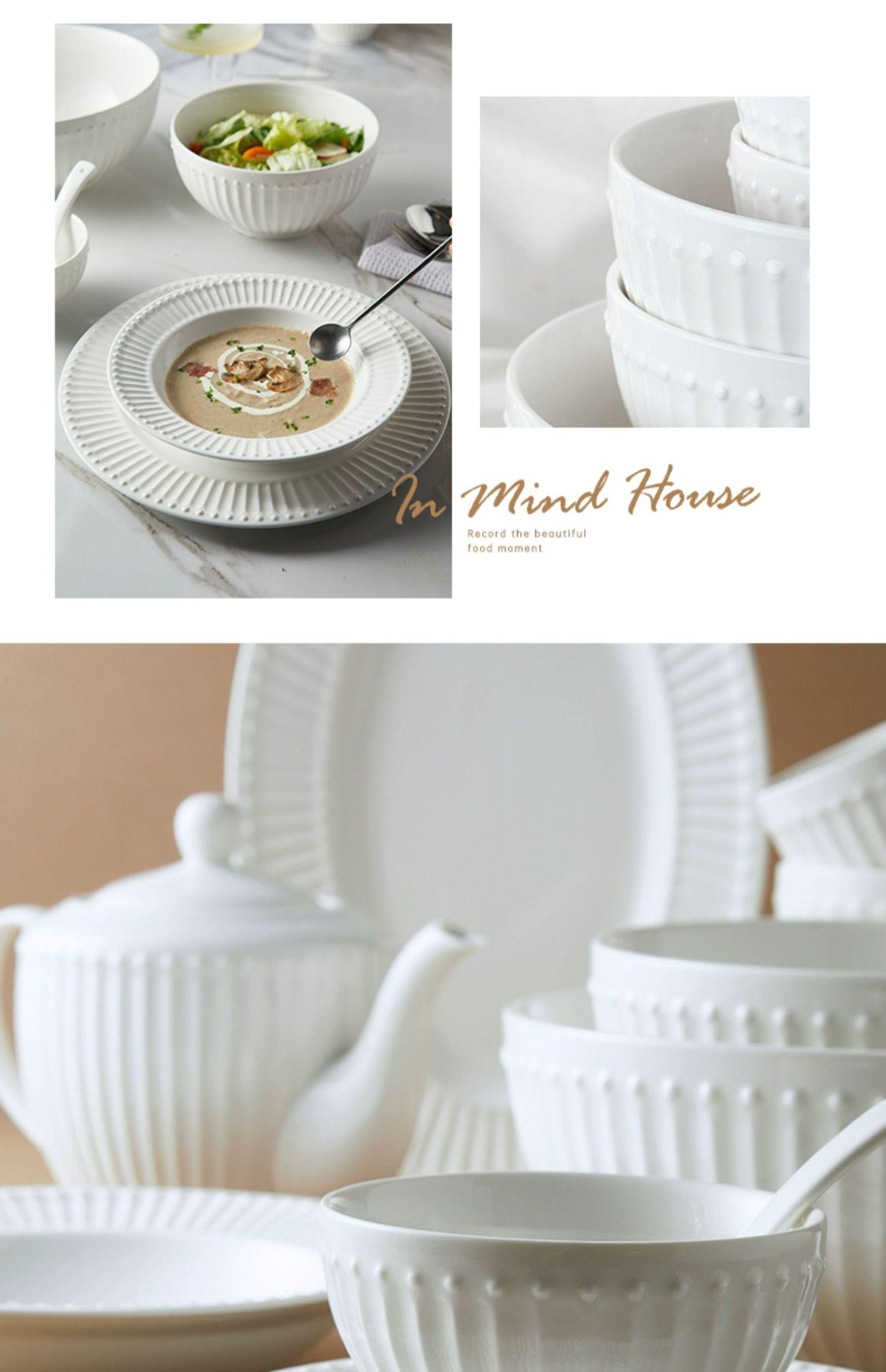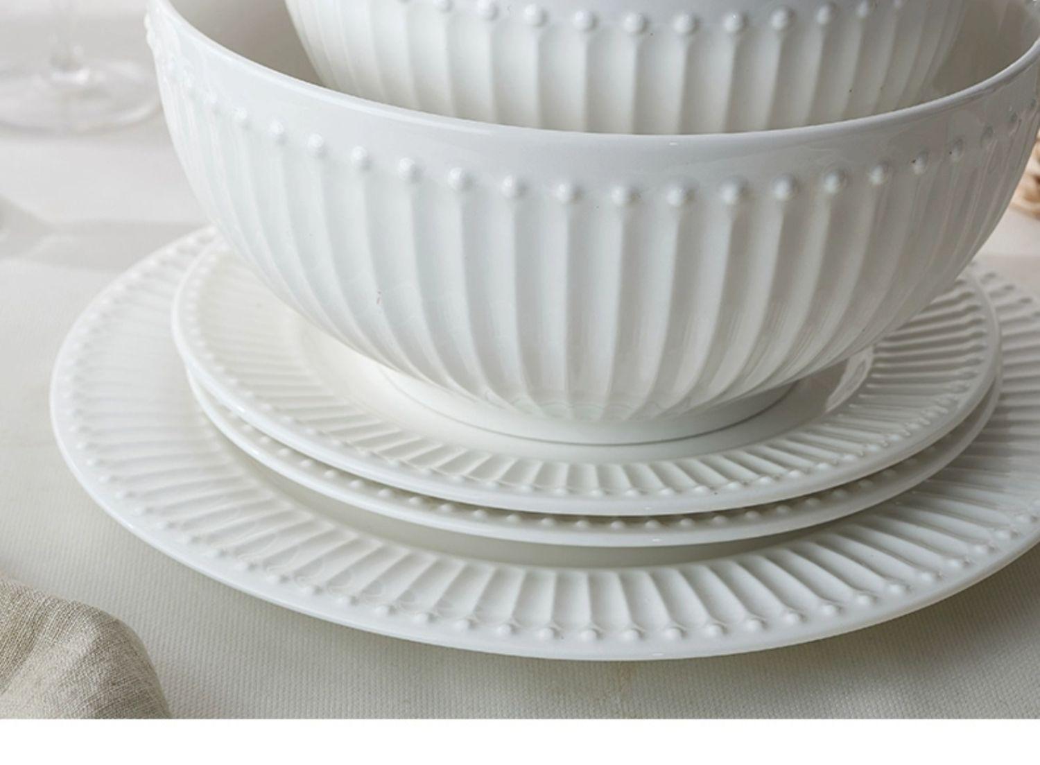 Juego de Vajilla de Cerámica Blanco Simple Porcelana Relieve de Cuentas y Jade Juego de Vajilla para el Hogar Cuencos y Platos para Comer