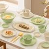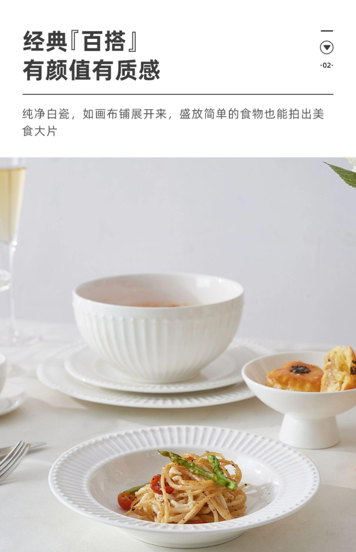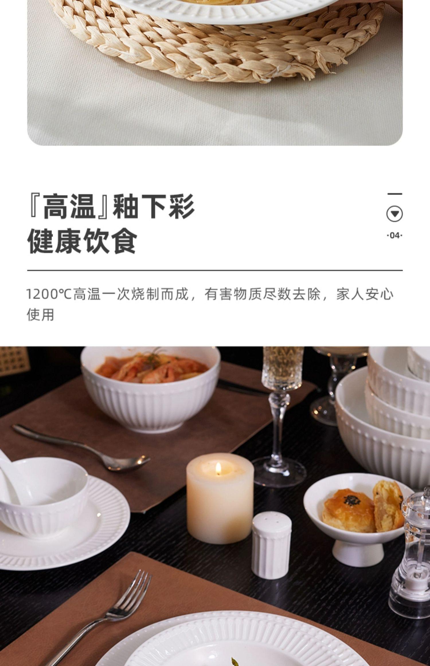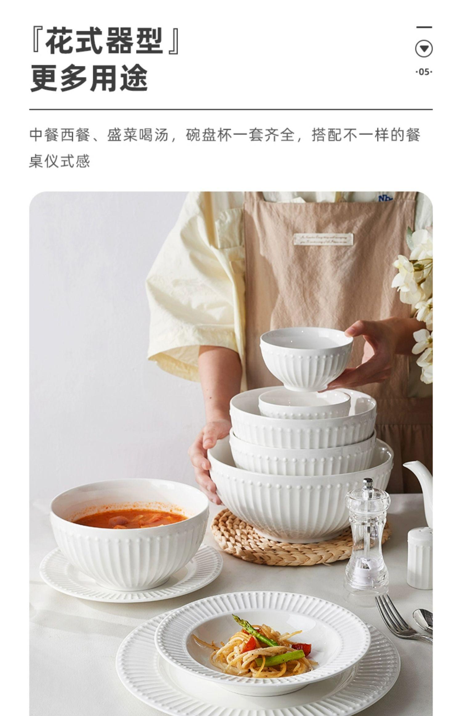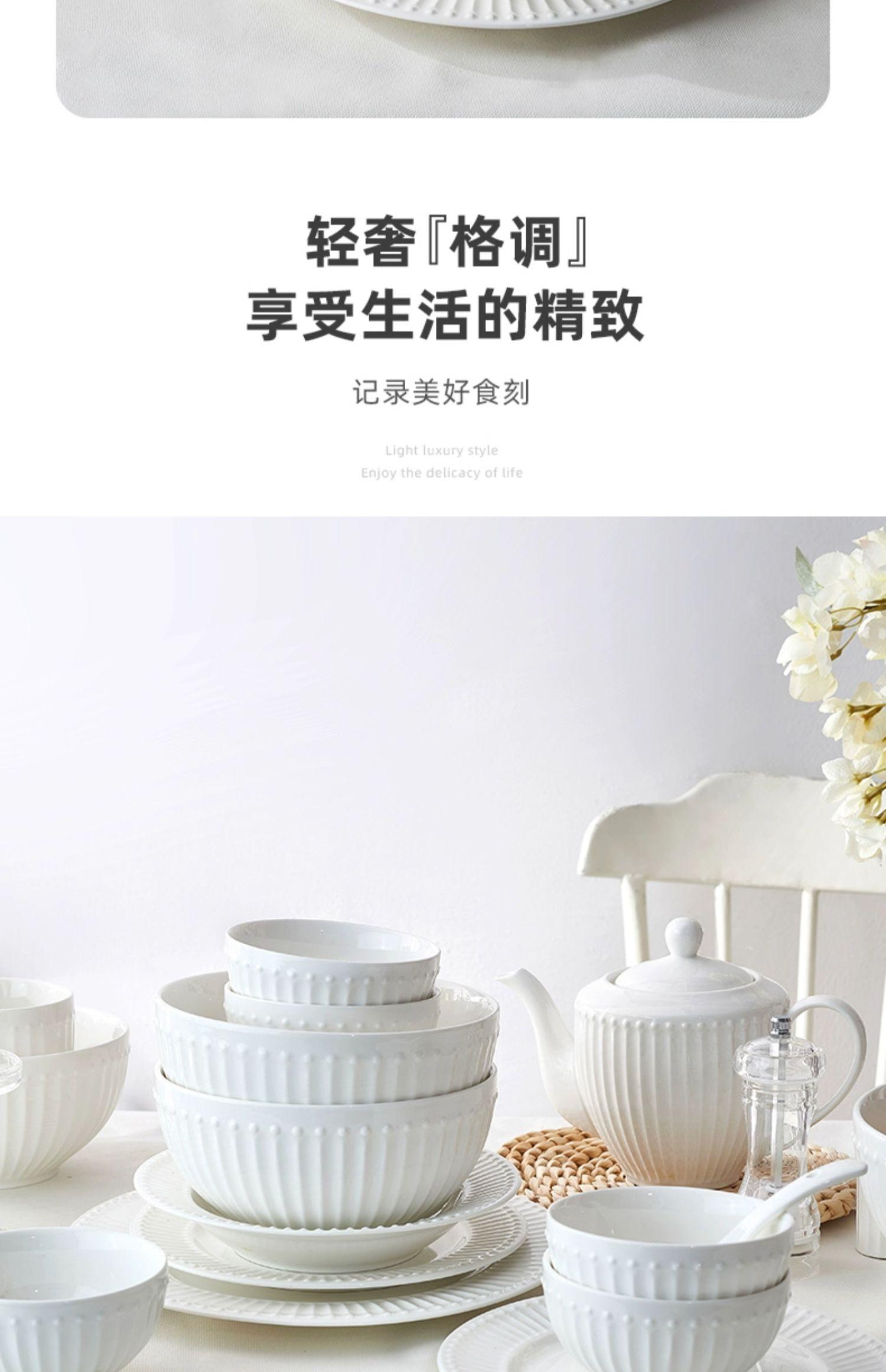 Juego de Vajilla de Cerámica Blanco Simple Porcelana Relieve de Cuentas y Jade Juego de Vajilla para el Hogar Cuencos y Platos para Comer