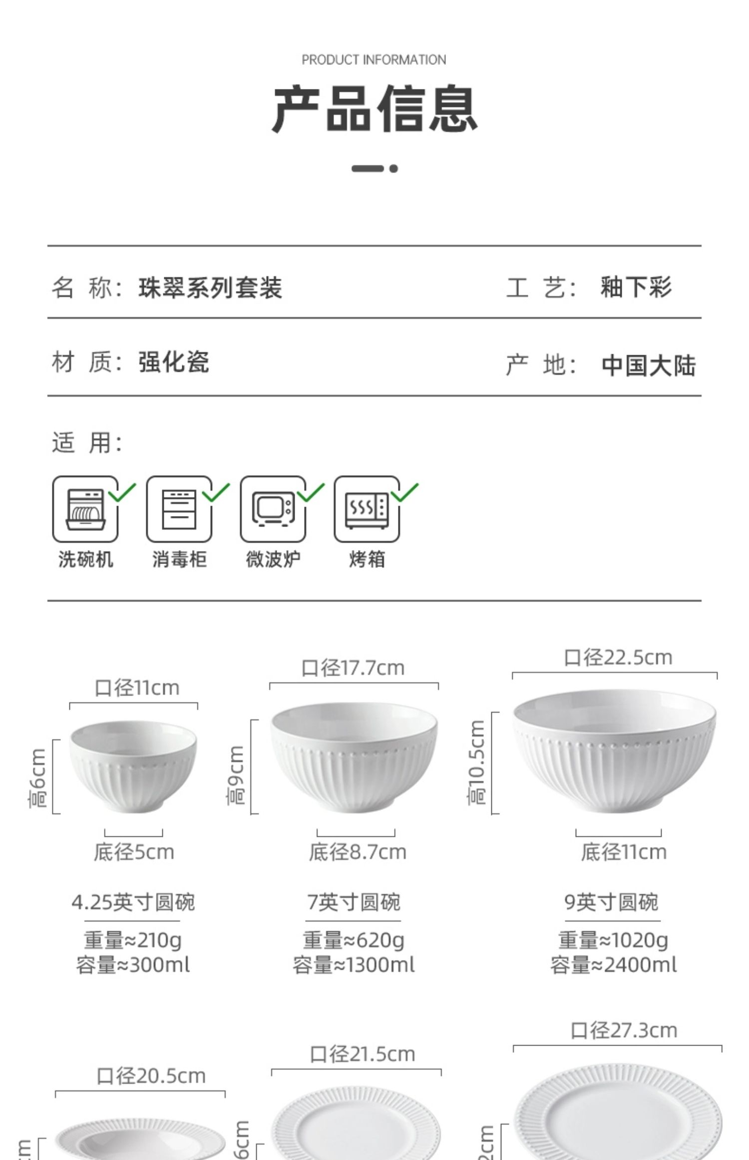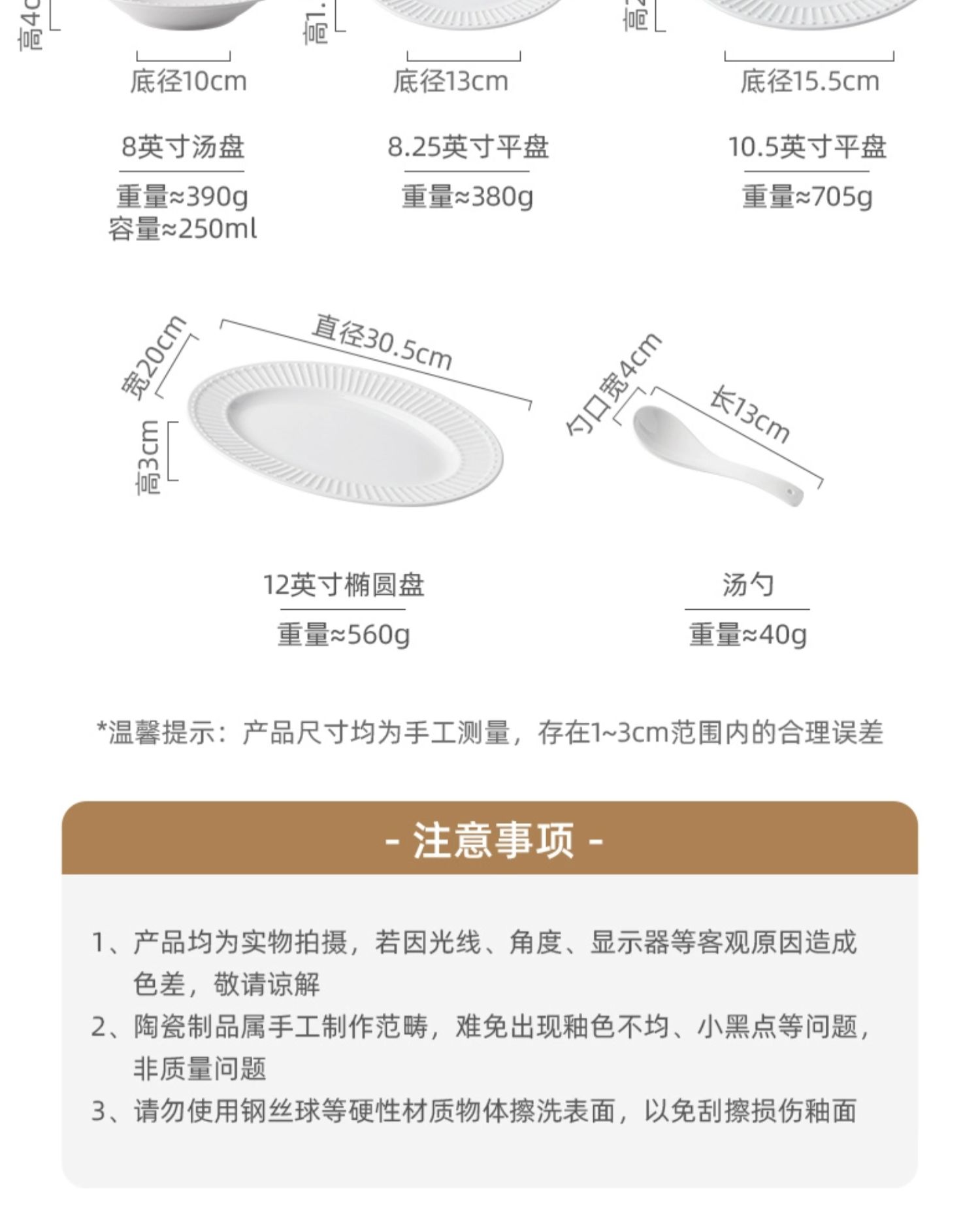 2 pieces of 4.25-inch rice bowls, 7inch round bowl, 9inch round bowl, 8.25inch flat plate, 8inch soup plate, 1...
