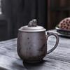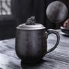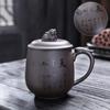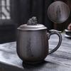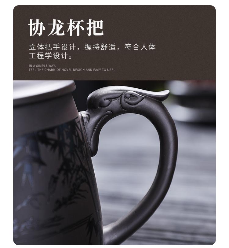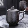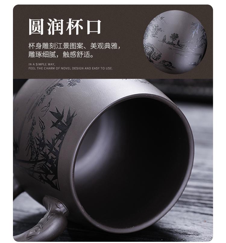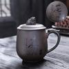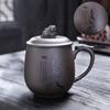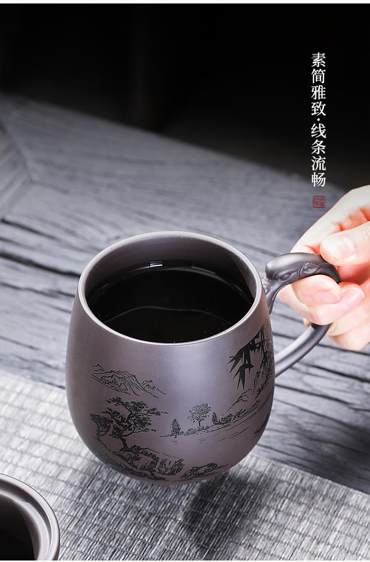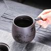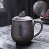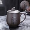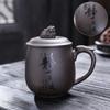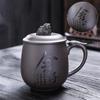 Taza de Agua para Oficina de Arena Púrpura con Grabado, Taza de Té para Oficina de Gran Capacidad, Taza de Té para Hombre con Tapa, Personalización de Taza de Cerámica