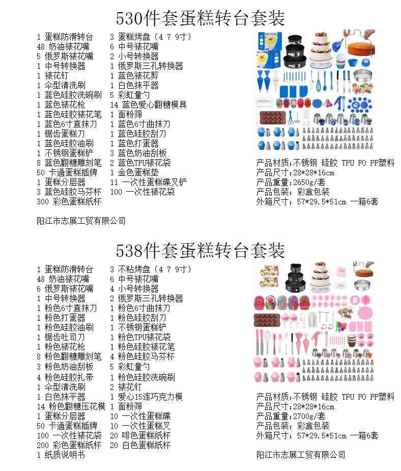 471-piece cake turntable set, 530-piece cake turntable set, 538-piece cake turntable set