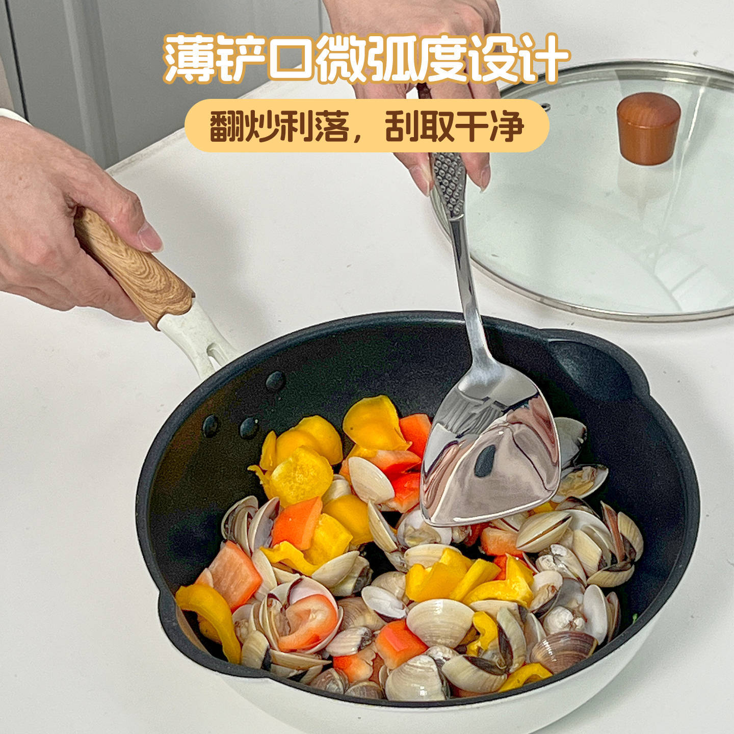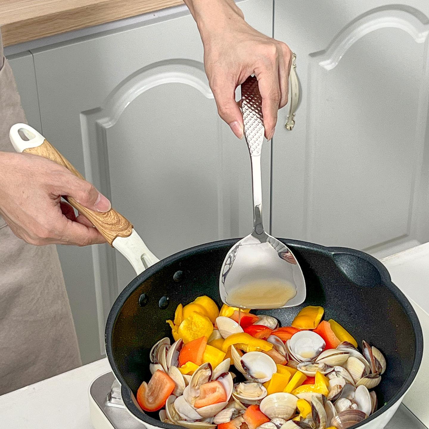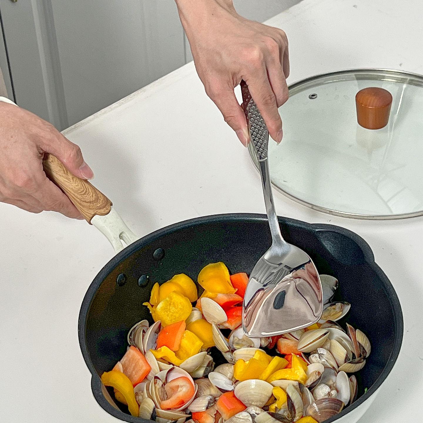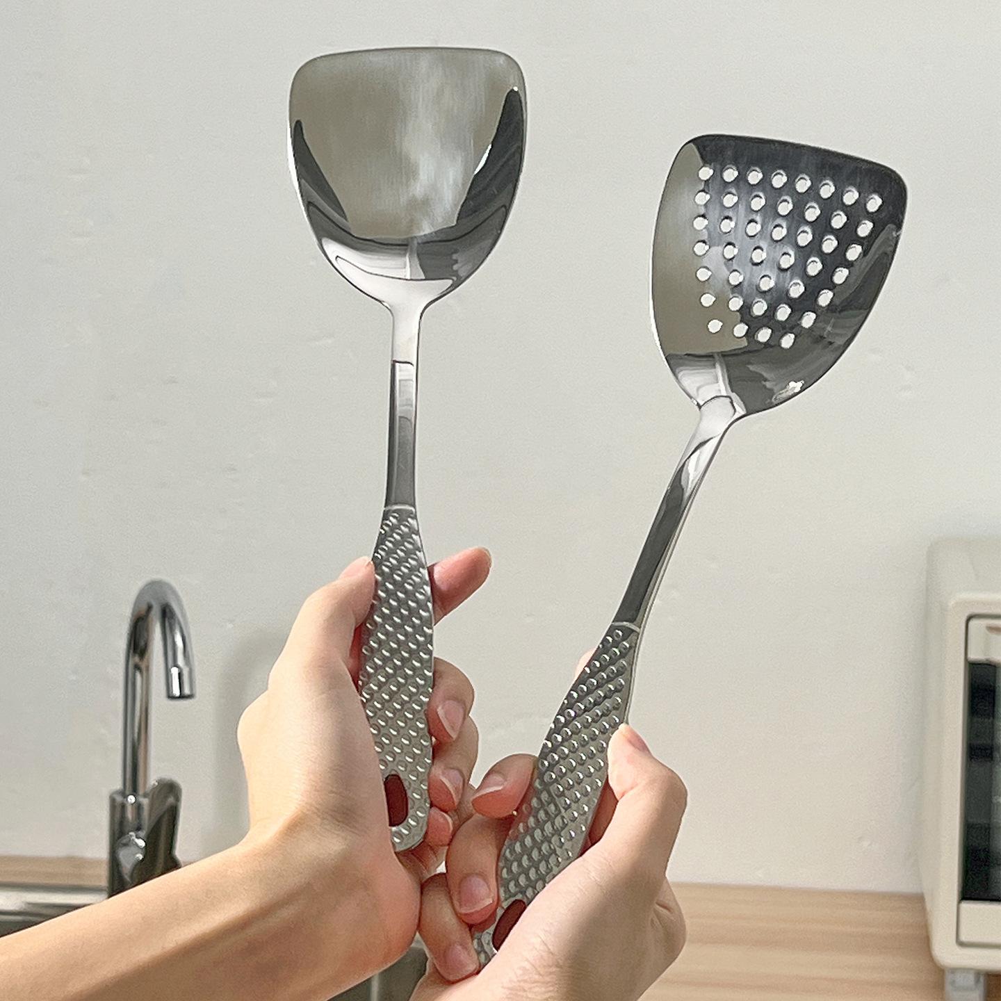 Juego de utensilios de cocina de acero inoxidable 304 martillado Espátula para saltear Espátula para freír Espátula ranurada Espátula de mango corto Espátula pequeña para wok Herramientas de cocina engrosadas