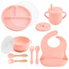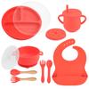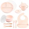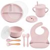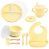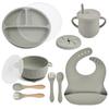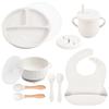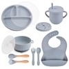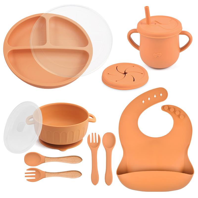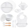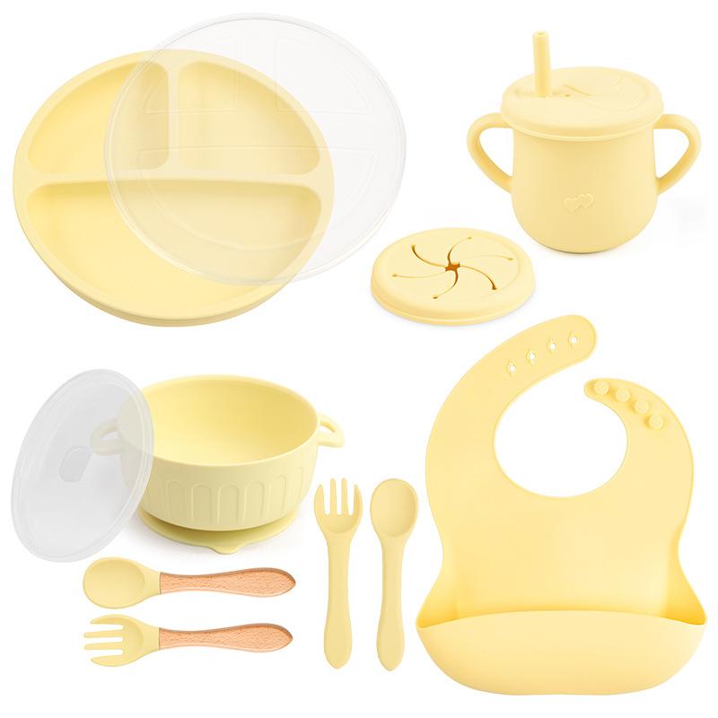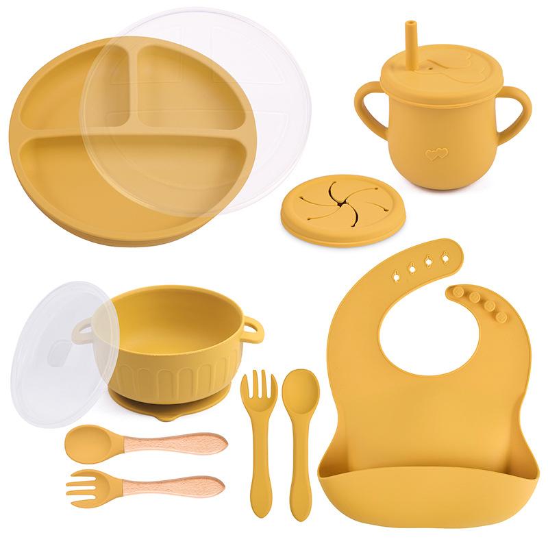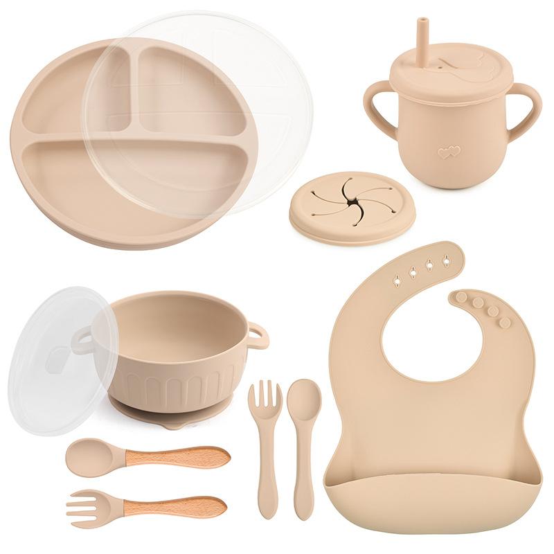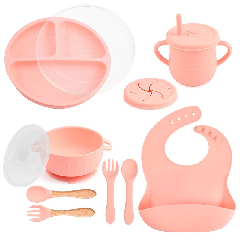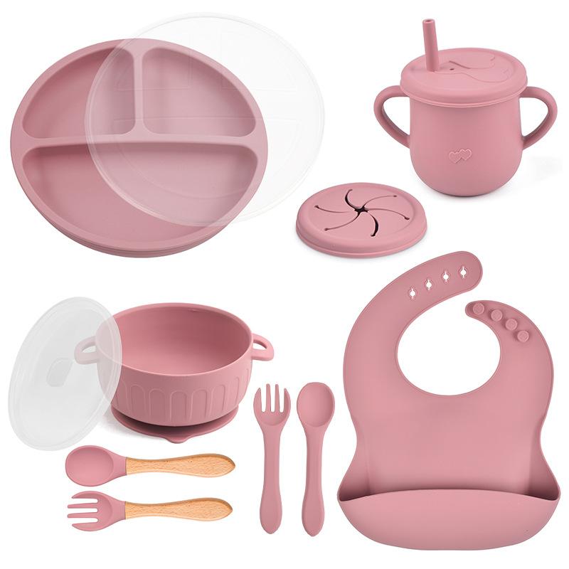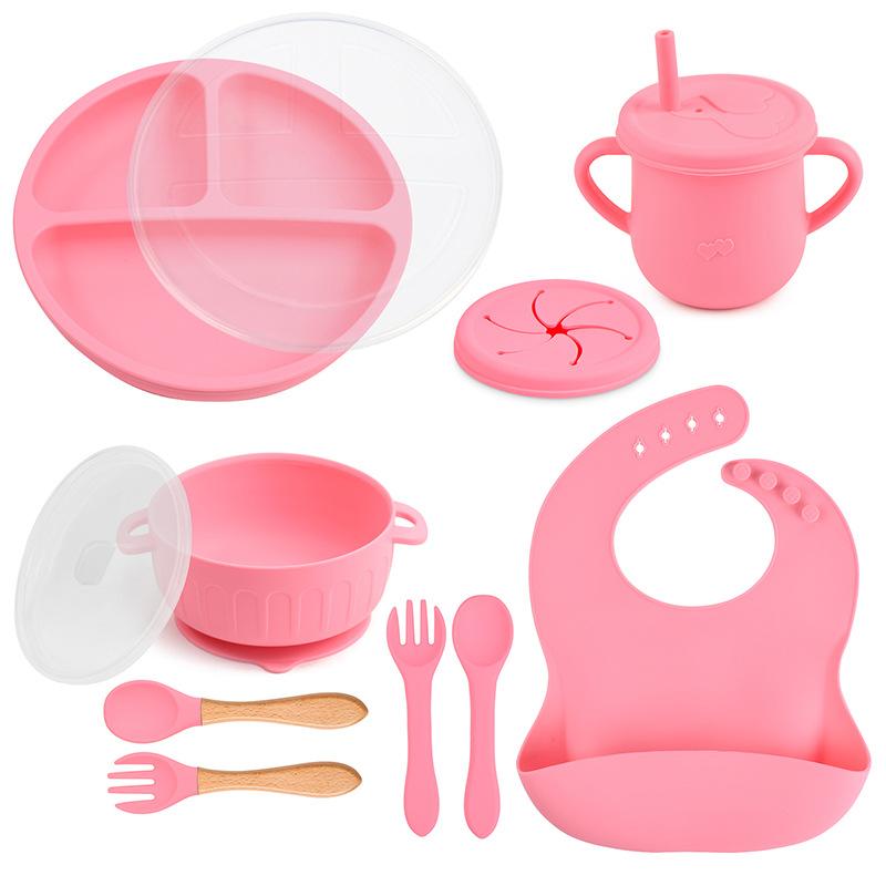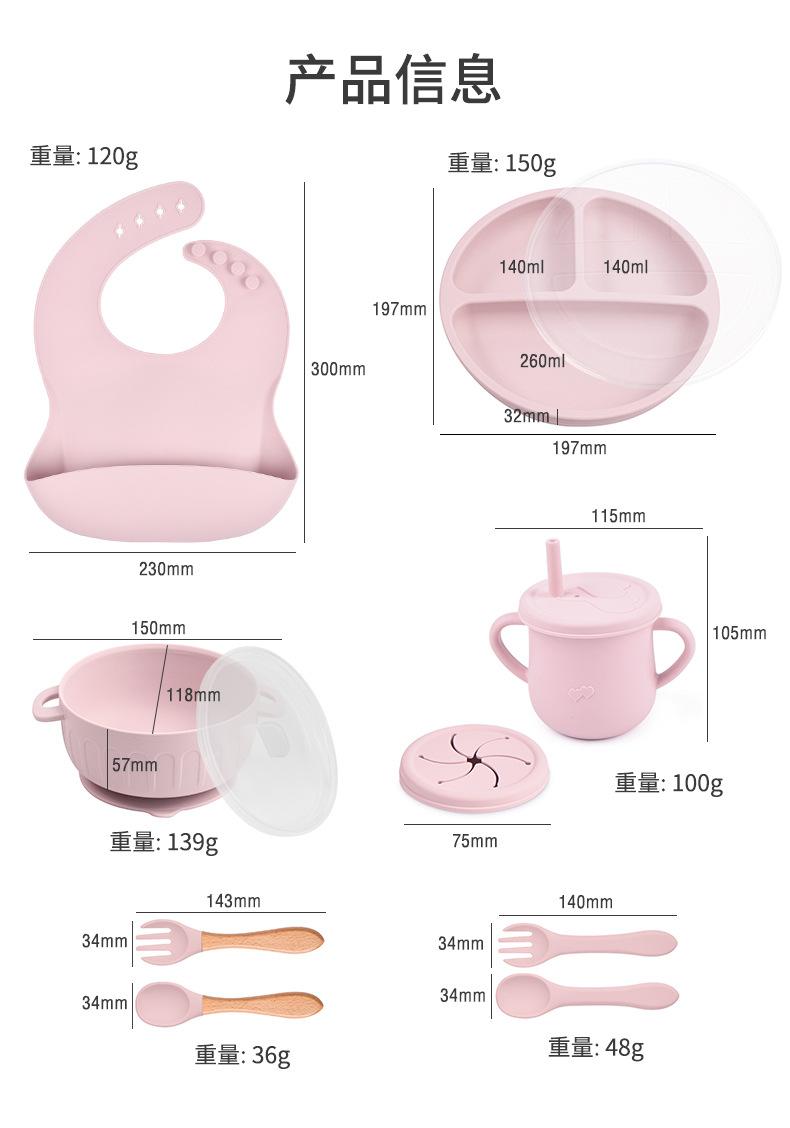 Juego de vajilla infantil de 11 piezas, la diferencia entre el juego A, el juego B y el juego C radica en las tapas. El juego A tiene una tapa para plato y una tapa para tazón, el juego B no tiene tapa para tazón y el juego C no tiene ninguna tapa. El peso del juego A es de 718 g, el del juego B es de 675 g y el del juego C es de 610 g. También puede ponerse en contacto con el servicio de atención al cliente para combinar libremente según sus necesidades.