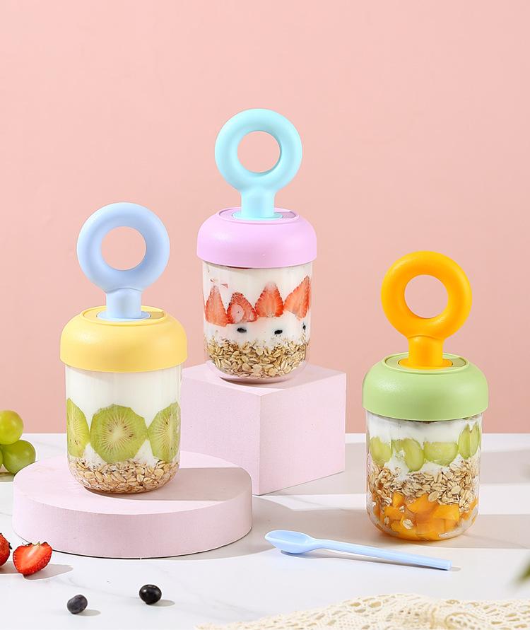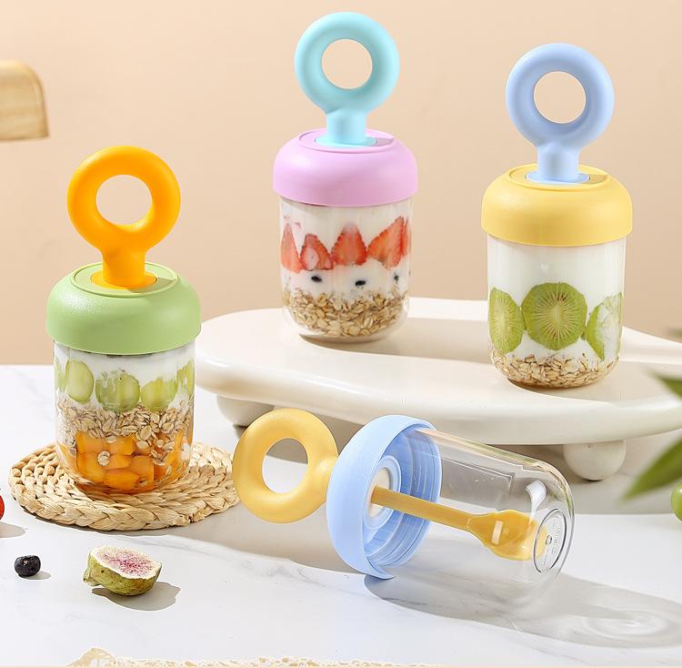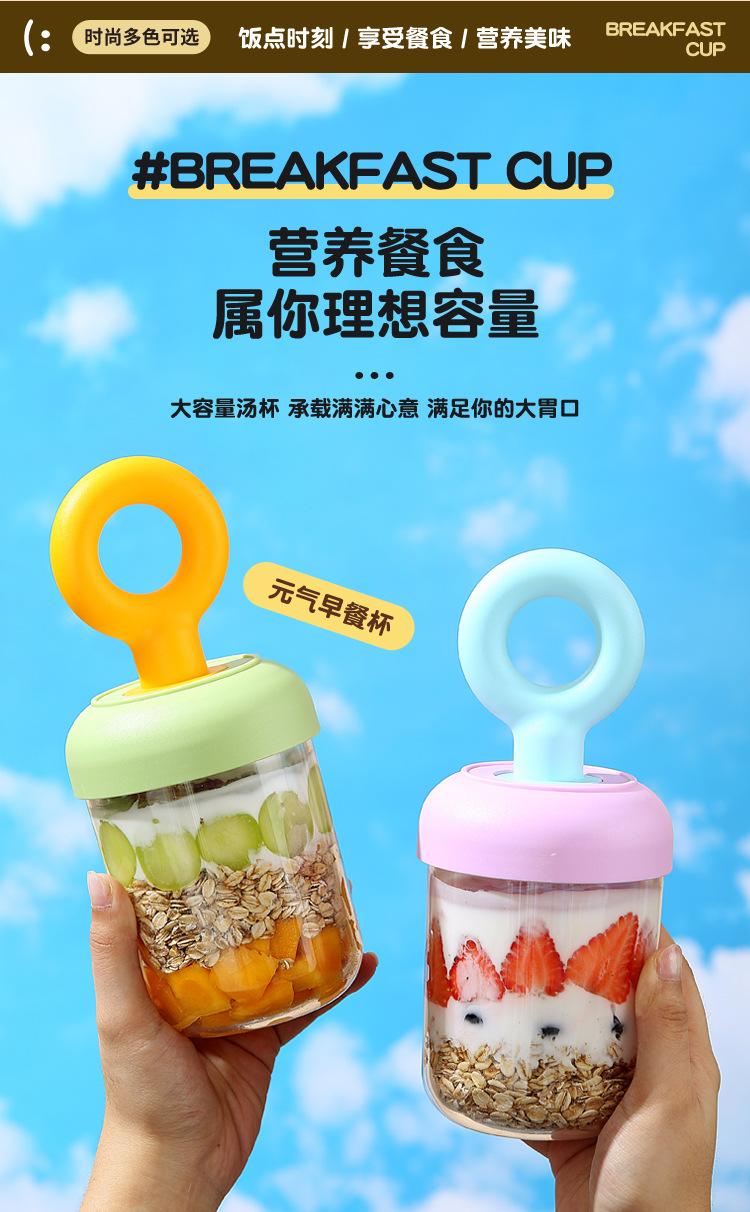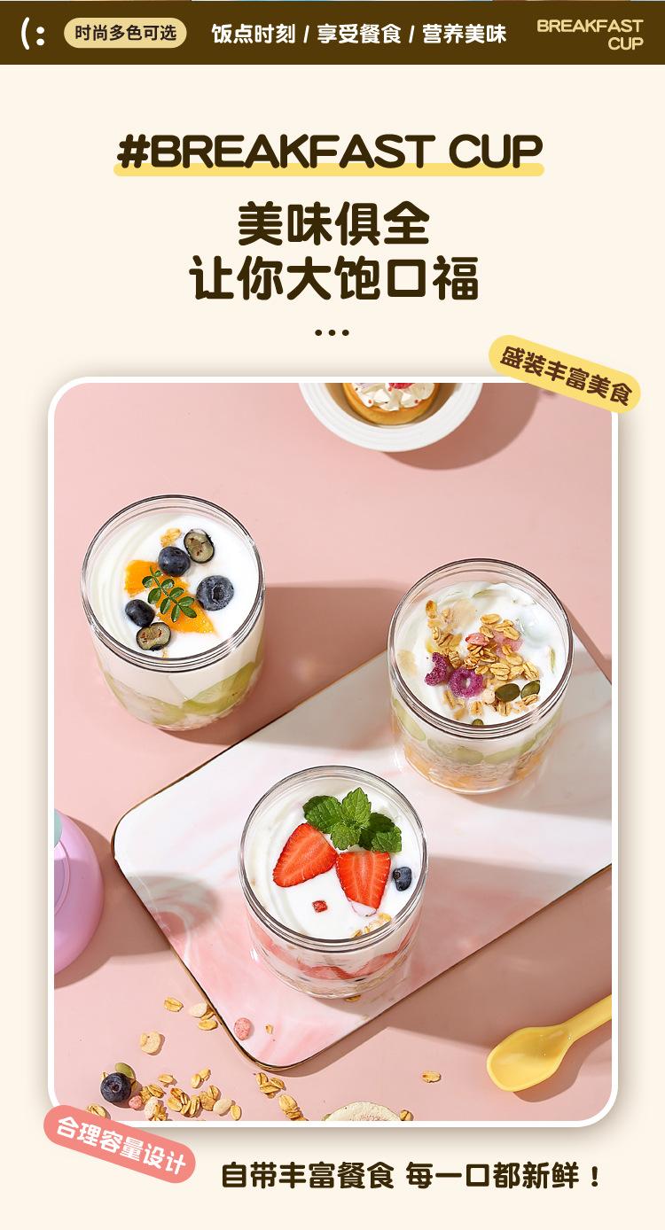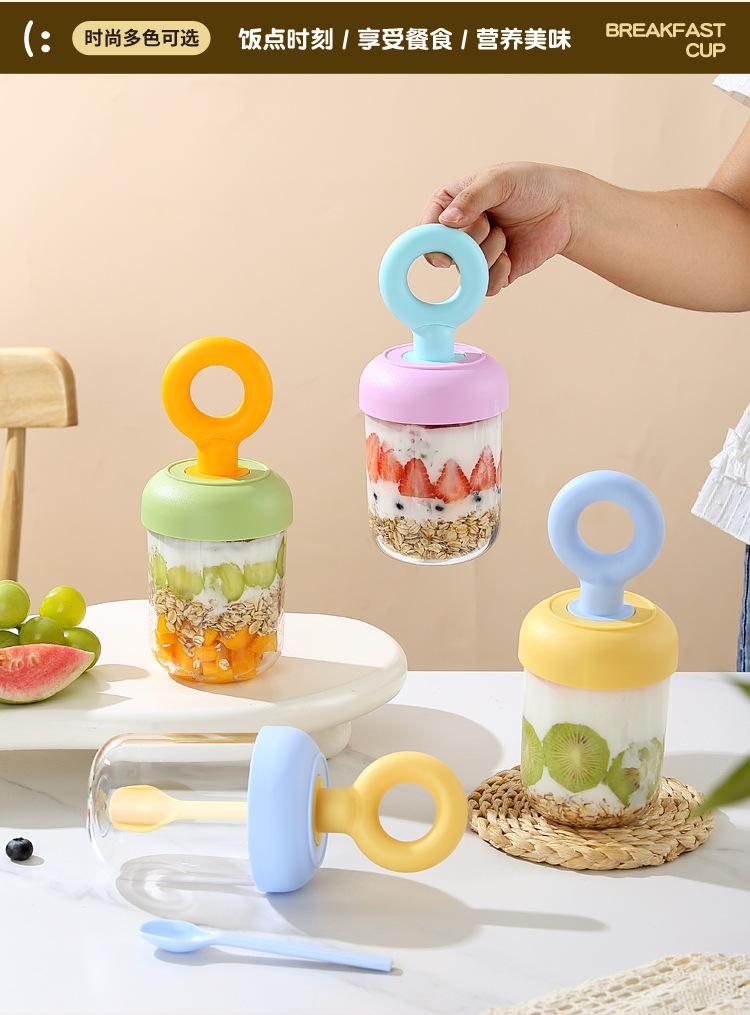 Nuevo Vaso Portátil para Desayuno para Llevar con Tapa y Cuchara Vaso para Ensalada de Frutas Vaso para Leche de Soya Leche Cereal Avena Yogur