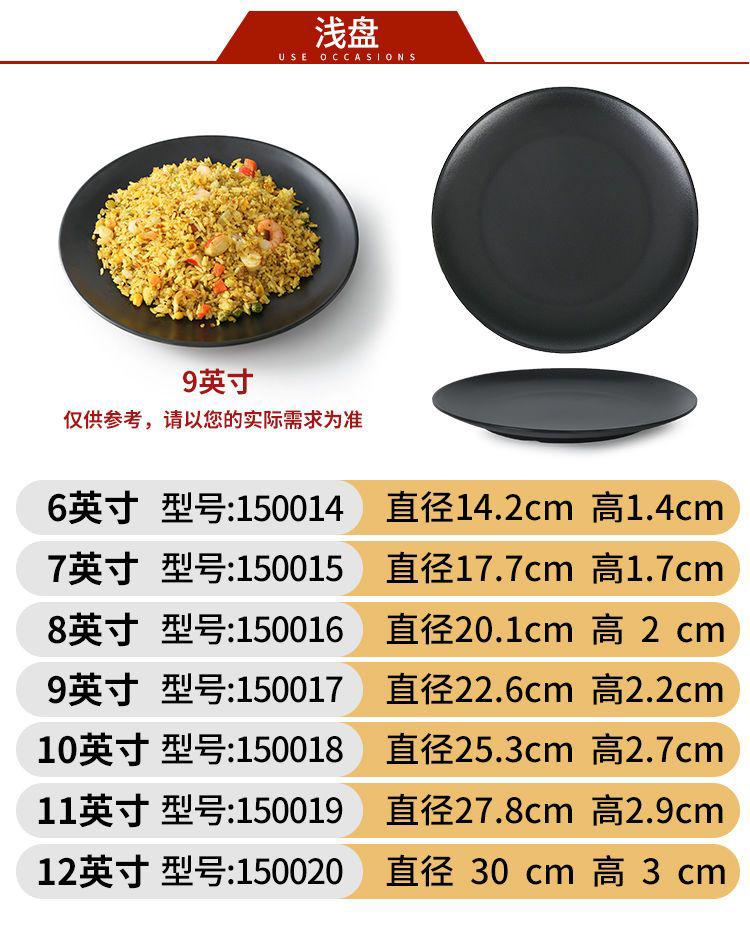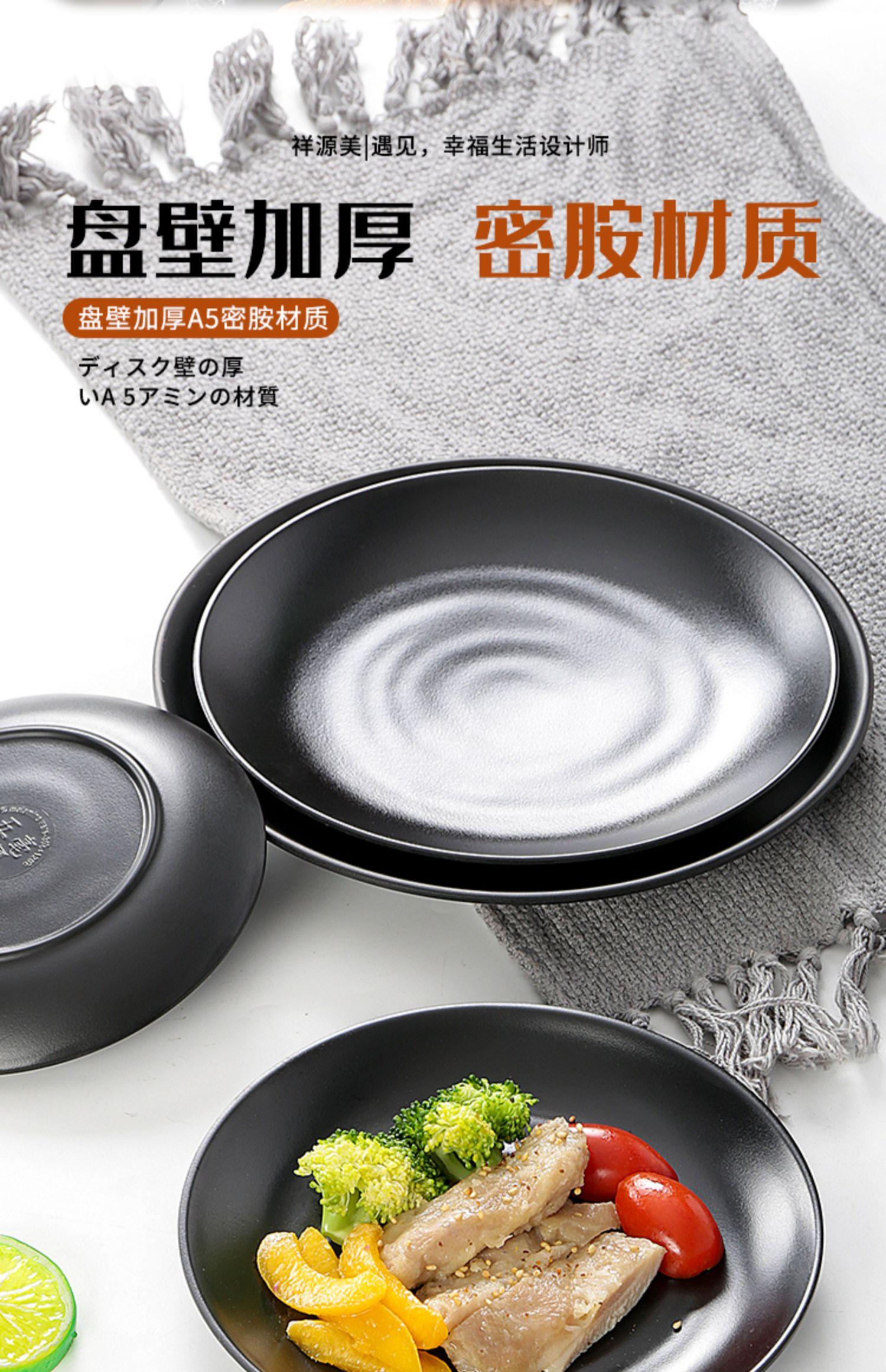 Compra Vajilla de melamina negro hotel restaurante comida rápida barbacoa plato redondo plato de plástico plato redondo plato para olla caliente al por mayor en Joom.pro