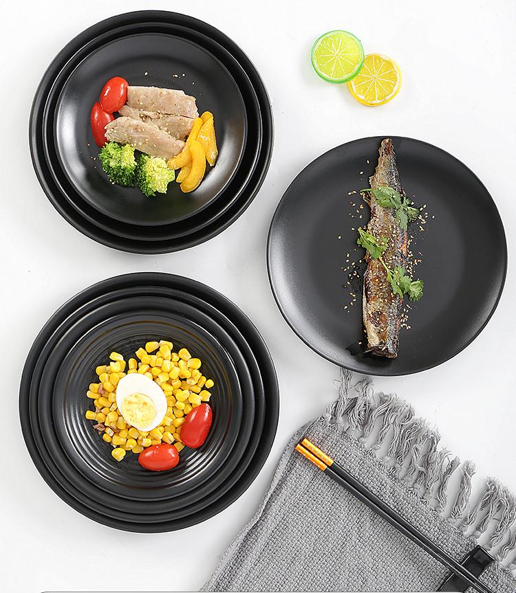 Vajilla de melamina negro hotel restaurante comida rápida barbacoa plato redondo plato de plástico plato redondo plato para olla caliente