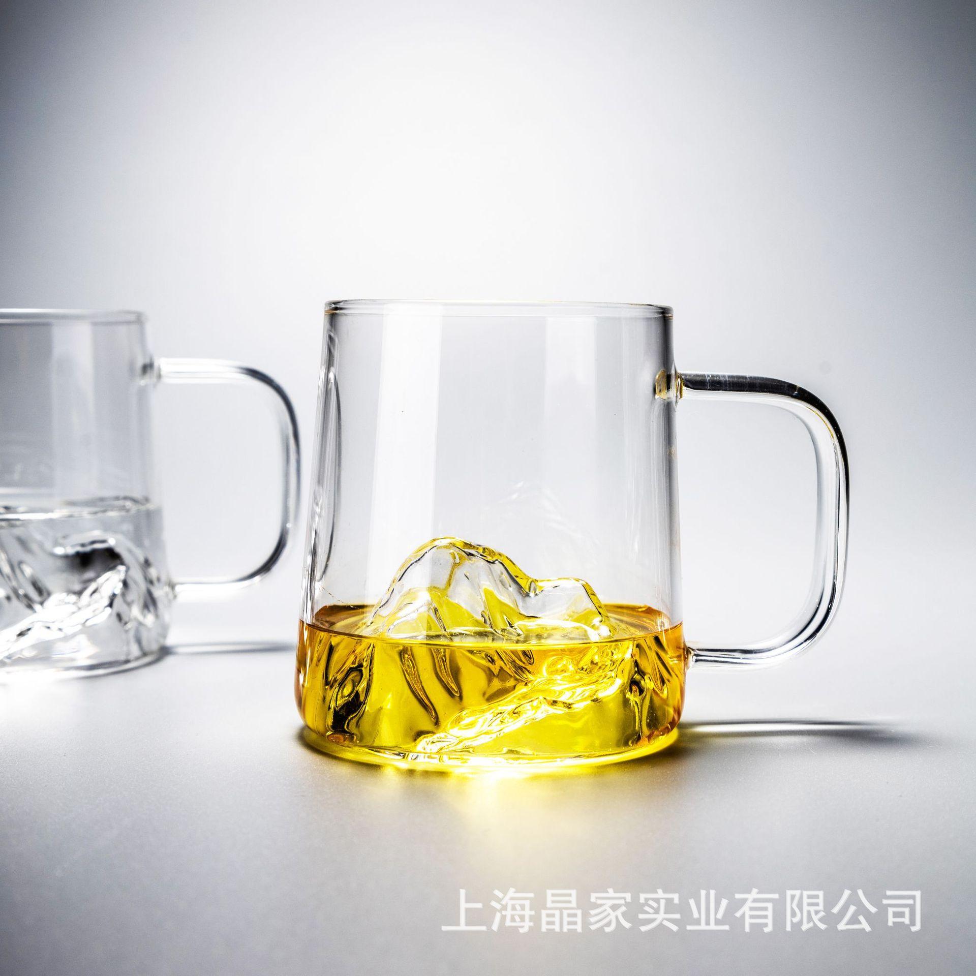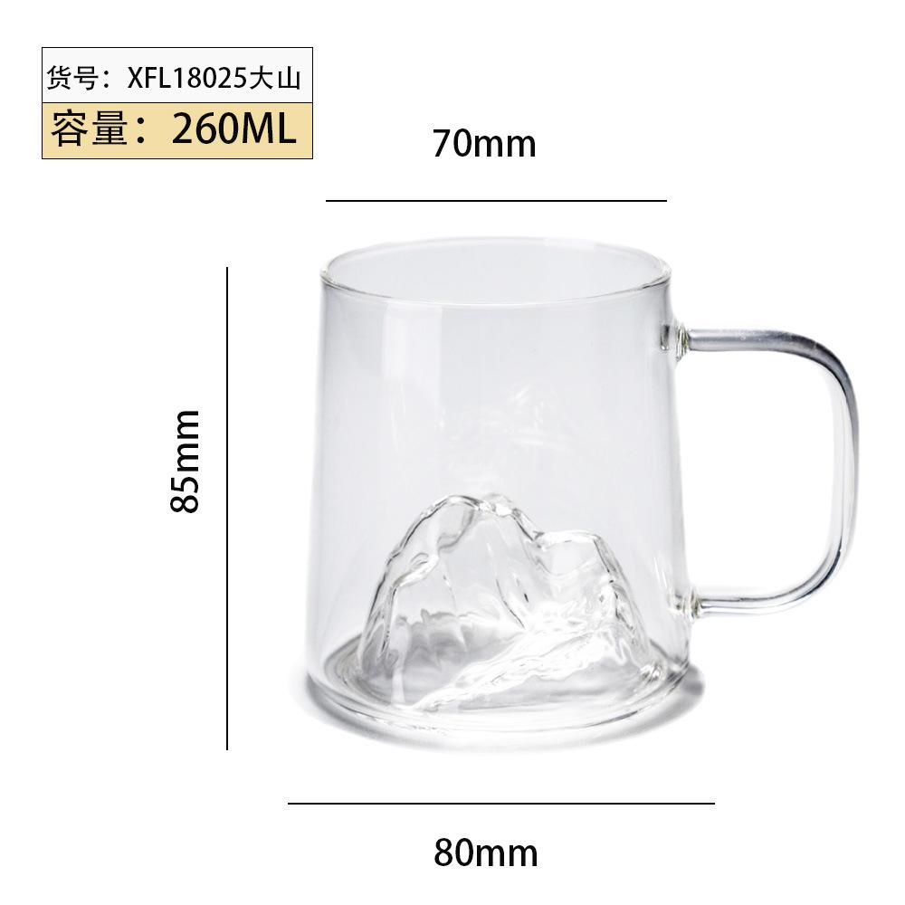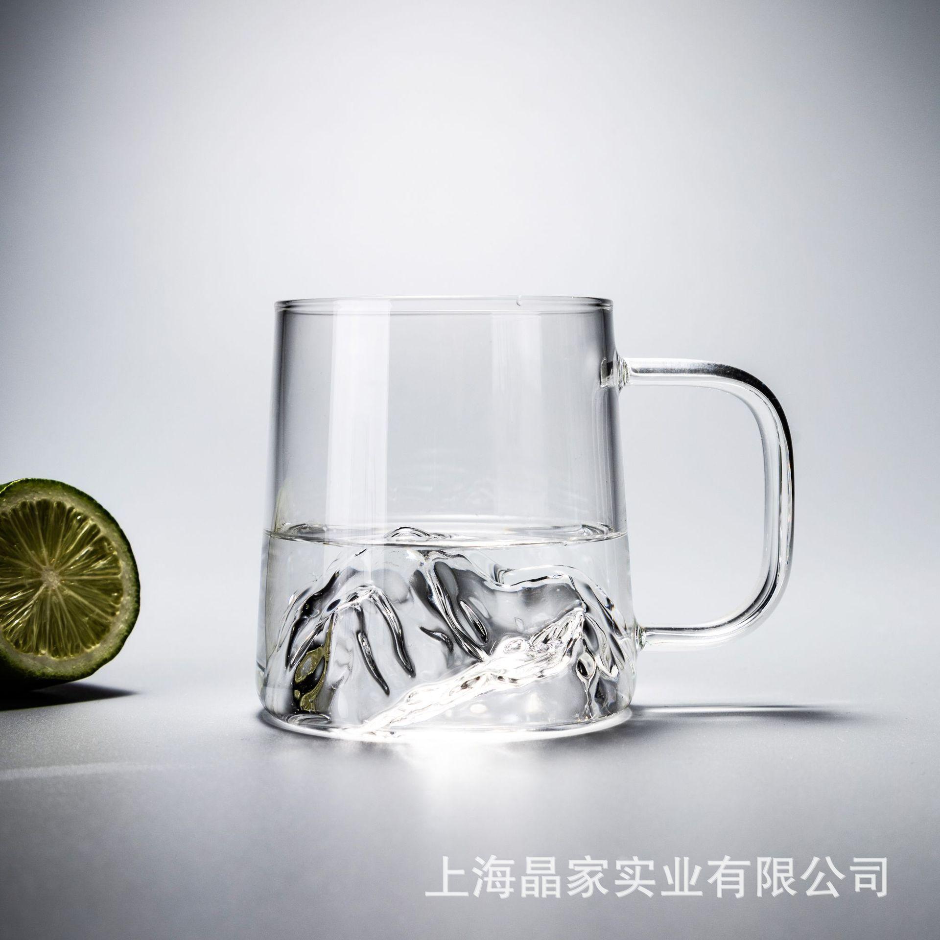 Taza de una sola capa de vidrio de borosilicato alto, taza creativa con vista a la montaña, taza de té, taza para el hogar para jugo, leche, café, taza de té con logotipo de marca de agua