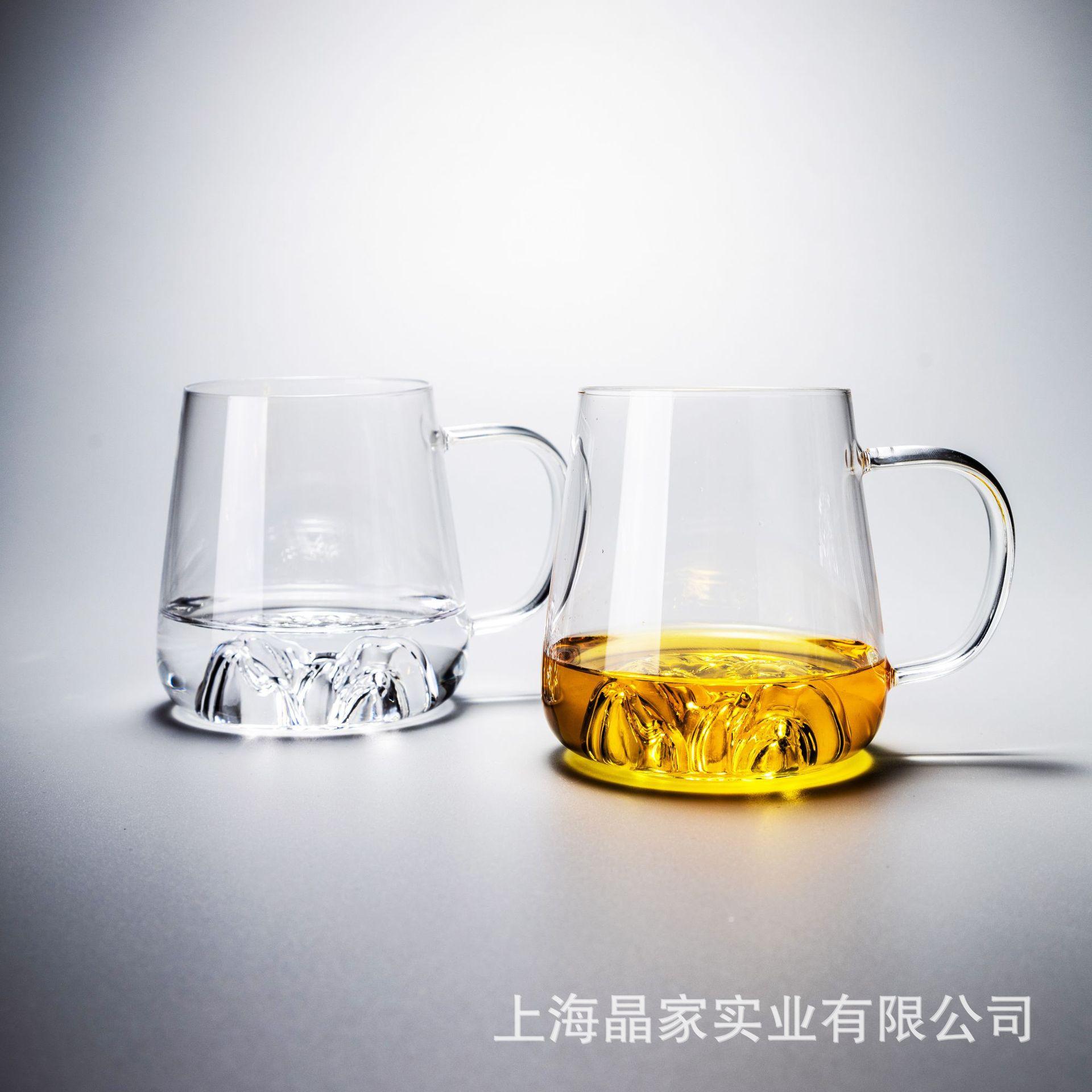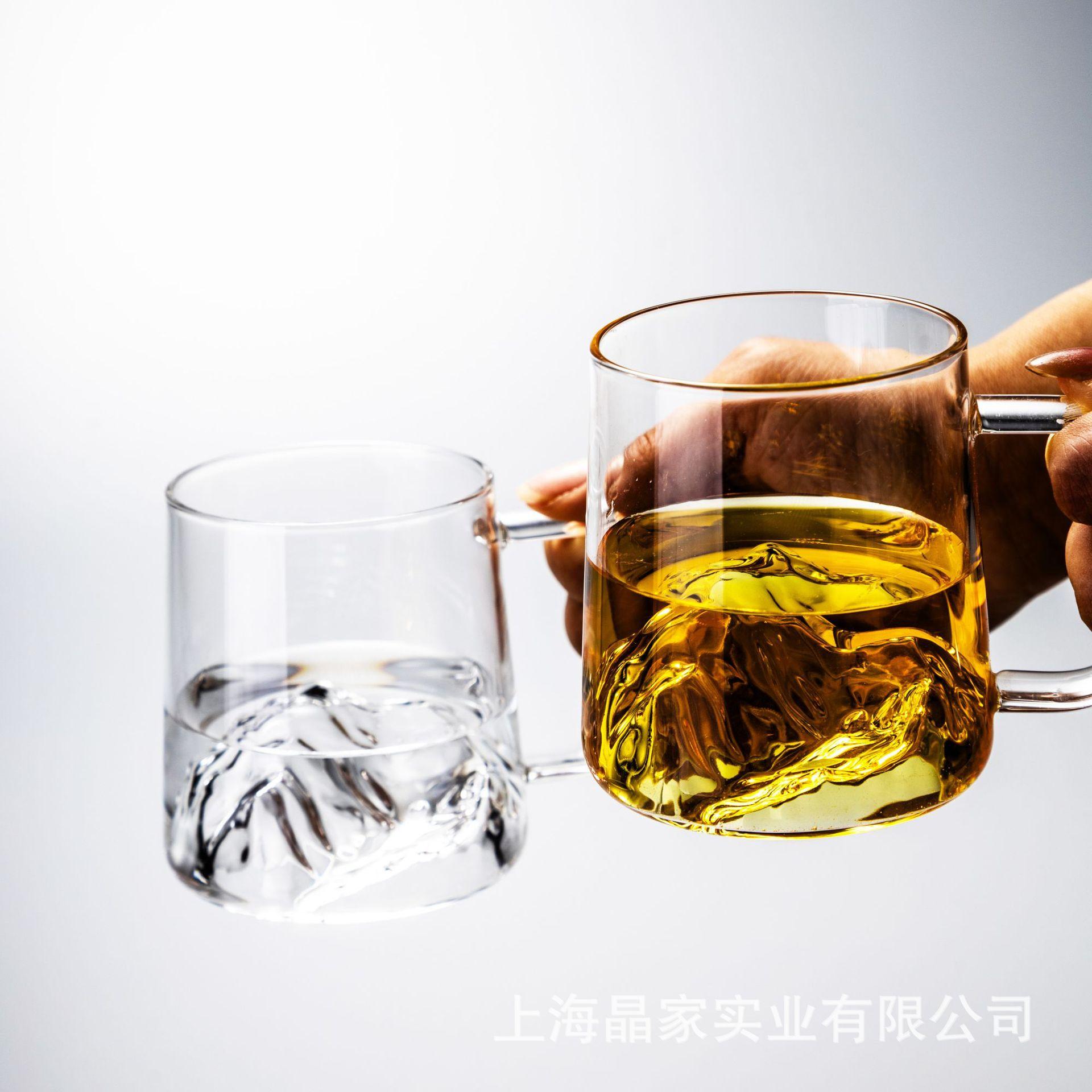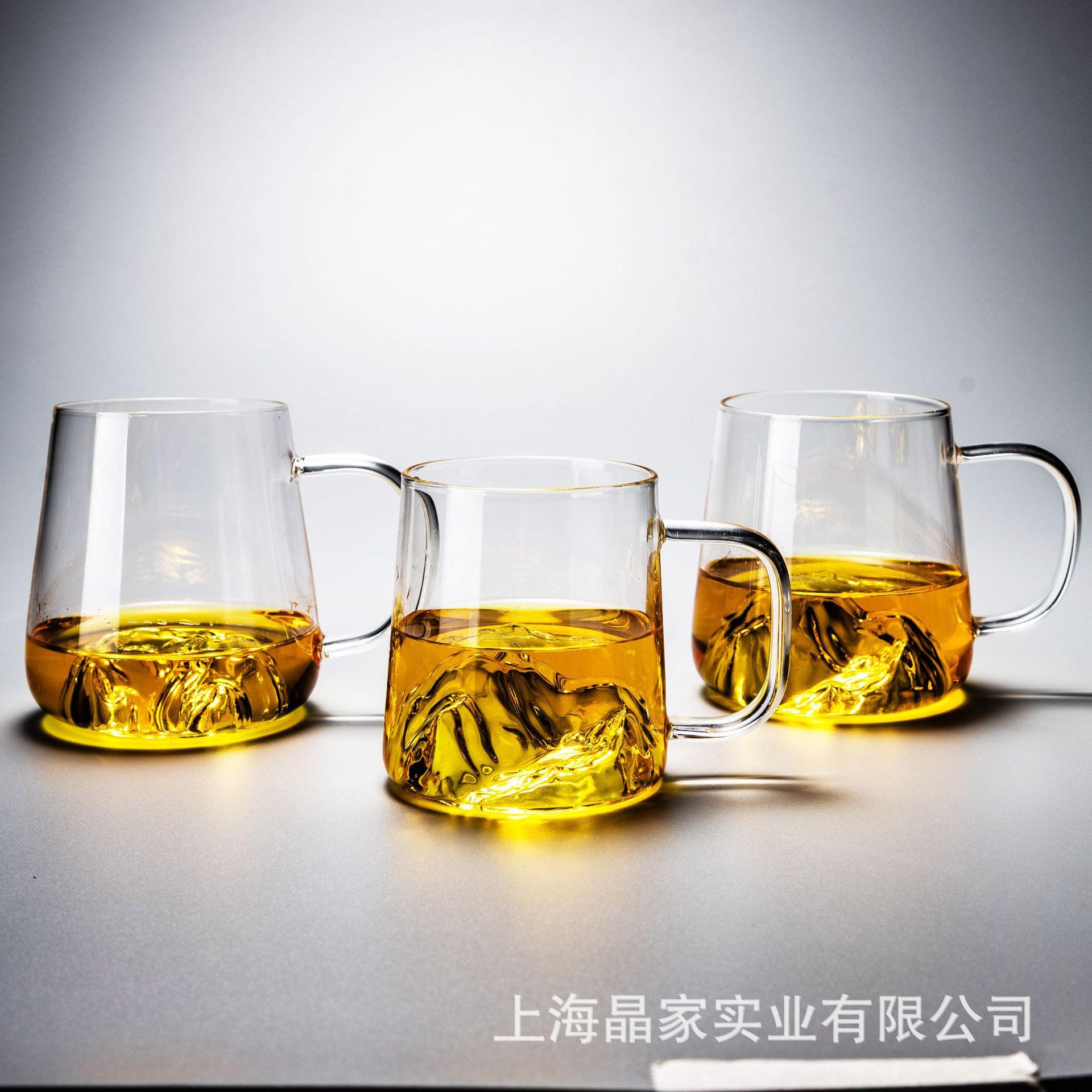 Taza de una sola capa de vidrio de borosilicato alto, taza creativa con vista a la montaña, taza de té, taza para el hogar para jugo, leche, café, taza de té con logotipo de marca de agua