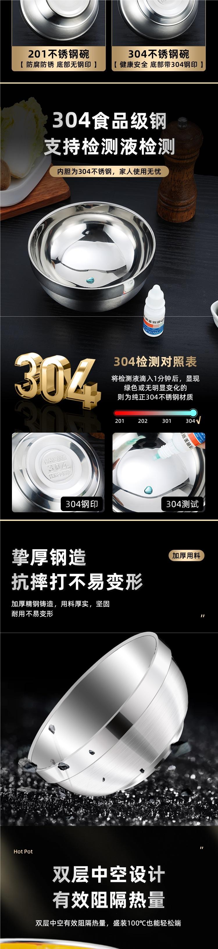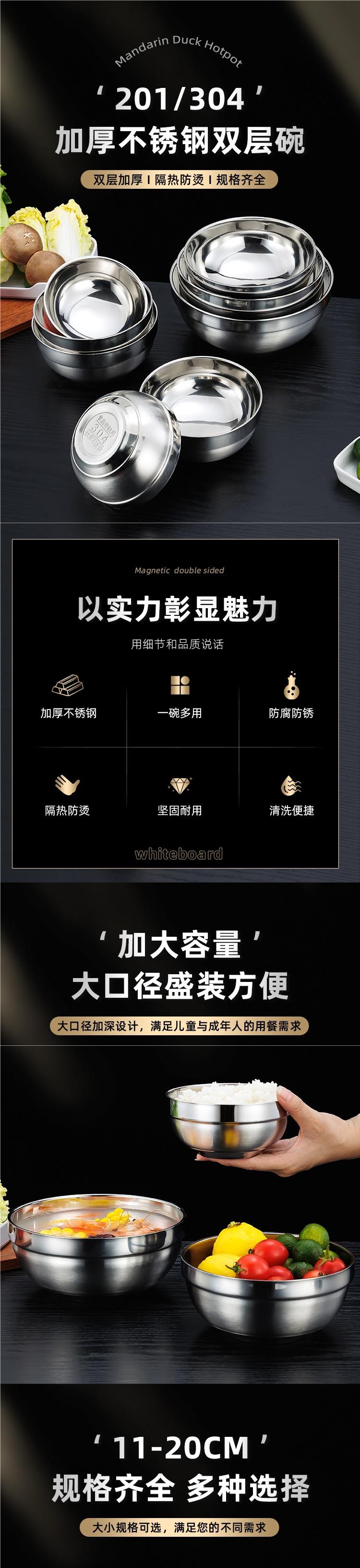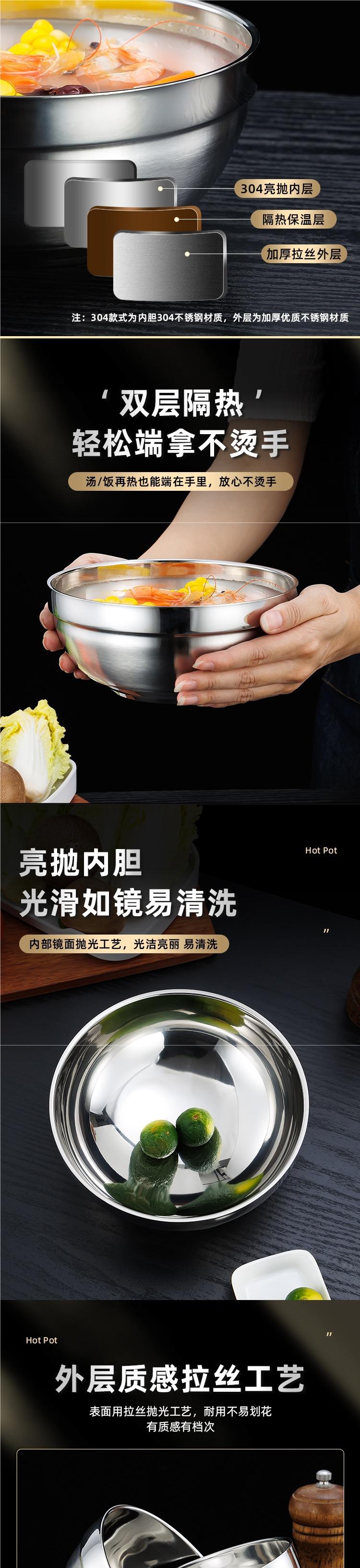 Cuenco de acero inoxidable 304 con aislamiento de doble capa, antiescaldaduras, apto para uso doméstico, cuenco para sopa, cuenco para arroz, vajilla para sopa y fideos.