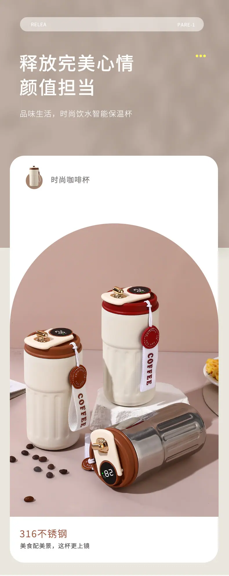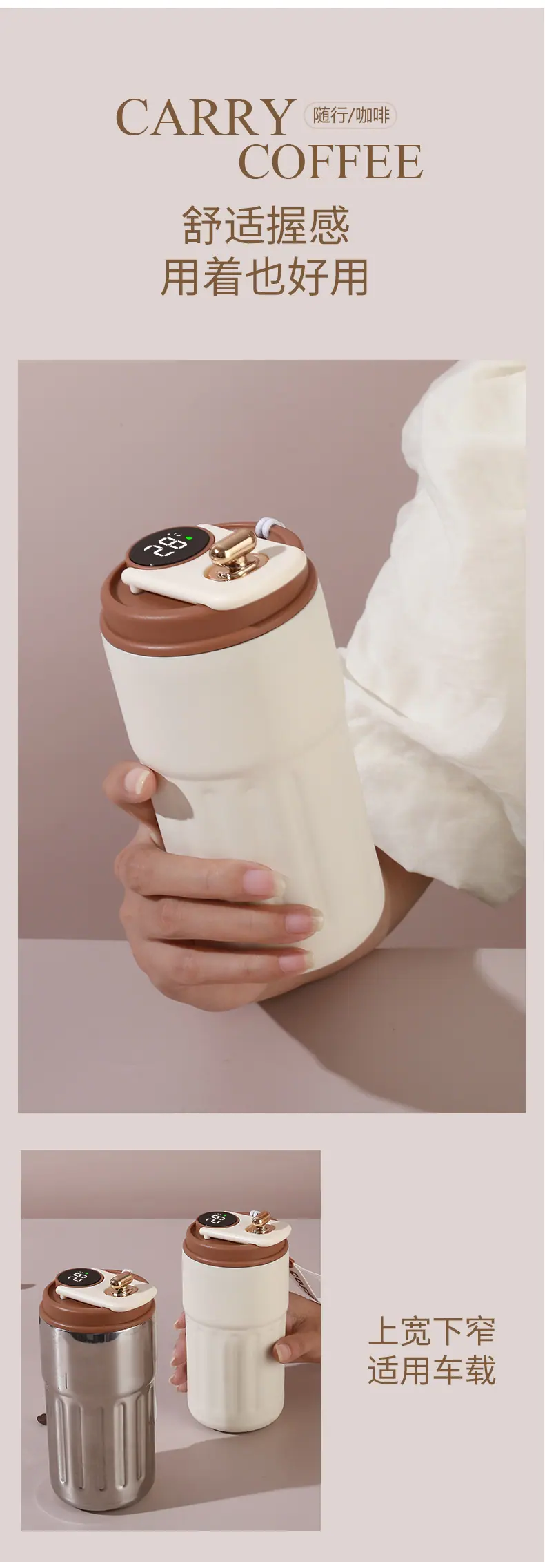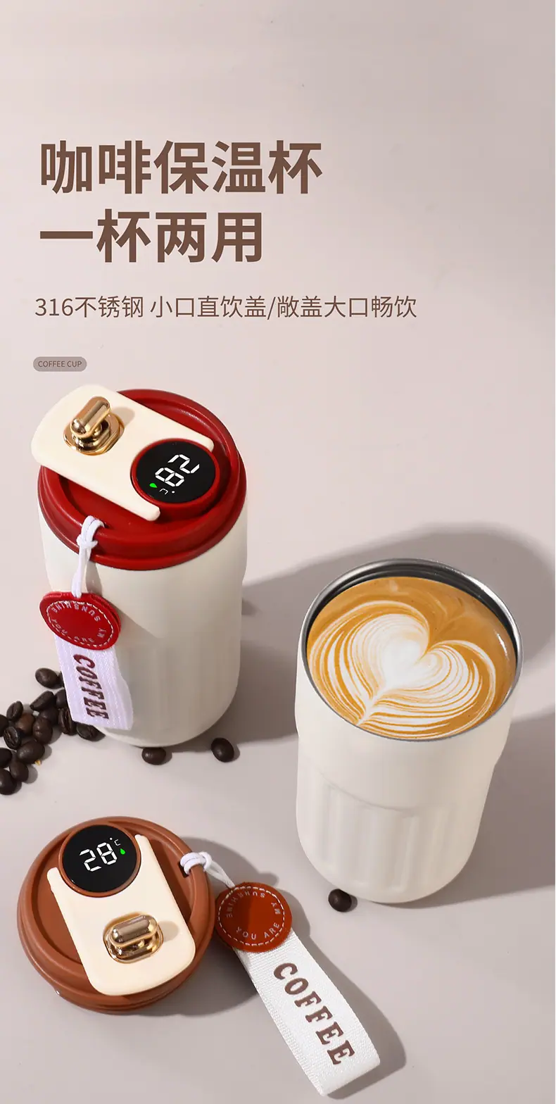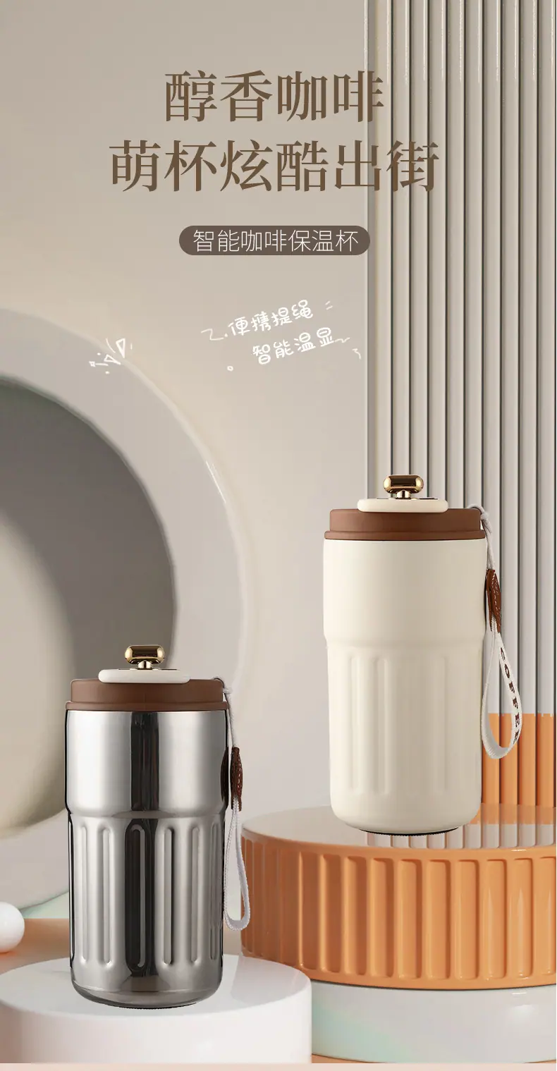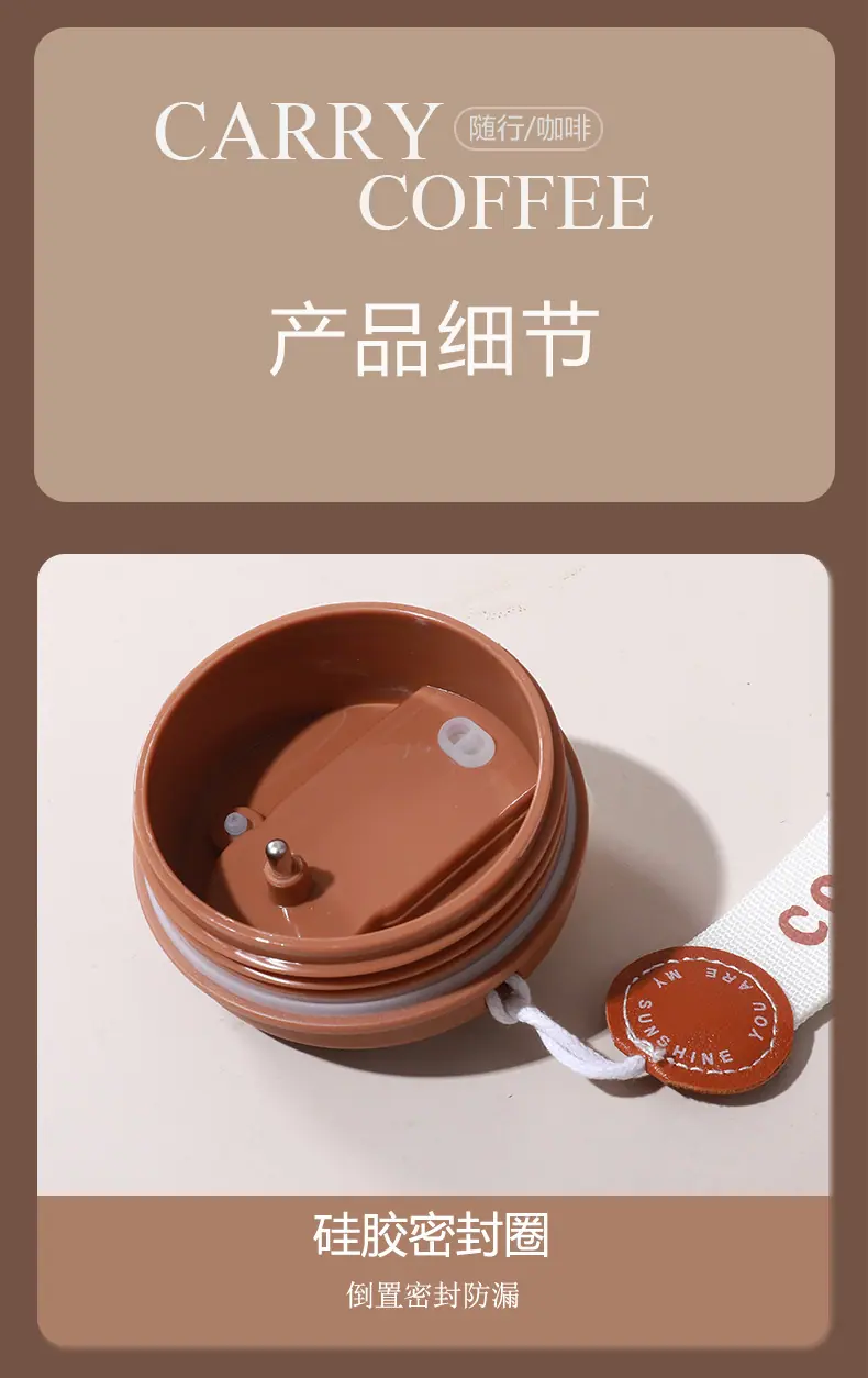 Vaso para café para llevar con correa de transporte a prueba de fugas, mujer de alto valor, acero inoxidable ins, práctico vaso térmico para beber directamente montado en el coche, vaso para café para llevar con correa de transporte a prueba de fugas, mujer de alto valor, acero inoxidable ins, práctico vaso térmico para beber directamente montado en el coche