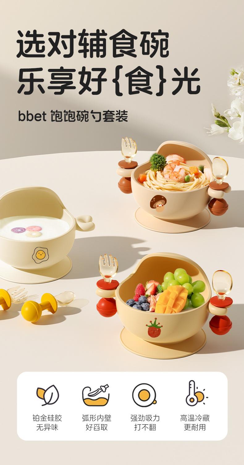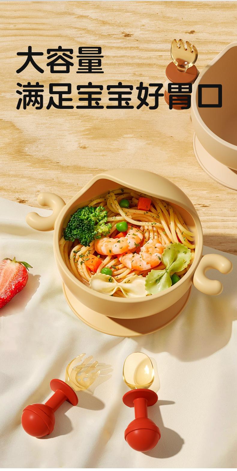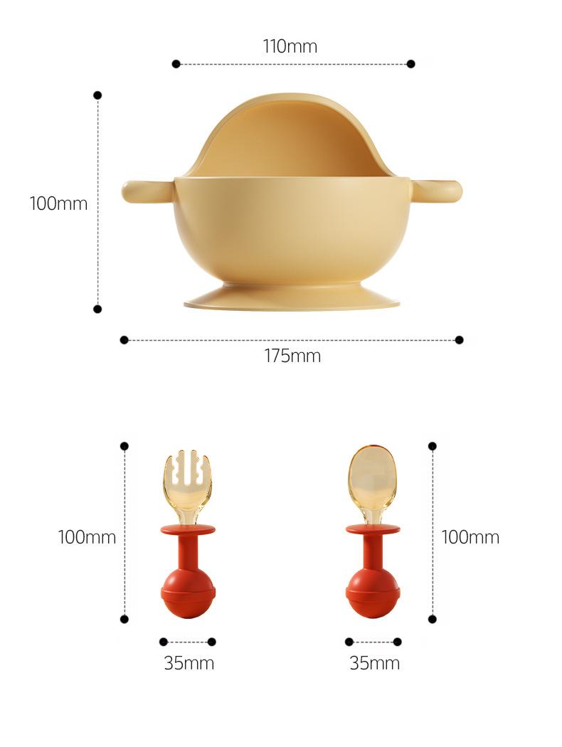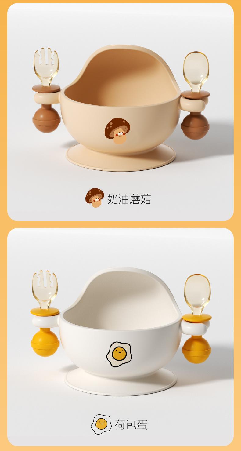 Tomato Scrambled Eggs Silicone Bowl + Candy Fork and Spoon, Creamy Mushroom Silicone Bowl + Candy Fork and Spo...