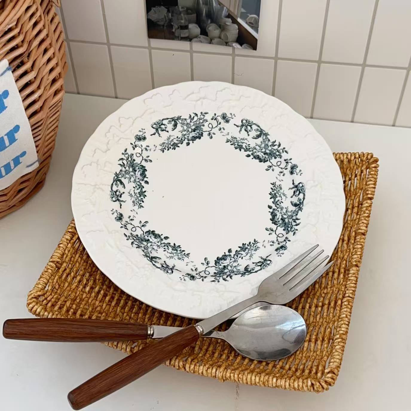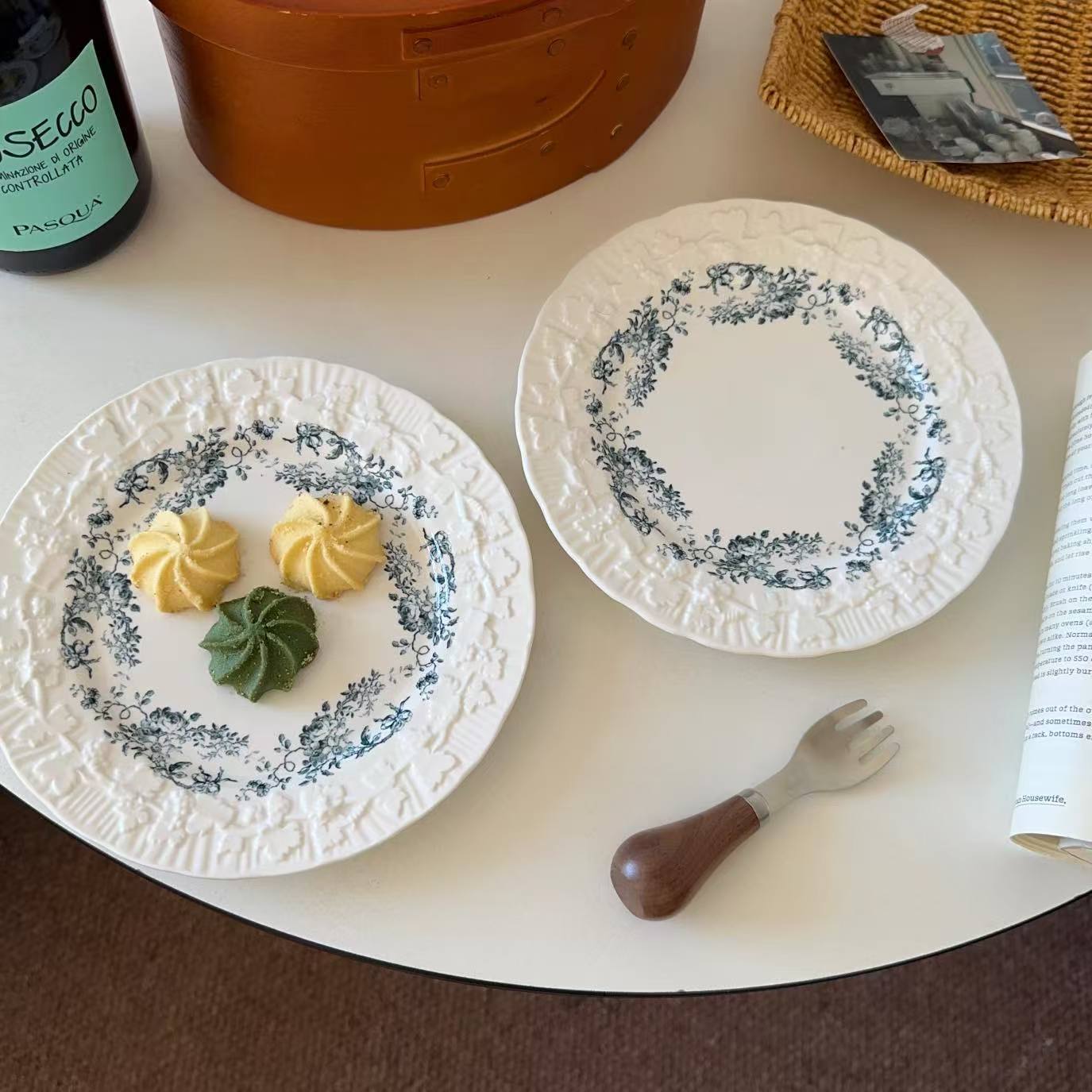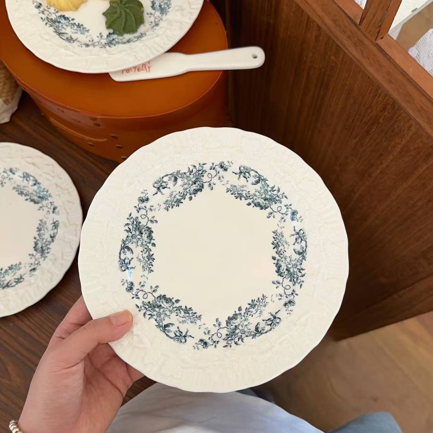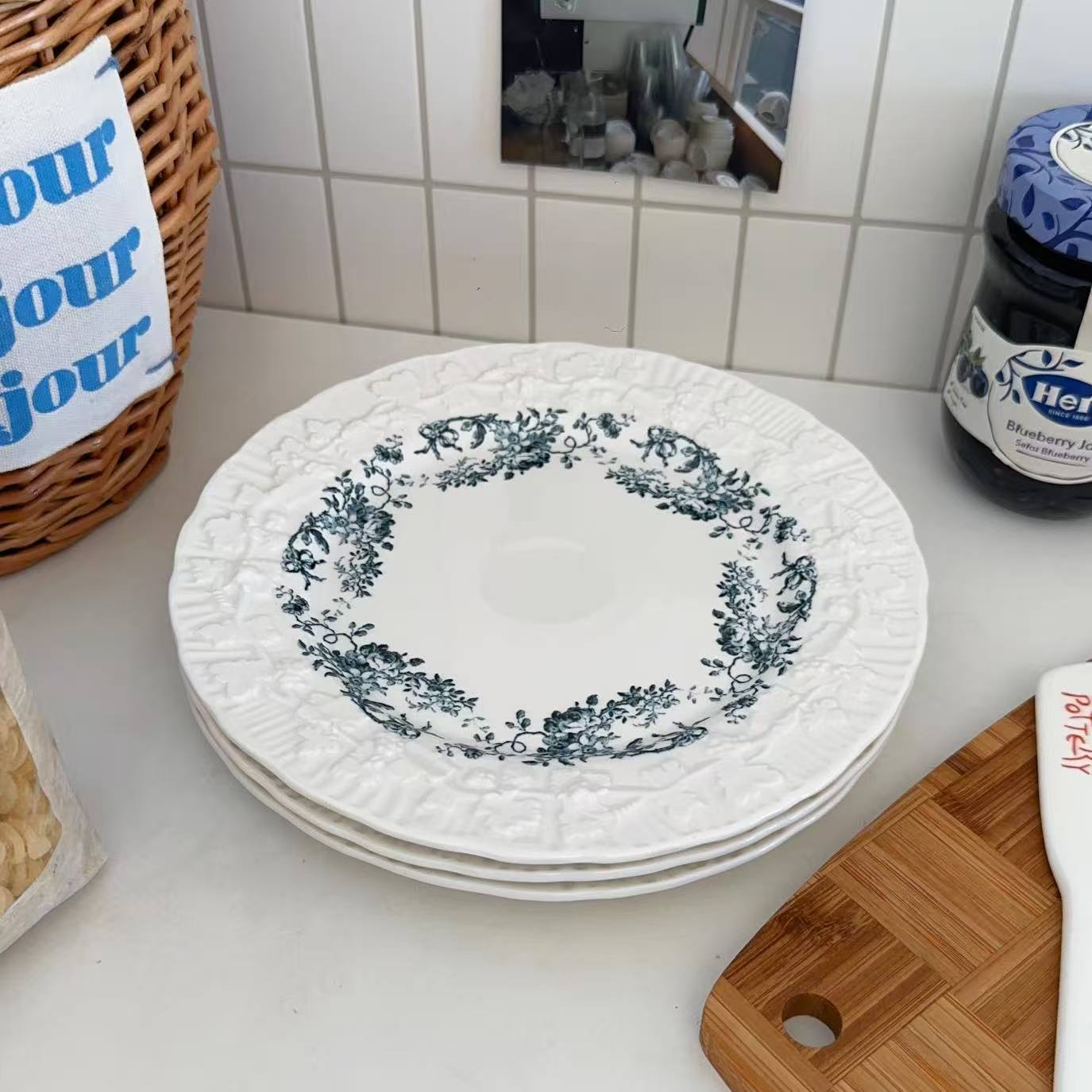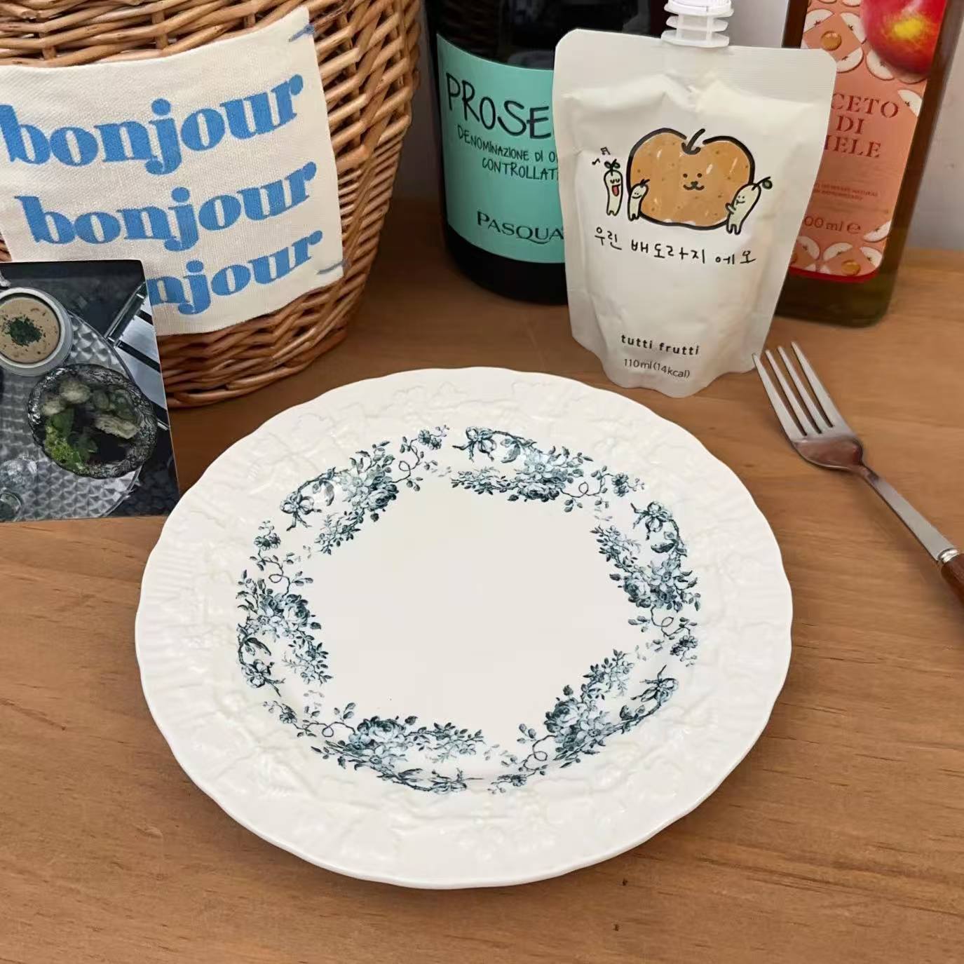 Diseño de nicho de plato floral francés de alto valor, plato de cerámica bajo cubierta, plato de fruta para el hogar, plato de postre, plato para comida occidental