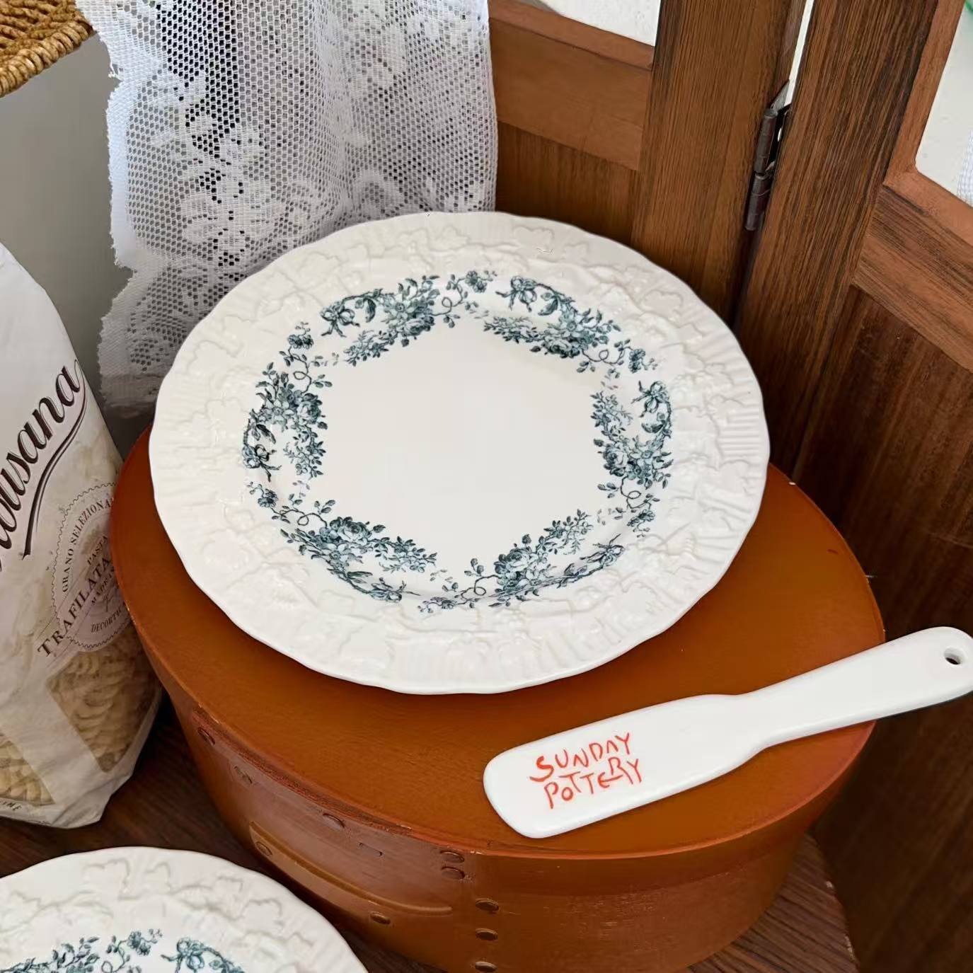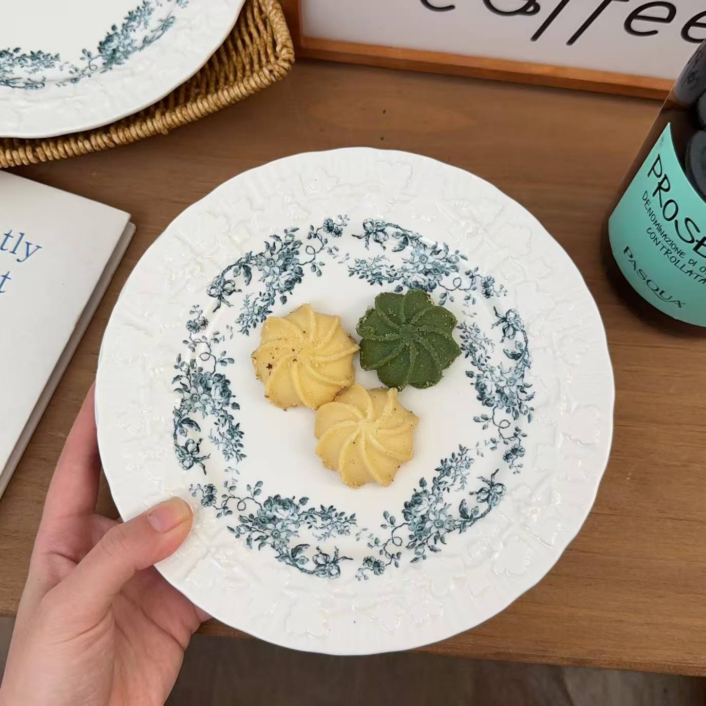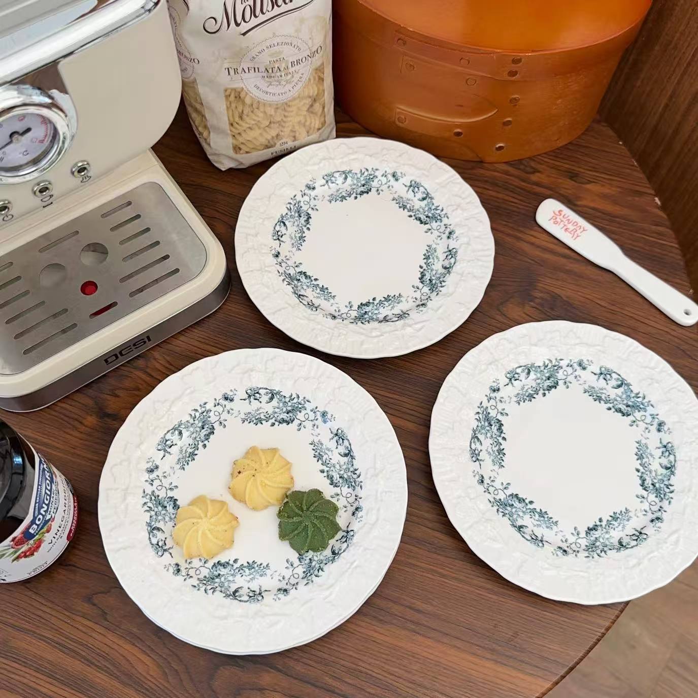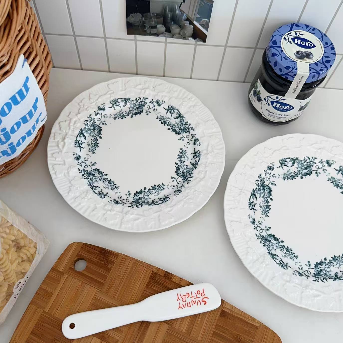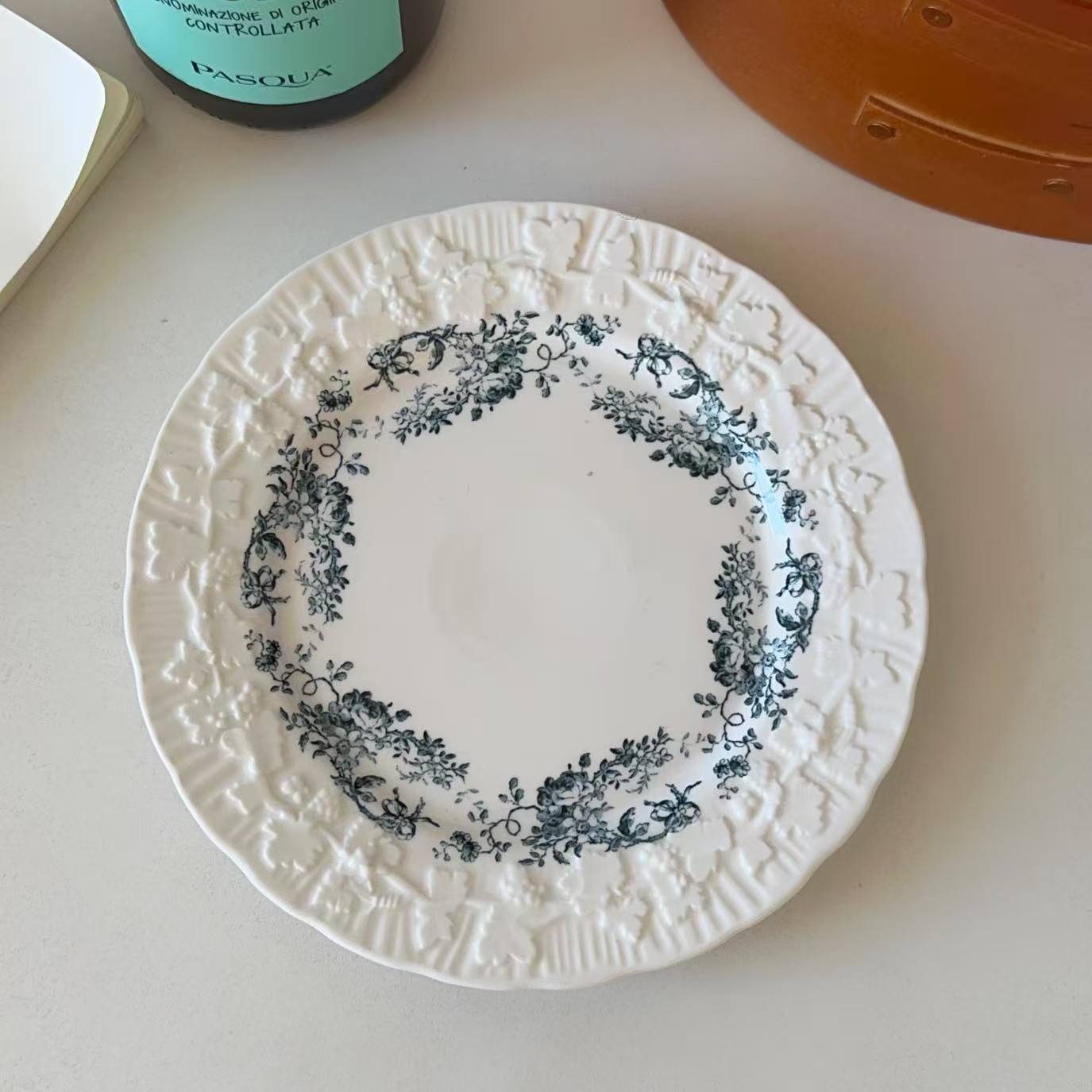 Diseño de nicho de plato floral francés de alto valor, plato de cerámica bajo cubierta, plato de fruta para el hogar, plato de postre, plato para comida occidental