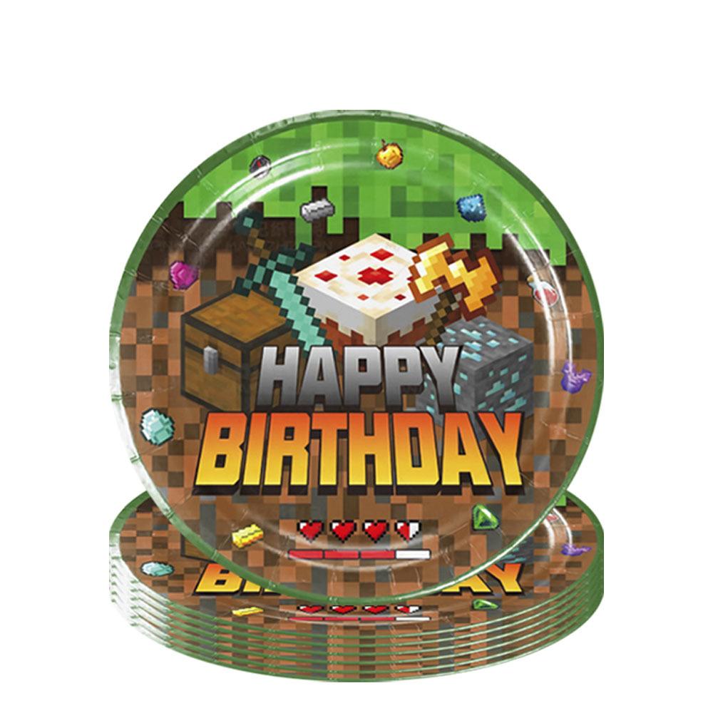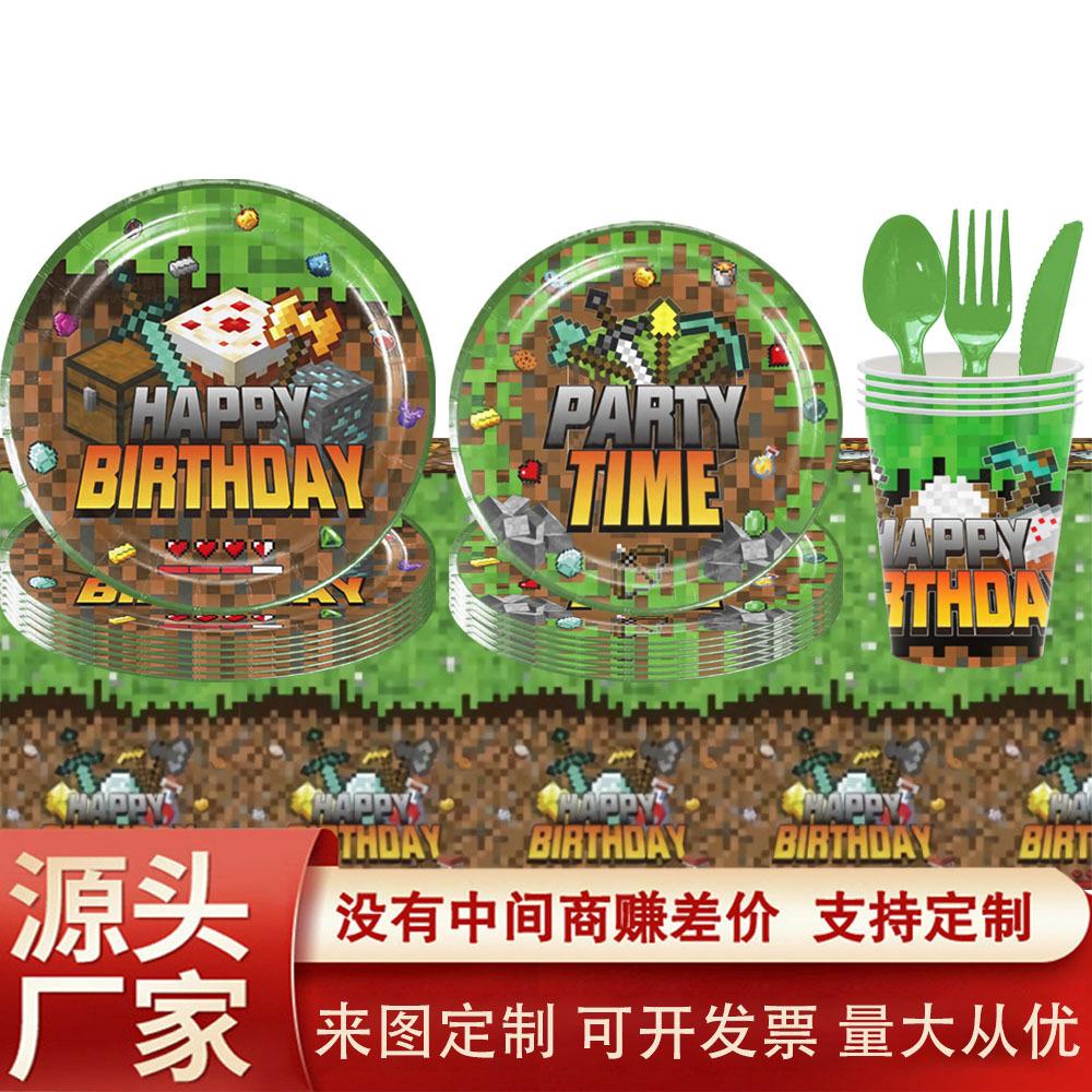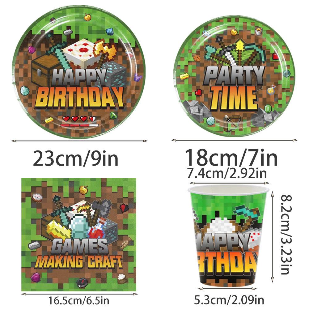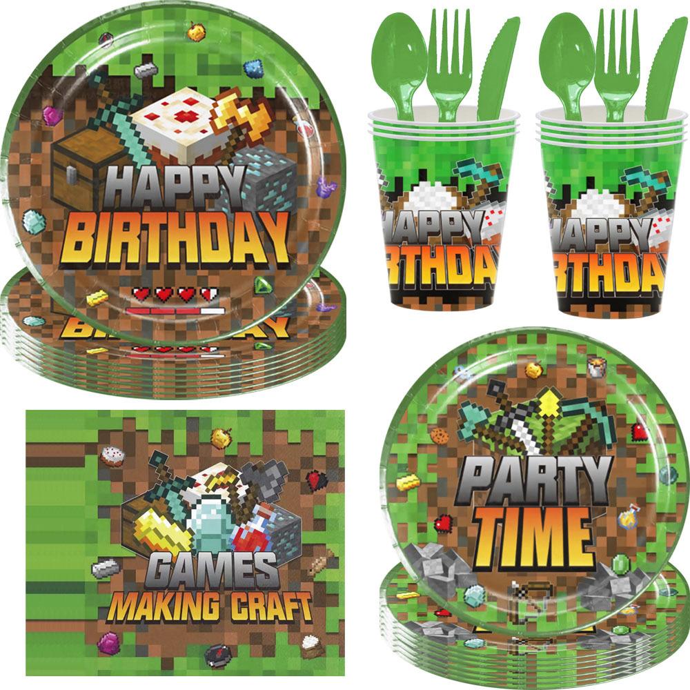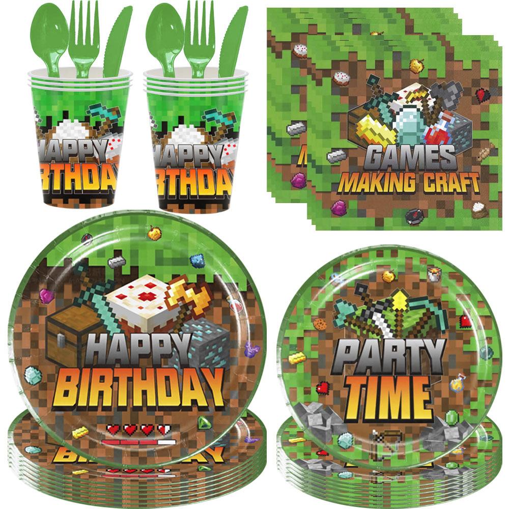 Nuevos Suministros de Decoración para Fiesta de Cumpleaños de Minecraft Niños Decoración de Píxeles Mantel Vasos de Papel Platos de Papel Juego de Cubiertos