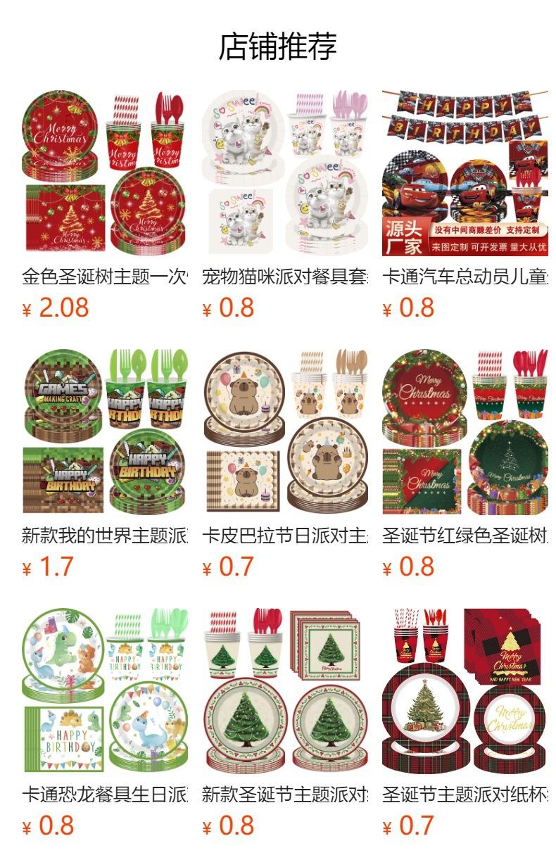 7-inch plate/10pcs, 9-inch plate/10pcs, Paper cup/10pcs, Tissue/20pcs, Tablecloth/1pcs, Knife/10pcs, Fork/10pcs, Spoon/10pcs