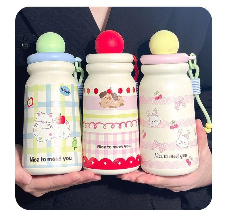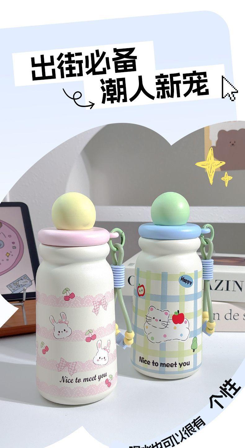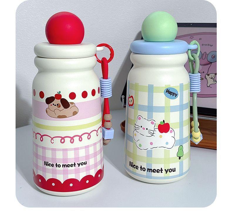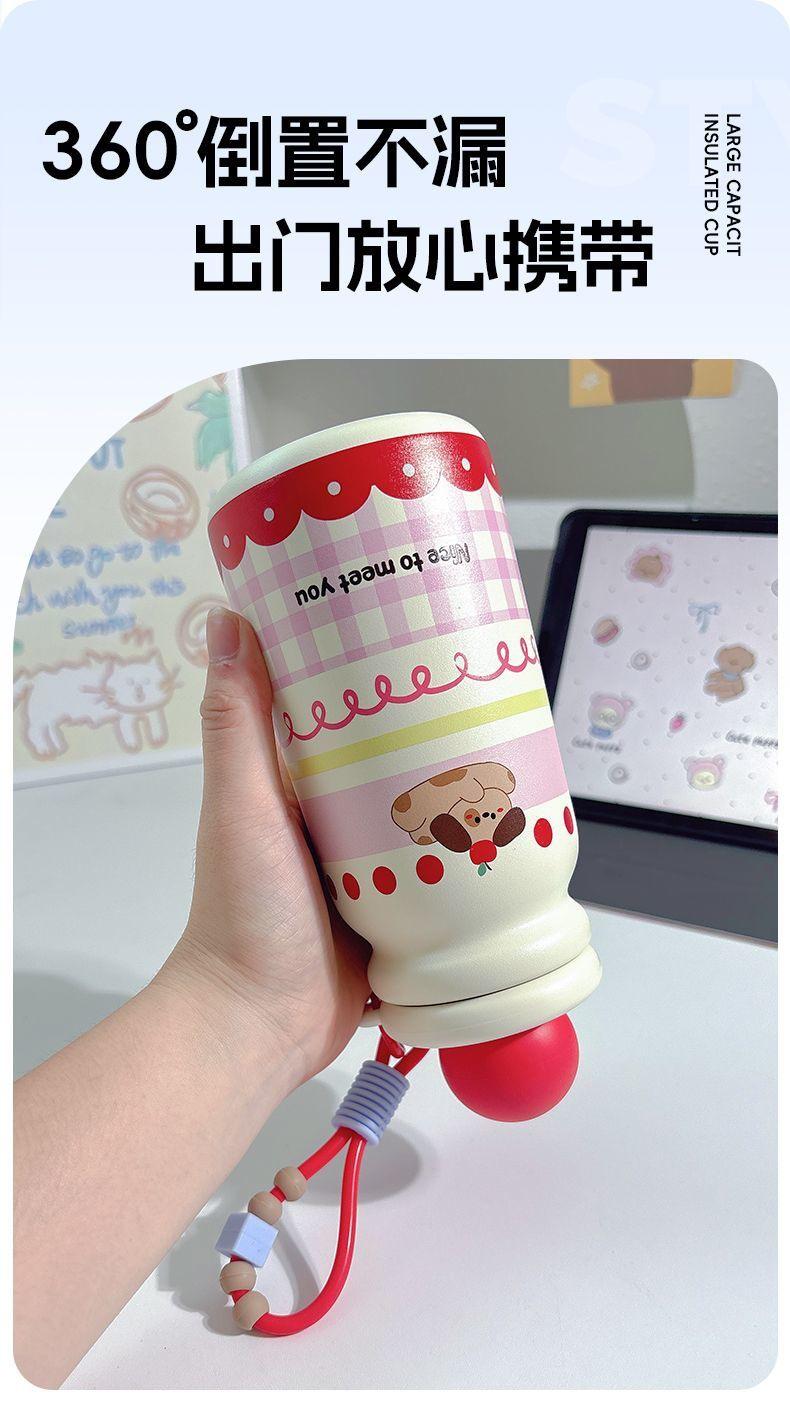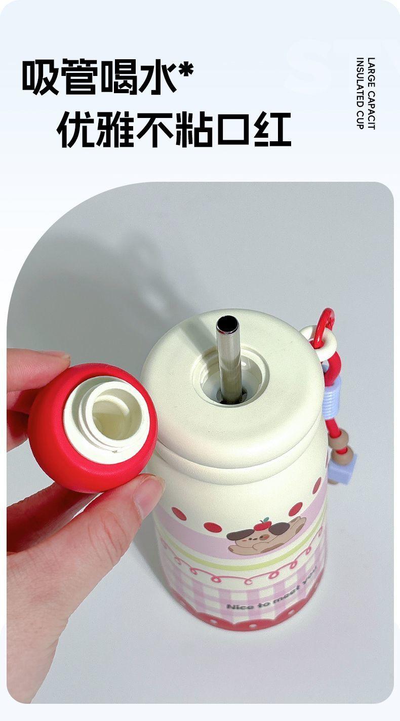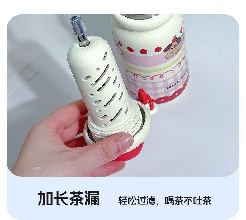Vaso de Agua Termo Acero Inoxidable 316 Niñas Alto Valor Ins Vaso de Dibujos Animados con Pajita con Infusor de Té Vaso Portátil para Estudiantes