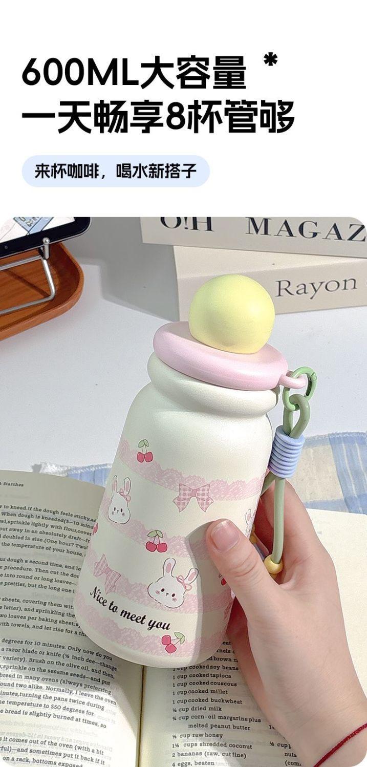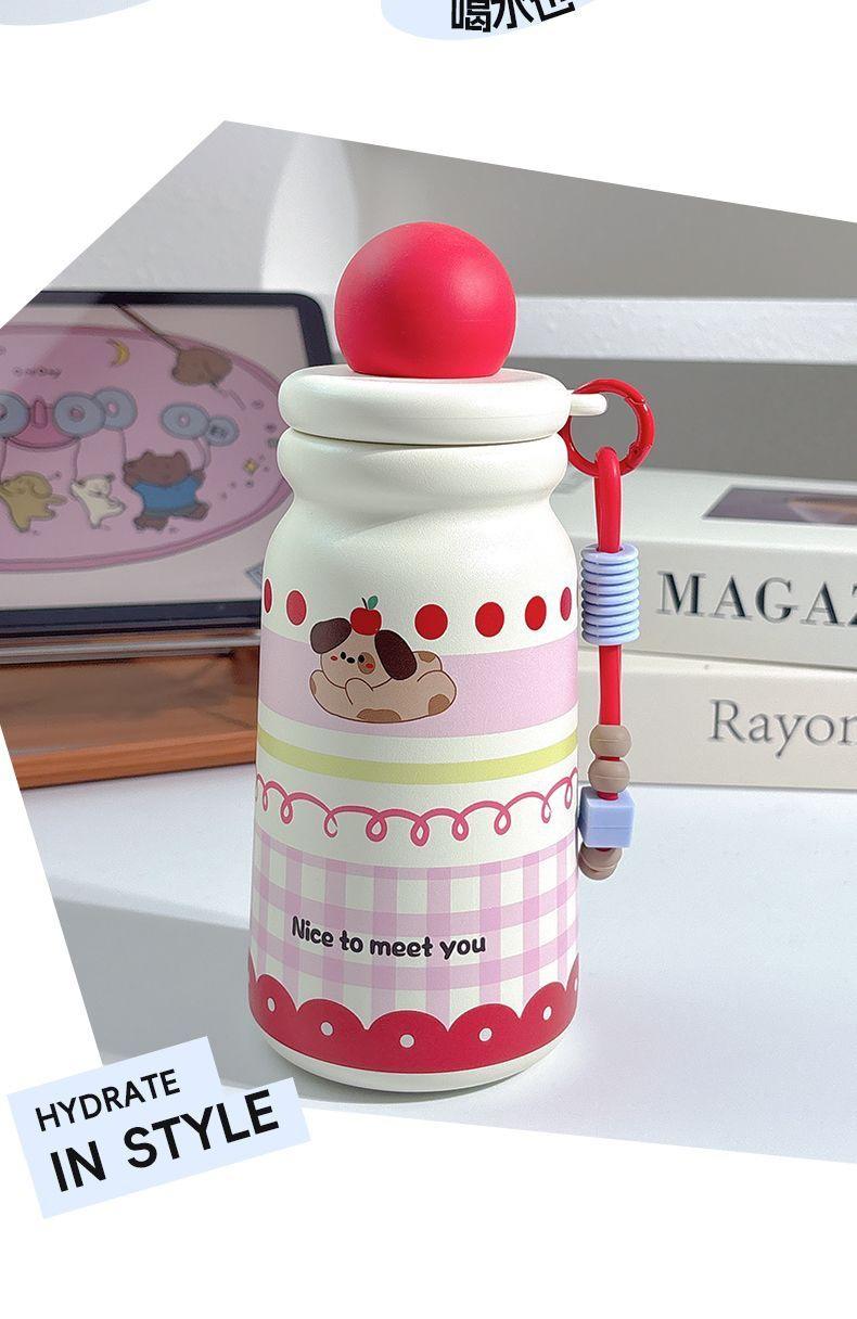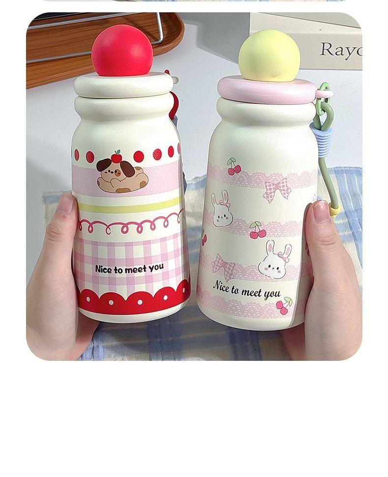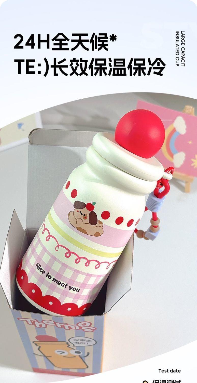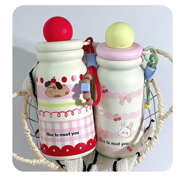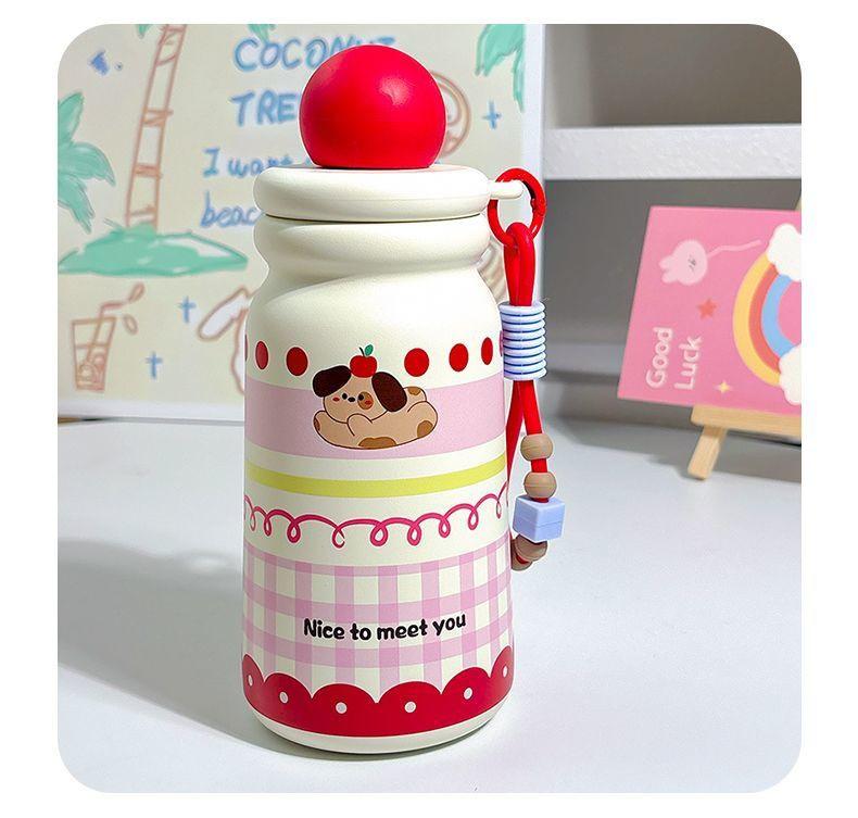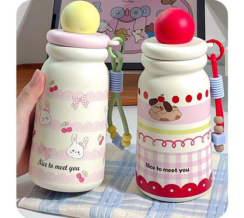 Vaso de Agua Termo Acero Inoxidable 316 Niñas Alto Valor Ins Vaso de Dibujos Animados con Pajita con Infusor de Té Vaso Portátil para Estudiantes