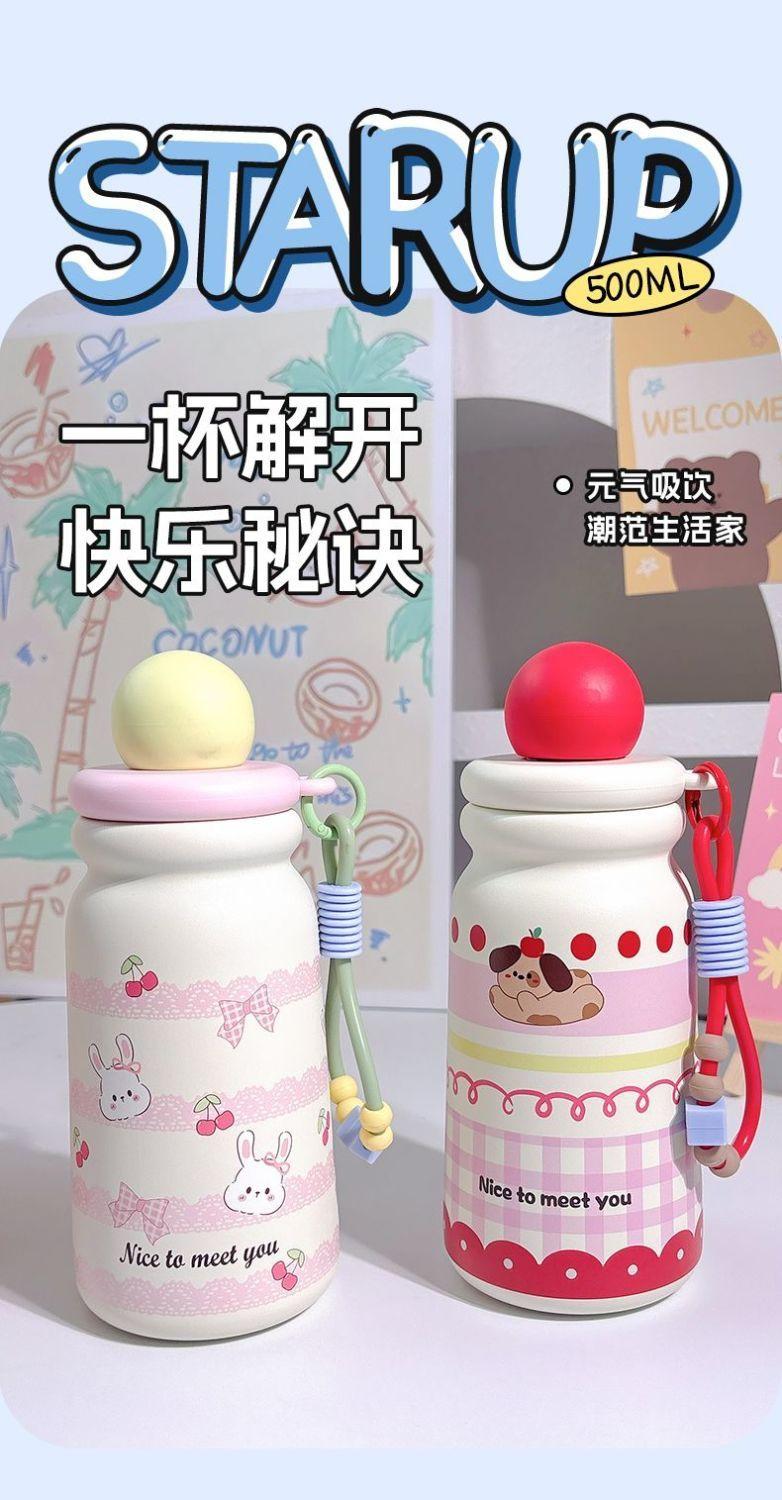 Blue-Ball Lid Insulated Cup 500ML, Pink-Ball Lid Insulated Cup 500ML, Red-Ball Cap Insulated Bottle 500ML