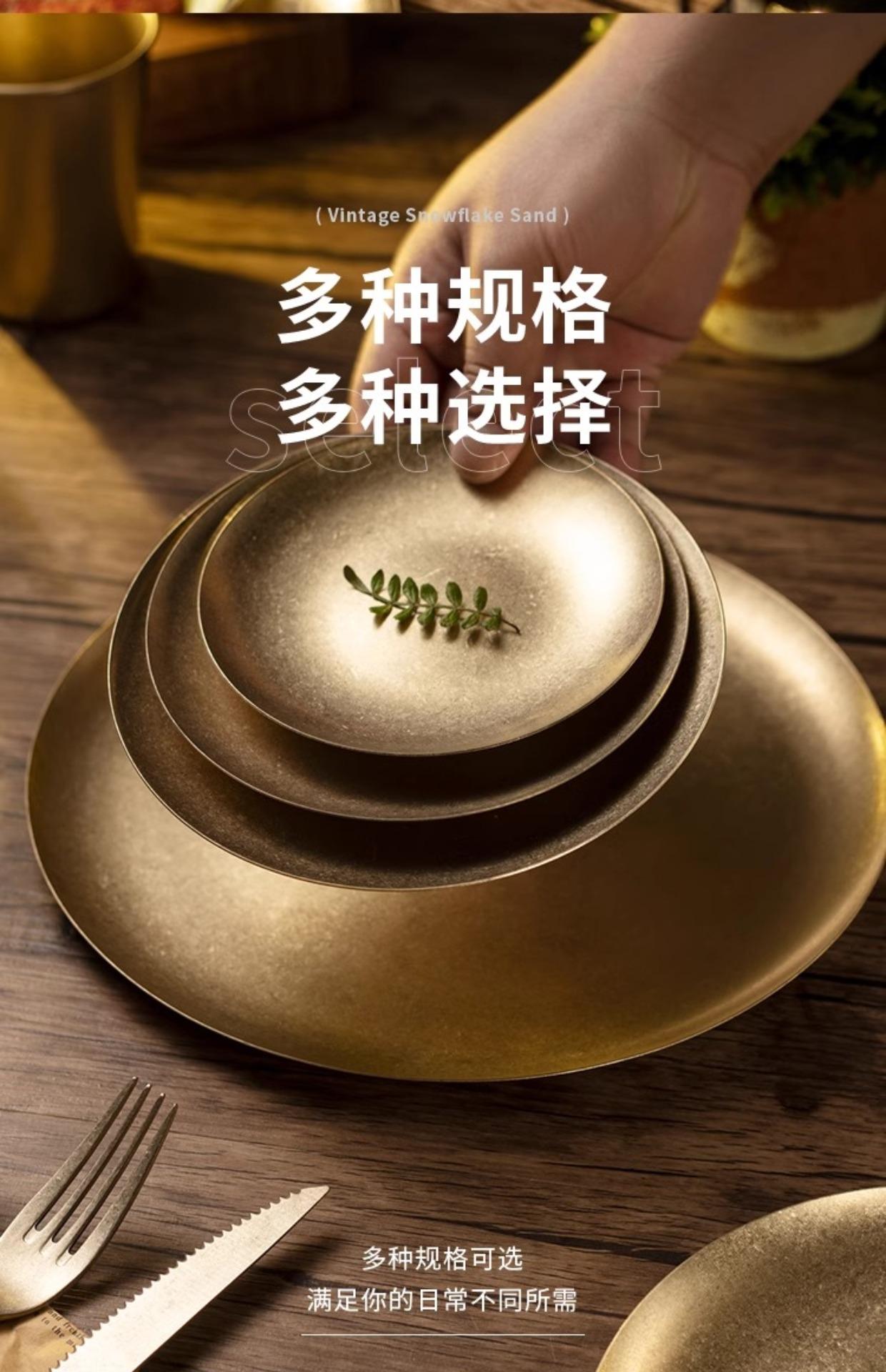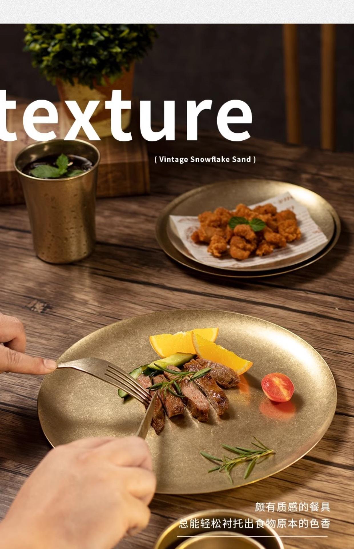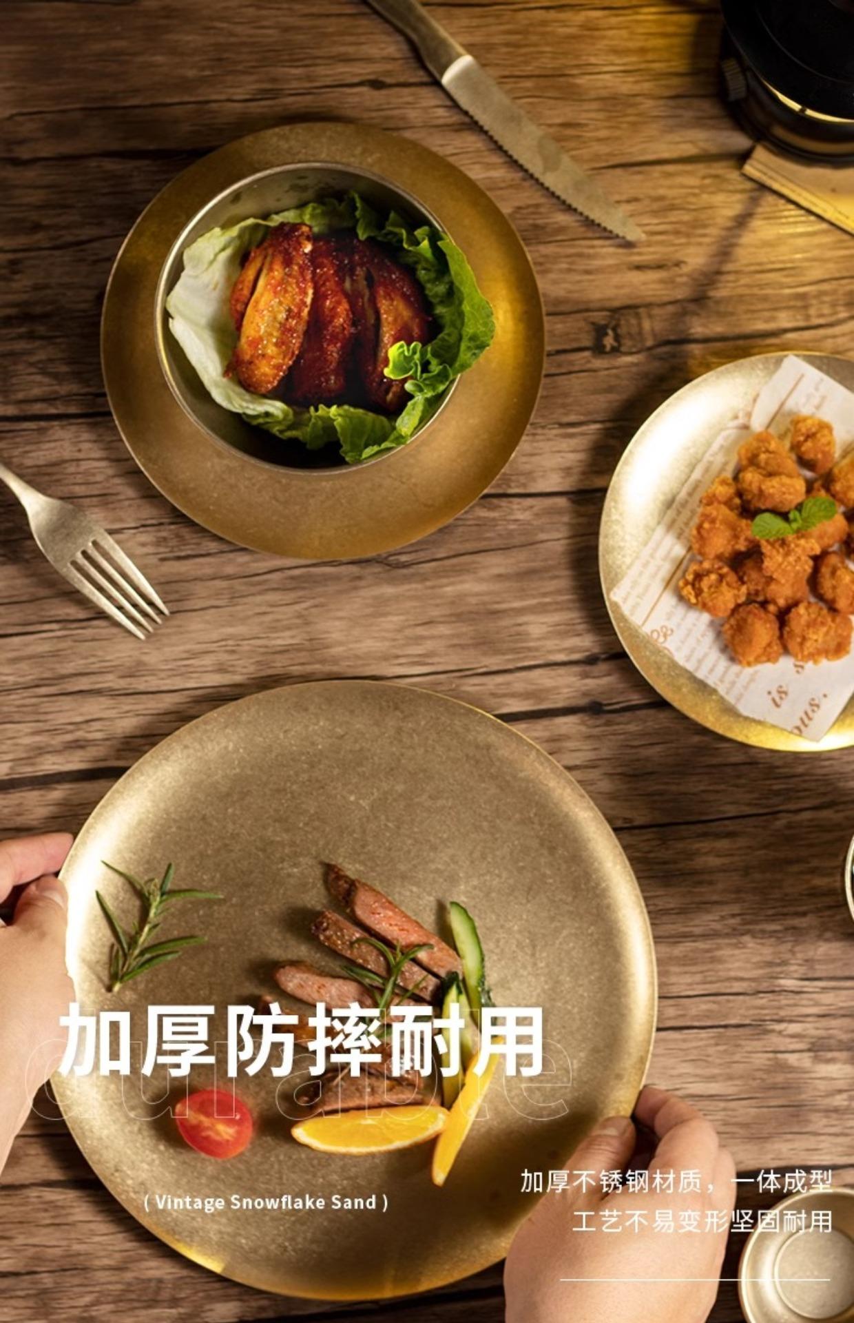 Plato Redondo Retro de Acero Inoxidable Plato para Barbacoa Plato Llano Poco Profundo Dorado Plato para Bistec Plato para Plato Bandeja para Bocadillos Plato para Postre Comercial