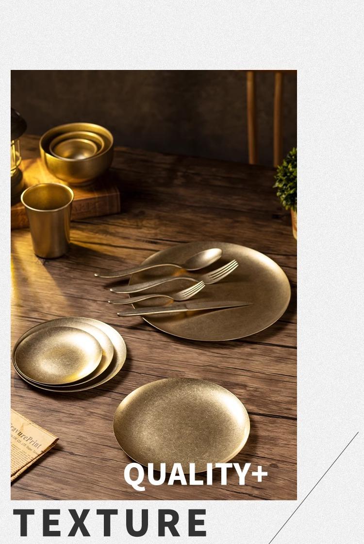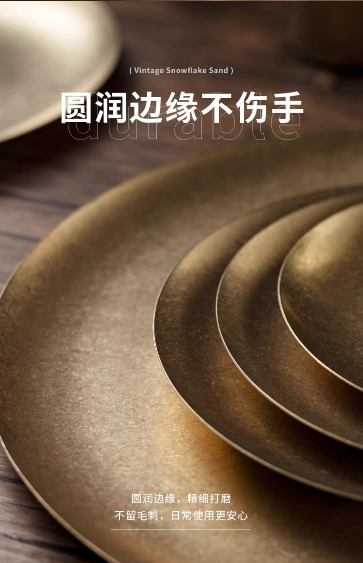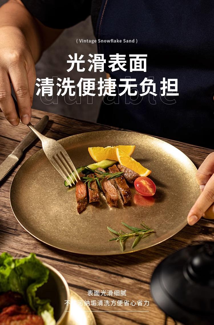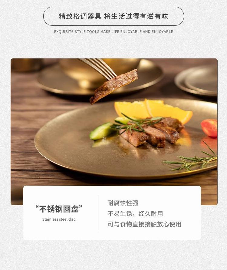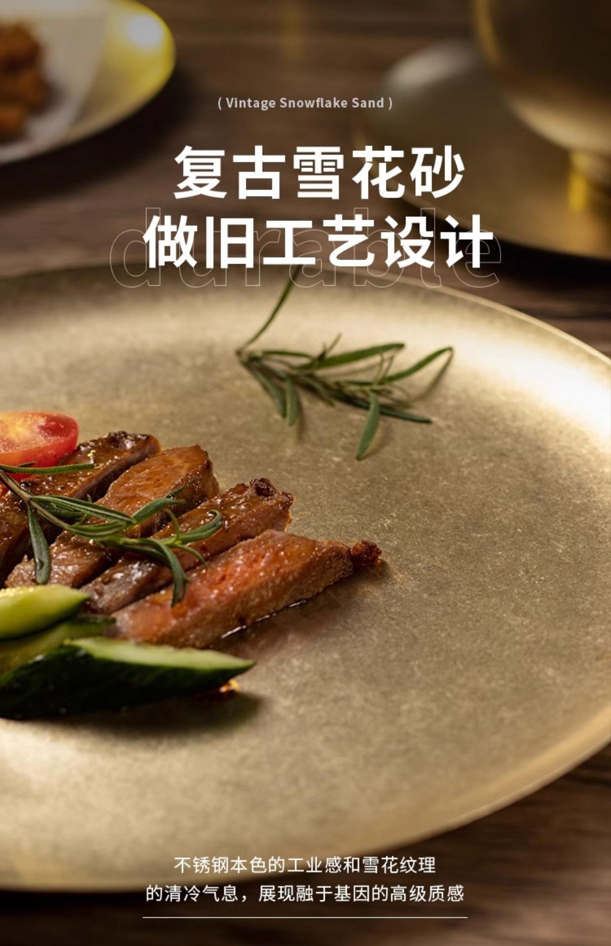 Plato Redondo Retro de Acero Inoxidable Plato para Barbacoa Plato Llano Poco Profundo Dorado Plato para Bistec Plato para Plato Bandeja para Bocadillos Plato para Postre Comercial