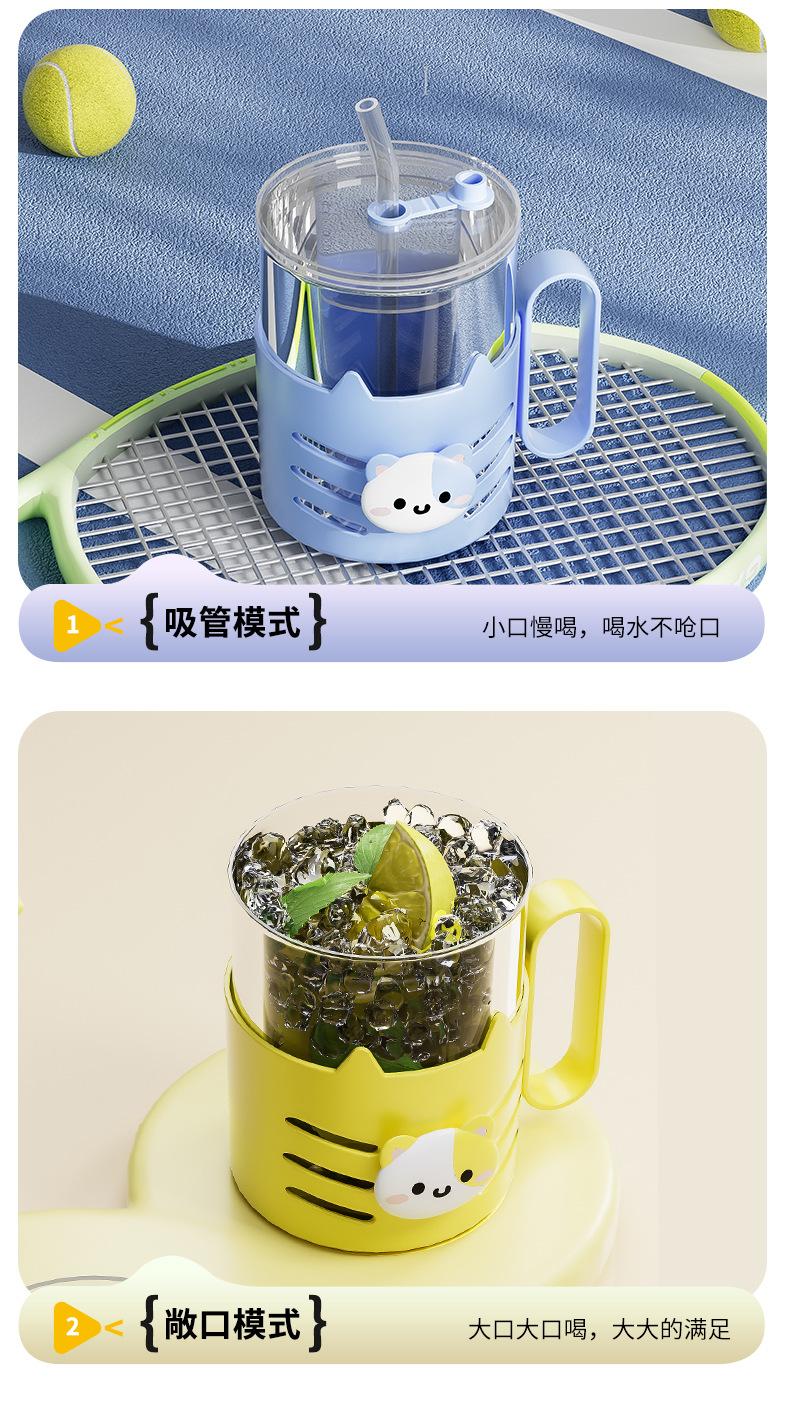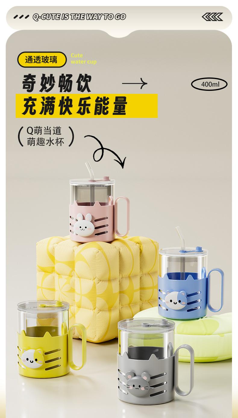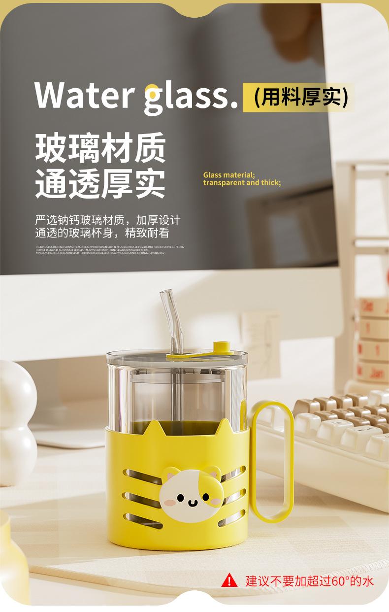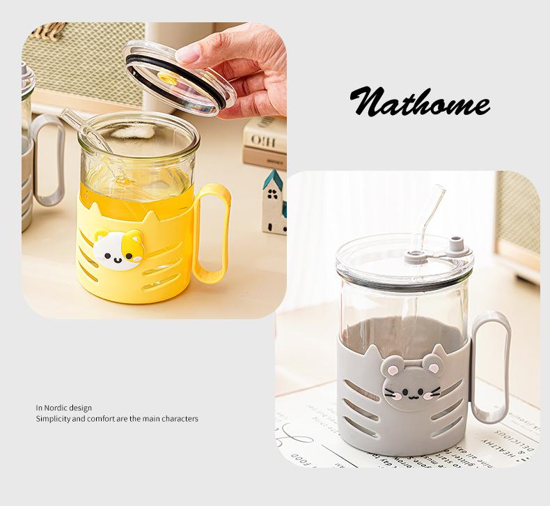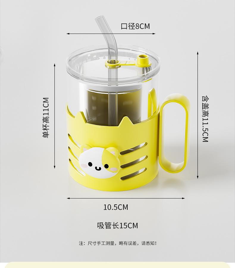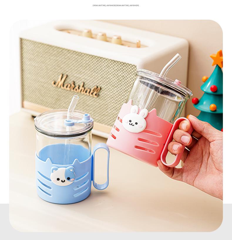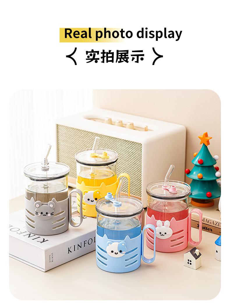 Taza de Vidrio con Popote Super Linda Taza para Beber para el Hogar Resistente al Calor Taza de Café de Oficina Taza de Vidrio con Asa