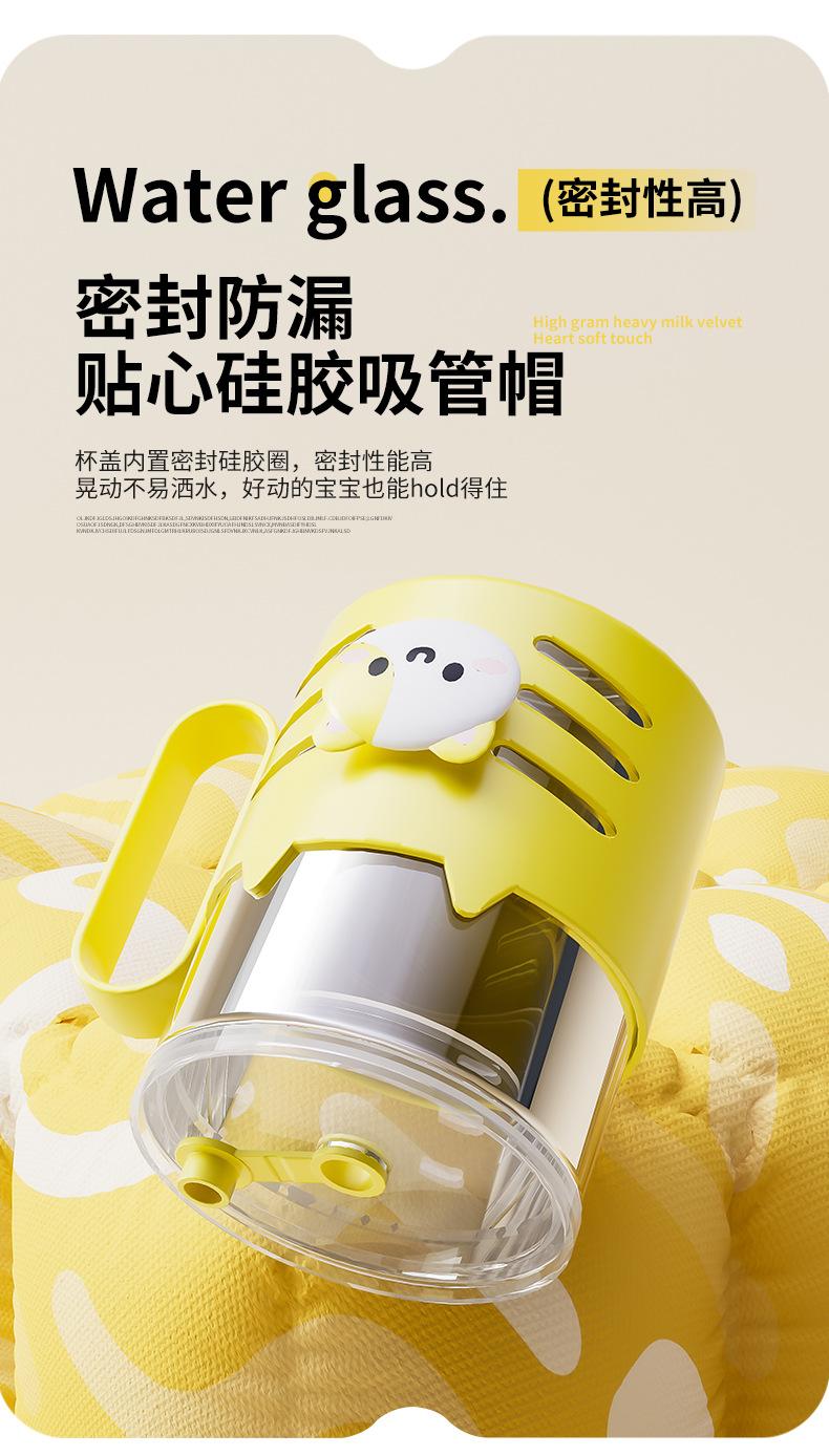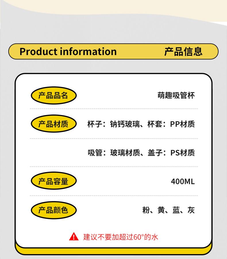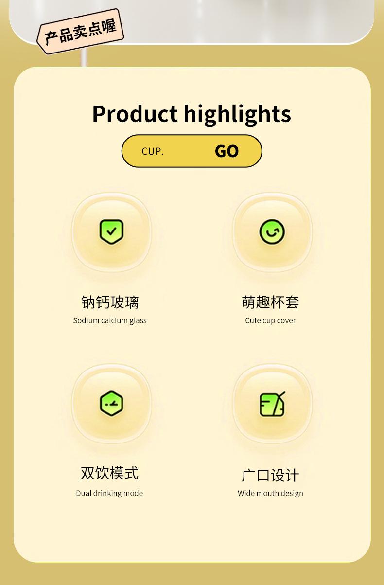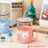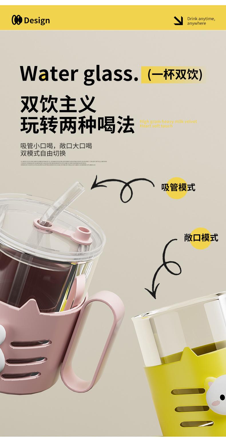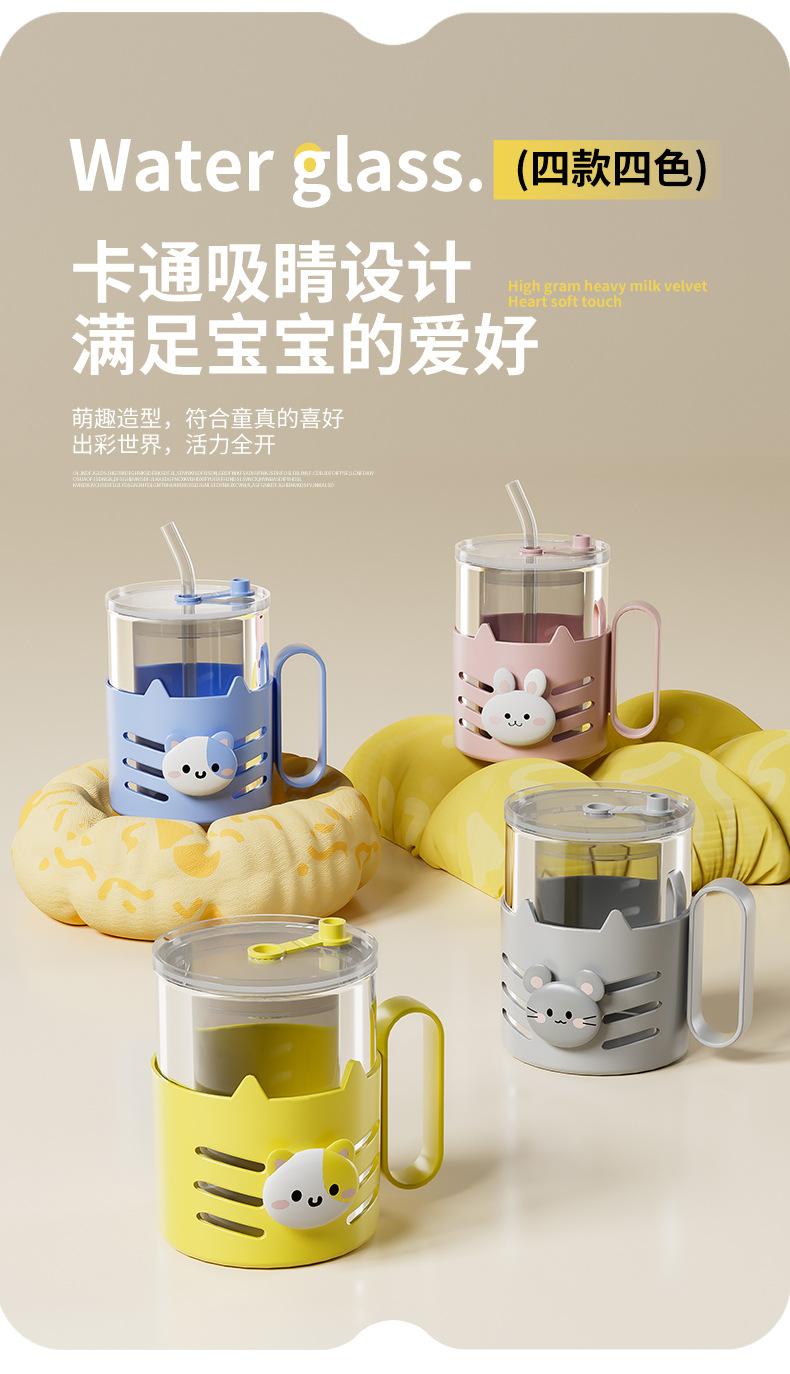 Taza de Vidrio con Popote Super Linda Taza para Beber para el Hogar Resistente al Calor Taza de Café de Oficina Taza de Vidrio con Asa