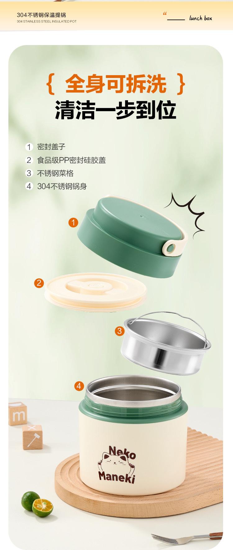 Cubo Lonchera Aislada de Acero Inoxidable 304 con Tapa y Asa Nuevo para Trabajadores de Oficina Artefacto de Aislamiento de Alimentos de Invierno Gran Capacidad