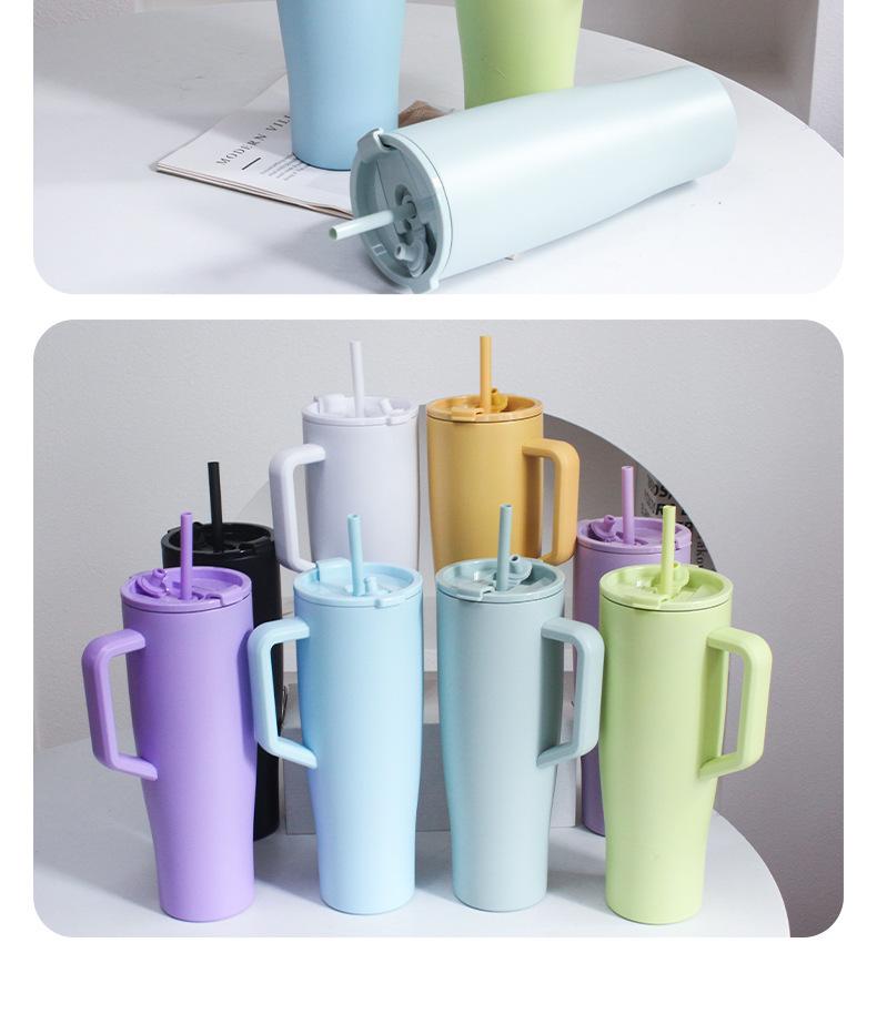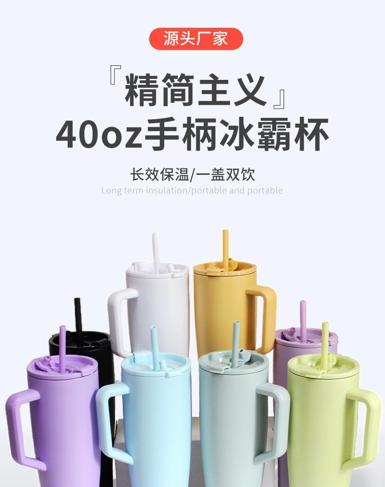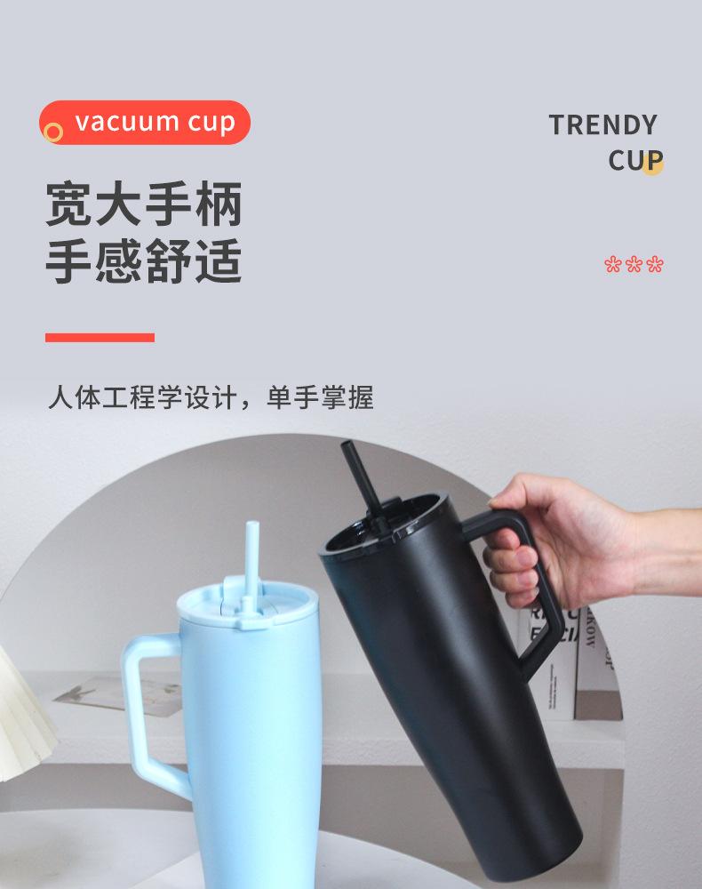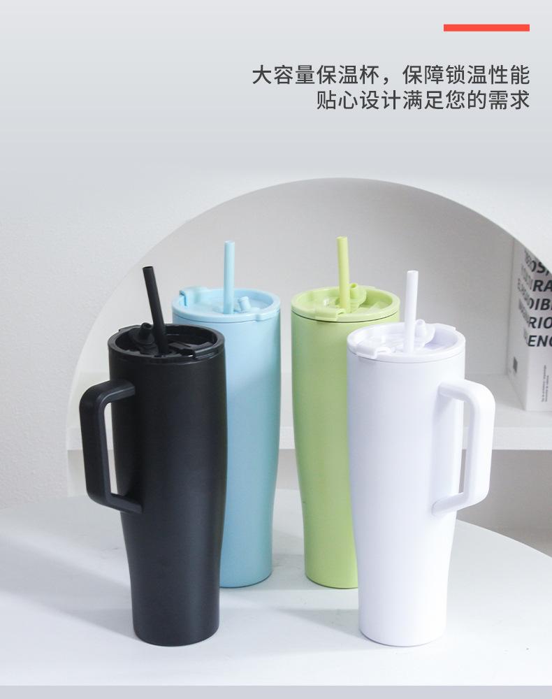 Vaso de Hielo con Asa de 40 oz Acero Inoxidable 304 Termo de Gran Capacidad con Popote Vaso Portátil para Exterior para Coche Vaso para Agua