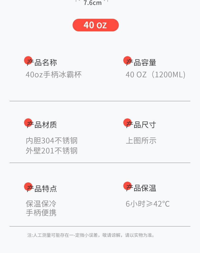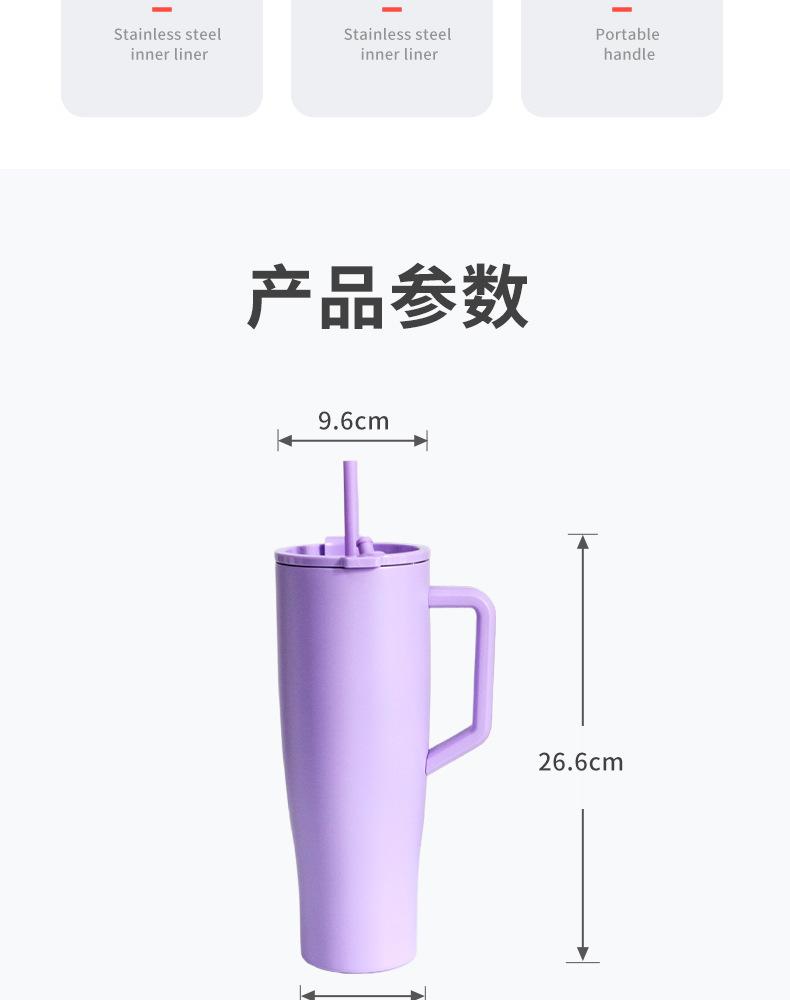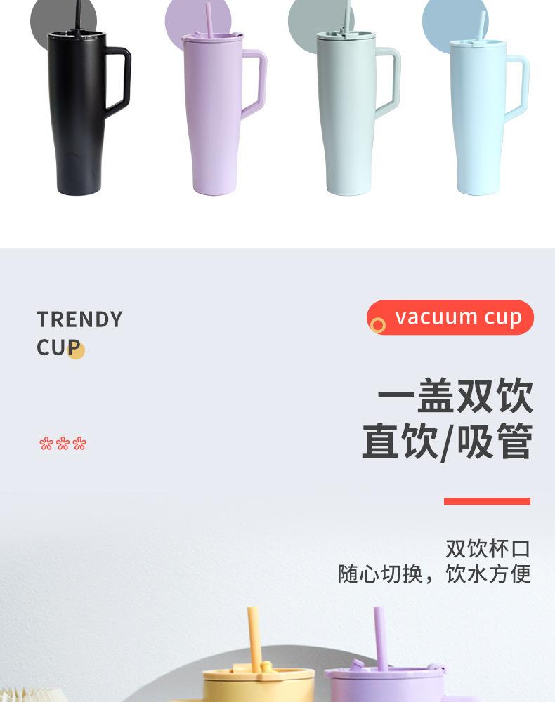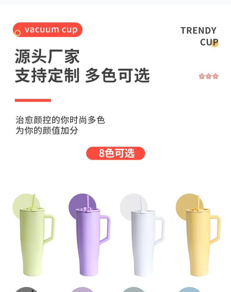 Vaso de Hielo con Asa de 40 oz Acero Inoxidable 304 Termo de Gran Capacidad con Popote Vaso Portátil para Exterior para Coche Vaso para Agua