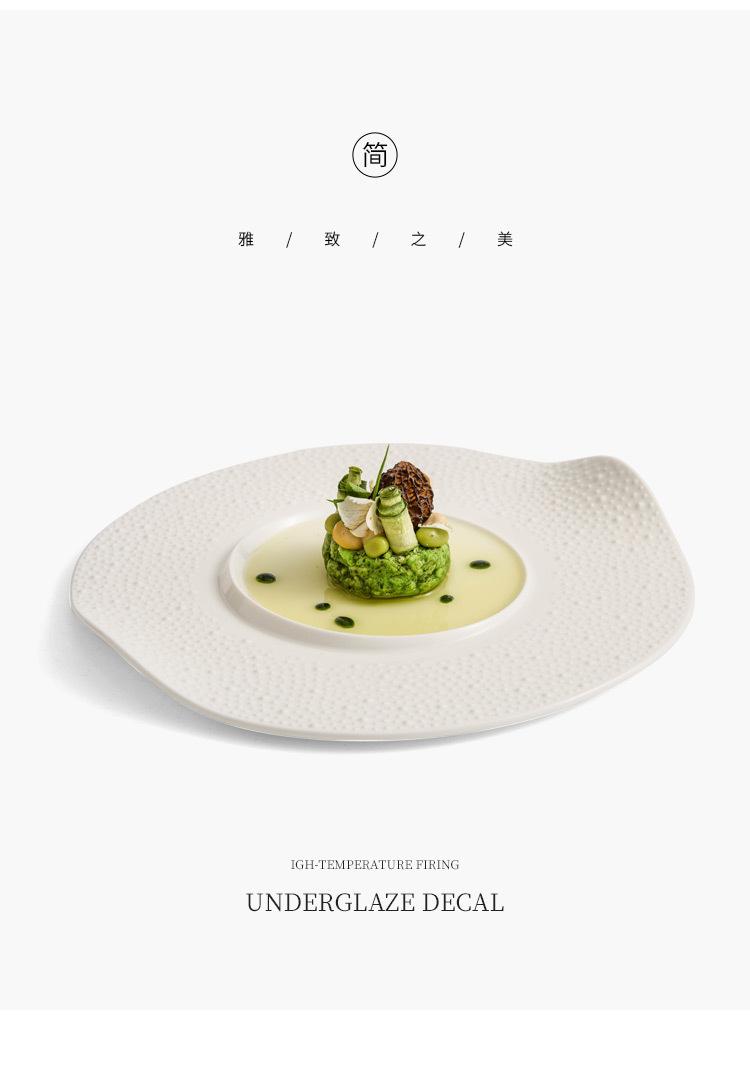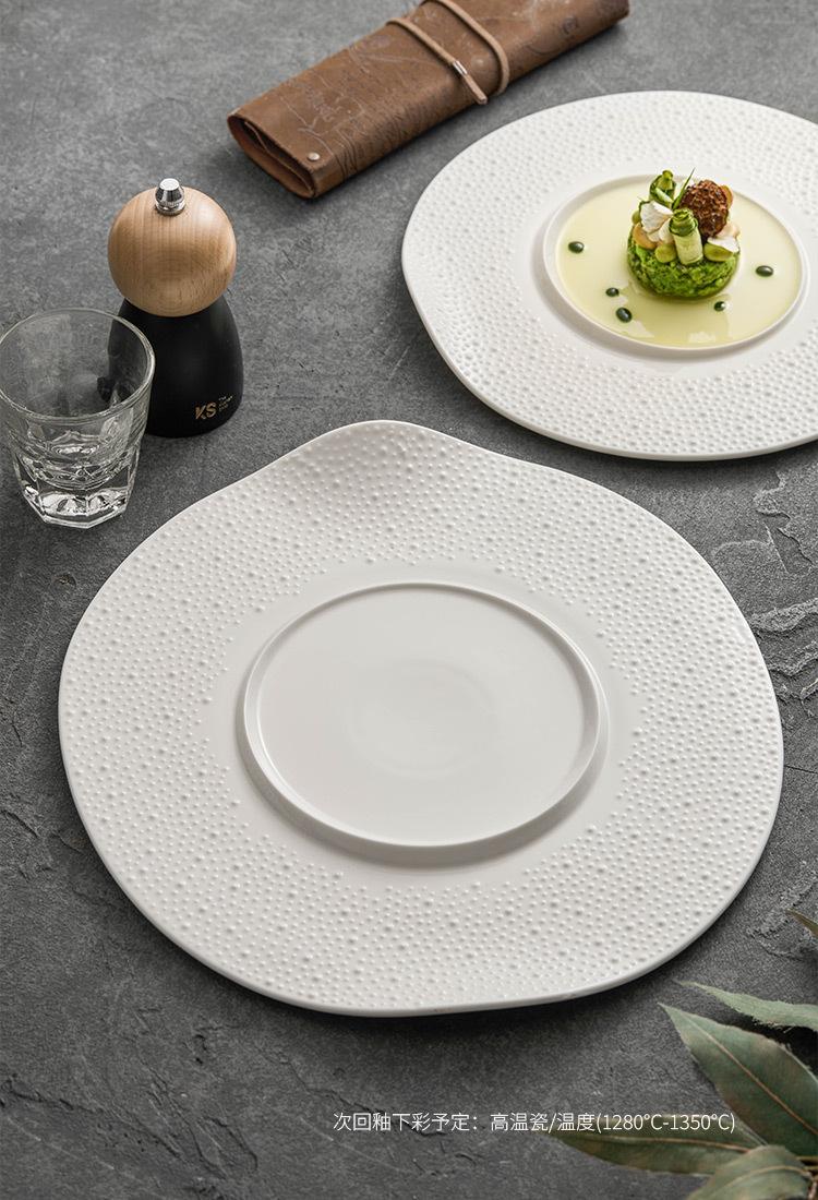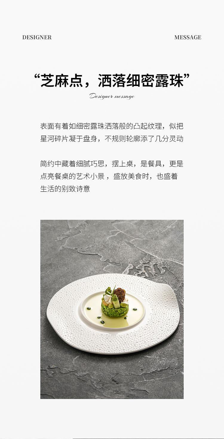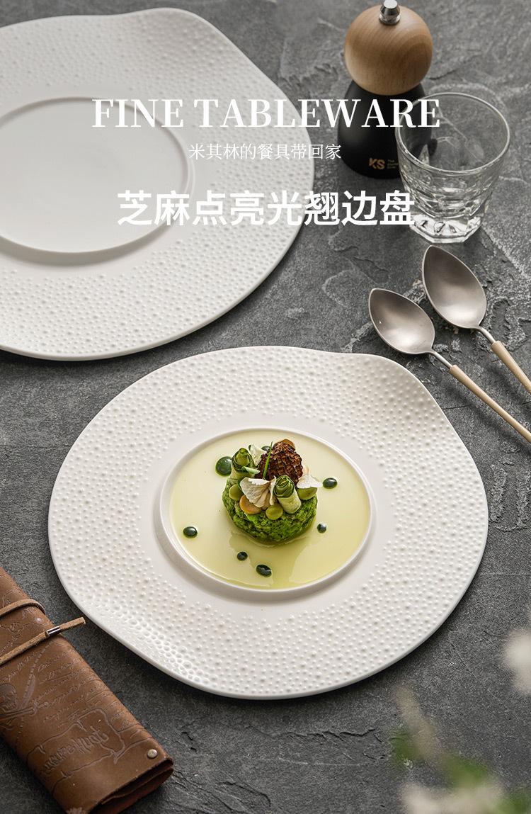 Plato occidental de puntos de sésamo plato de concepción artística de cerámica emplatado vajilla comercial de hotel plato blanco creativo plato de borde acampanado