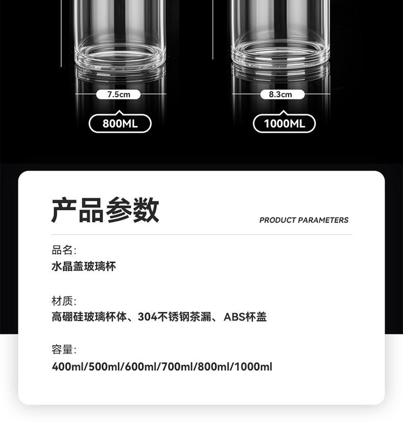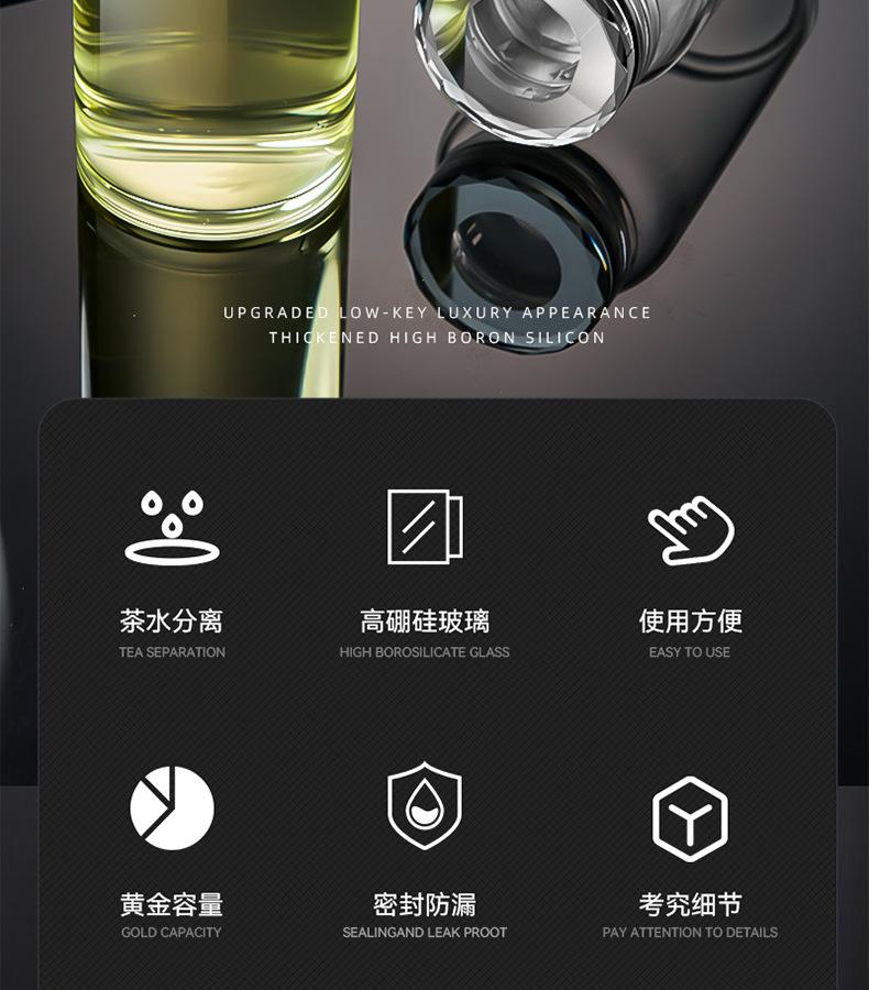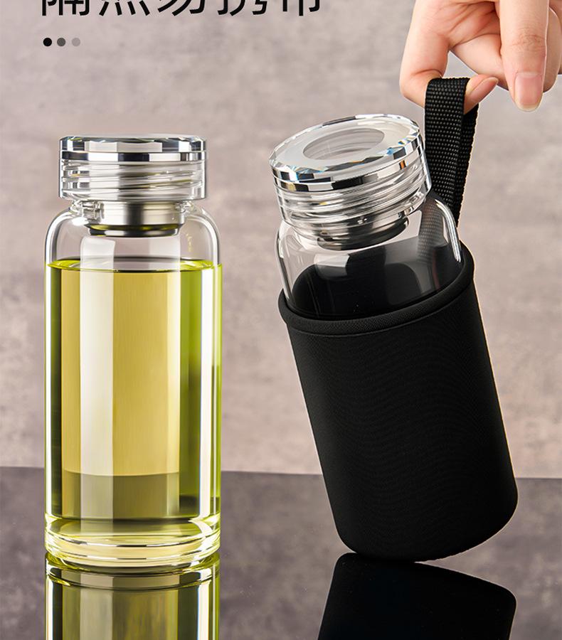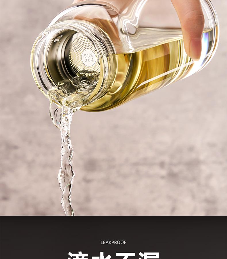Jieanxi nueva taza de vidrio engrosado de alto valor tapa de cristal resistente al calor taza de separación de té y agua taza de viaje portátil para exteriores
