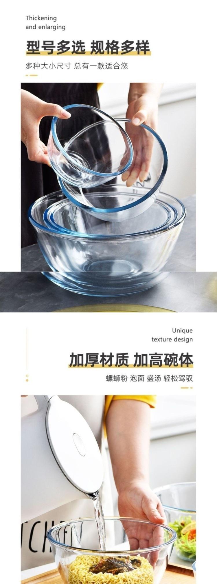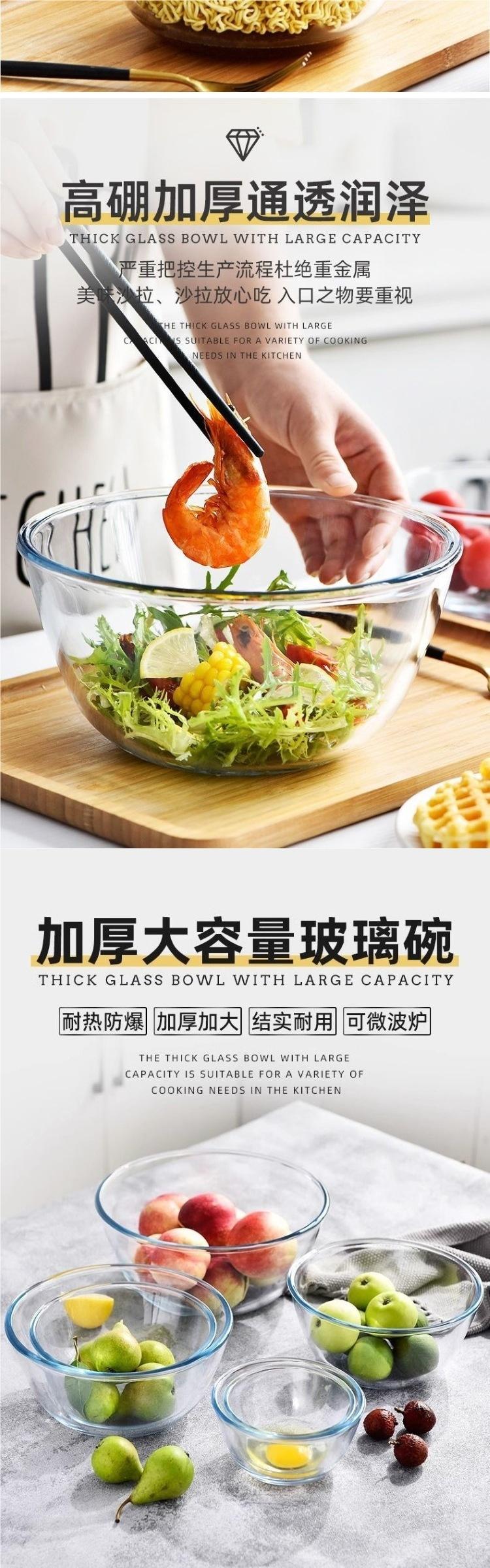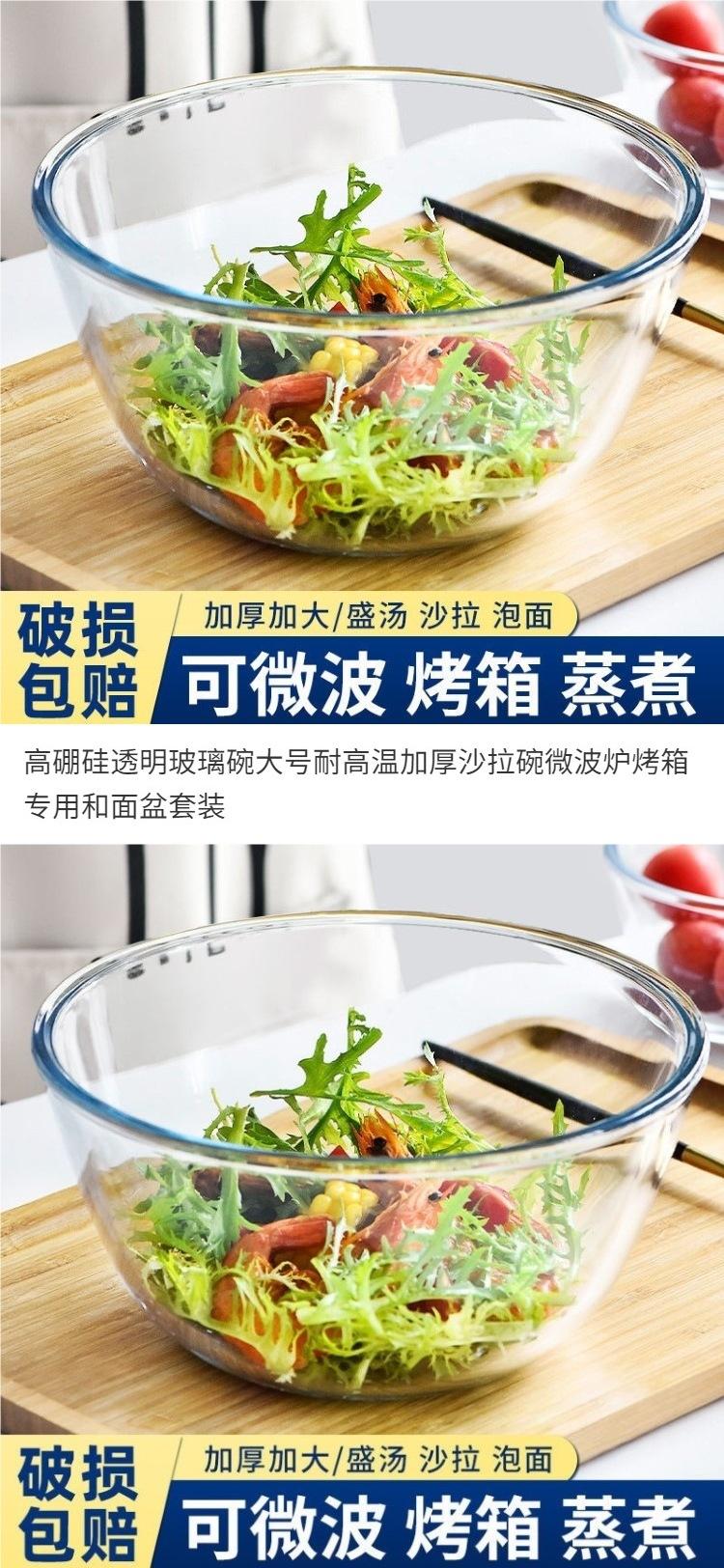 Tazón de Vidrio Transparente de Borosilicato Alto Tamaño Grande Resistente a Altas Temperaturas Engrosado Tazón para Ensalada Horno Microondas y Juego de Tazones para Mezclar
