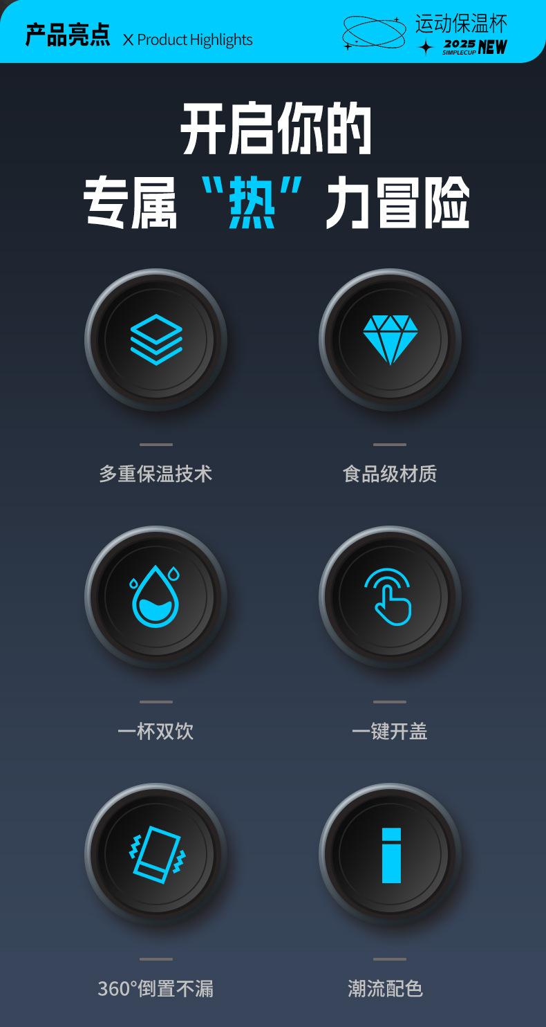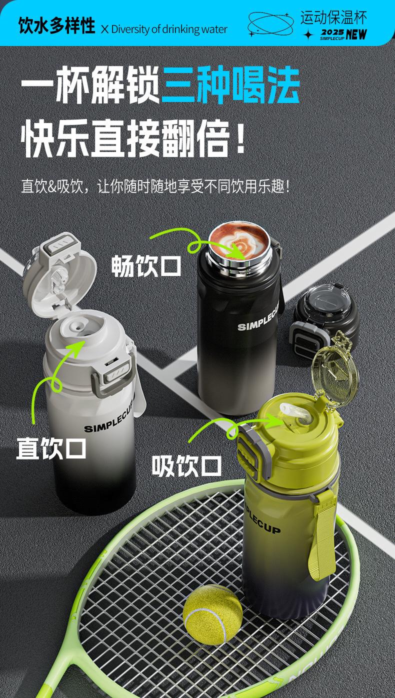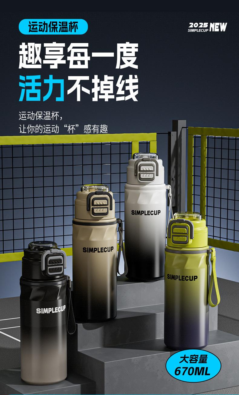 With carrying cord, High capacity, Bouncing cup, With straw, With lock buckle, straight cup
