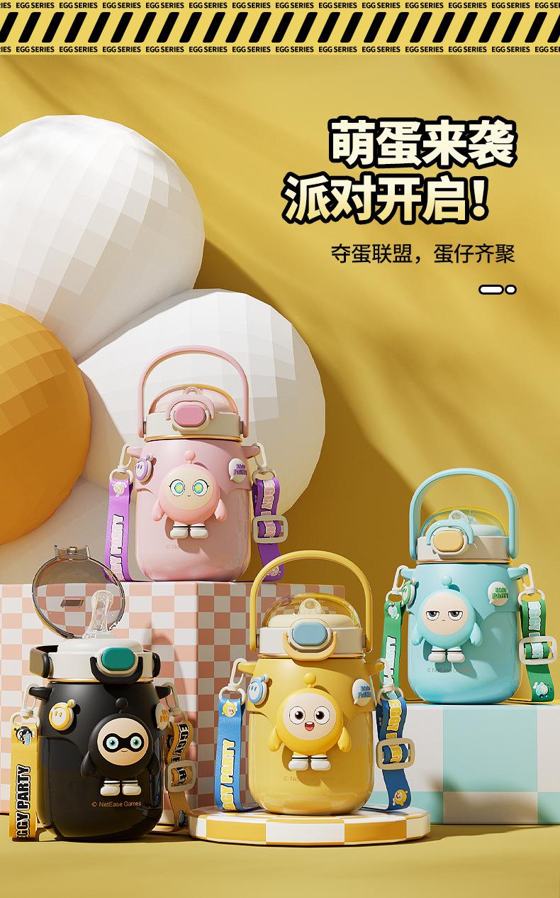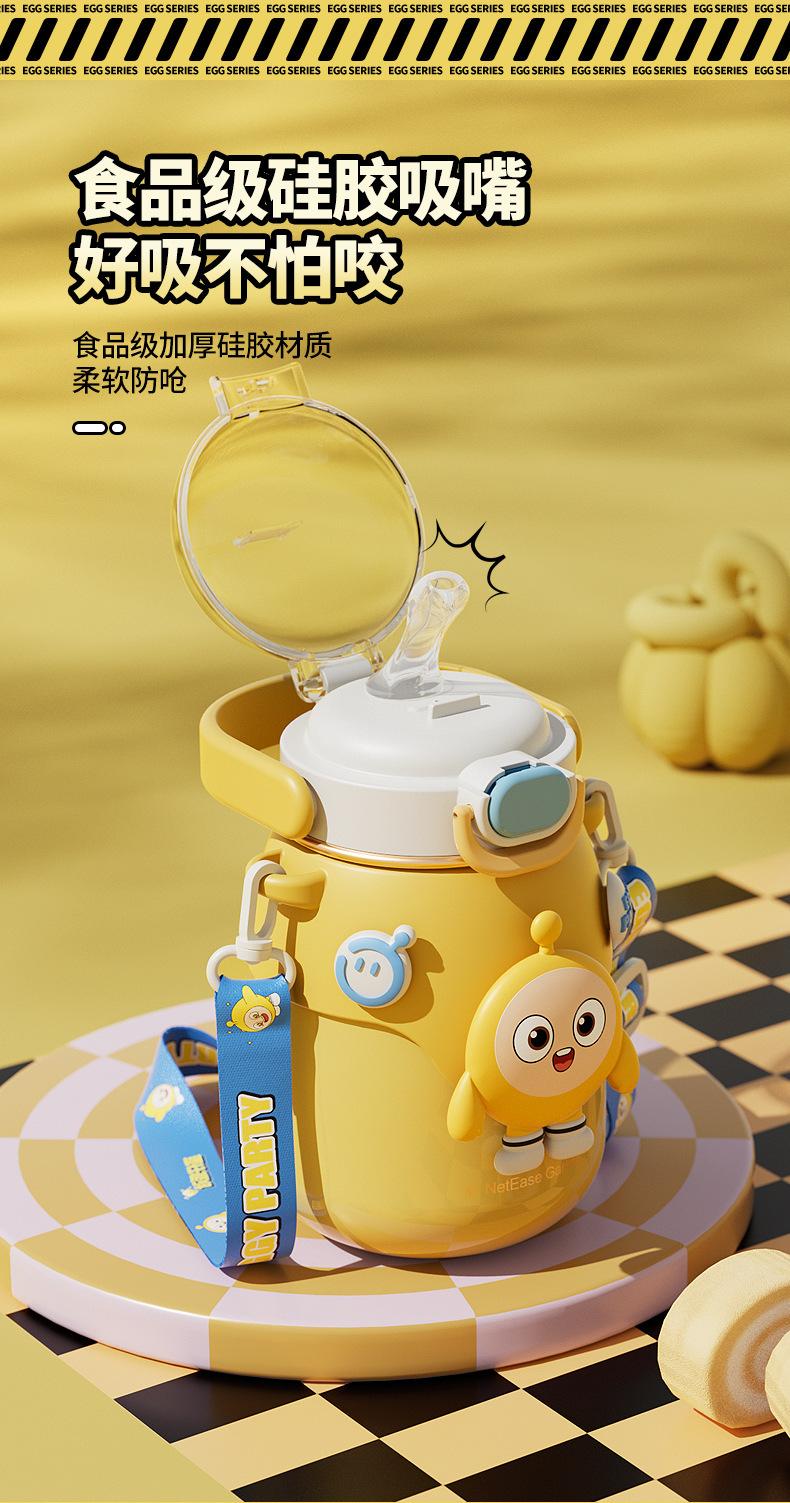Vaso de Agua para Fiesta de Waffle de Huevo Bao Vaso con Popote Conveniente para Niña de Alto Valor Lindo de Gran Capacidad Vaso de Agua para Estudiante Niño