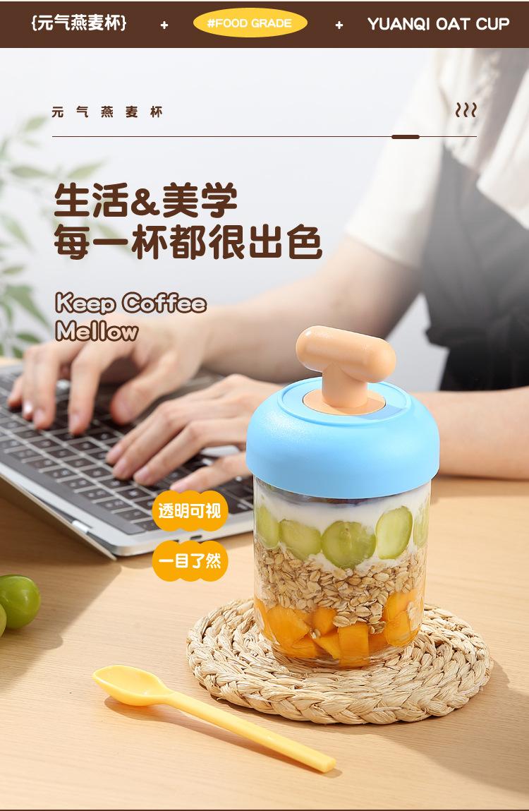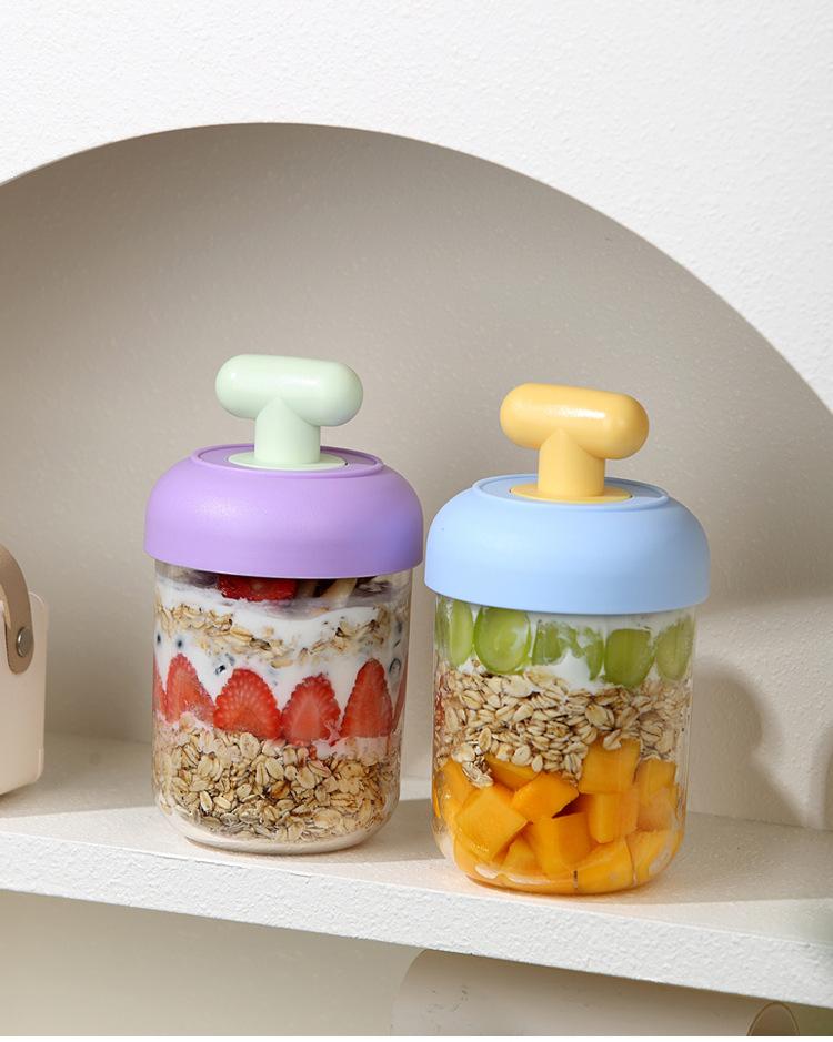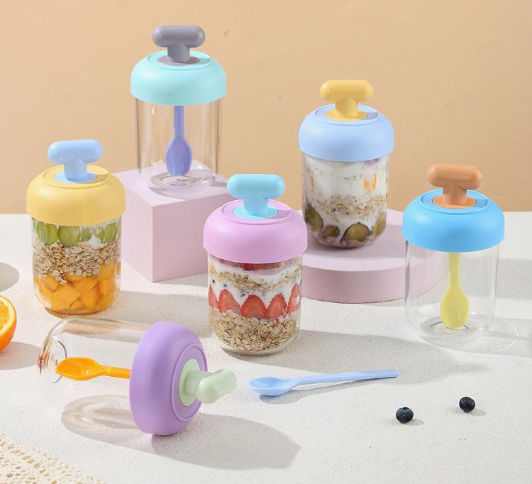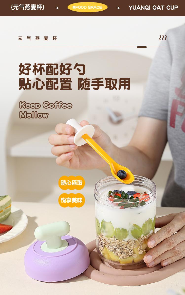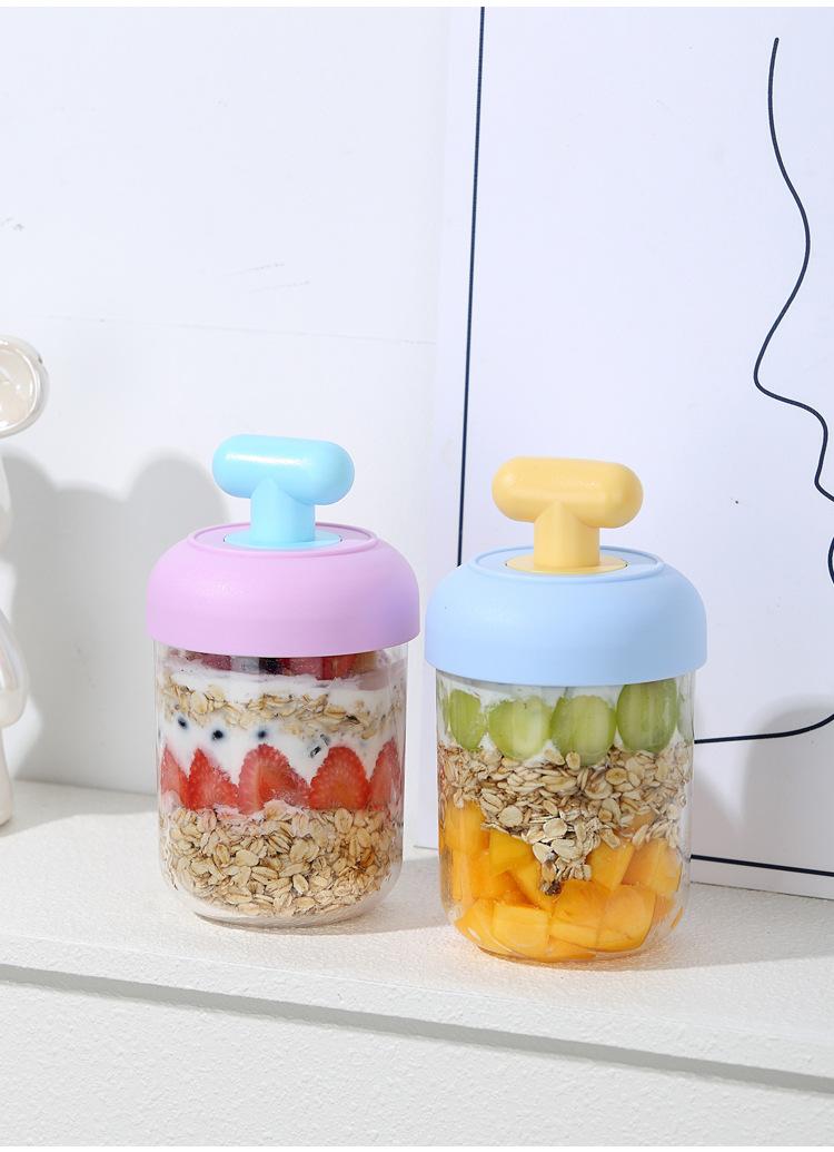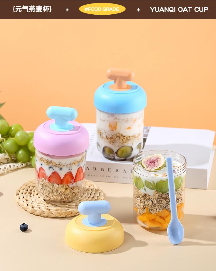 Taza de Avena Nocturna Portátil Sellada para Llevar Vaso para Desayuno con Leche de Soya y Yogurt con Tapa y Cuchara Vaso para Infusión de Batido Cereal con Leche