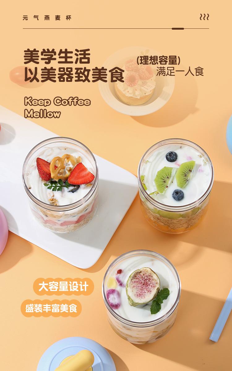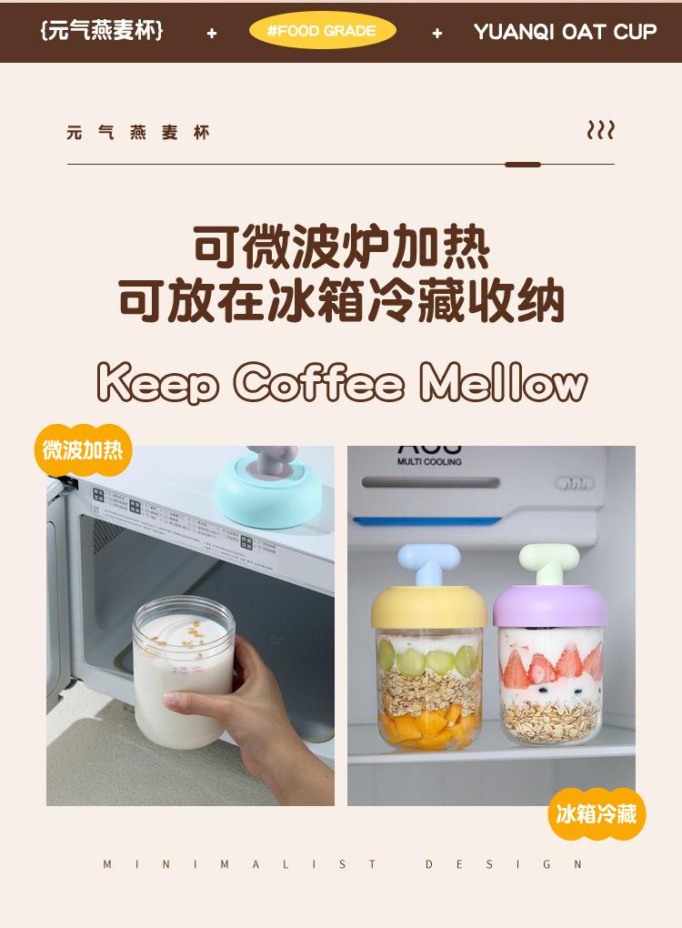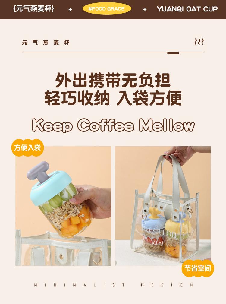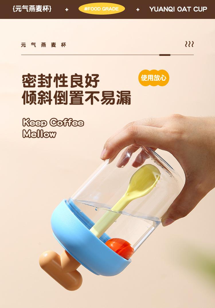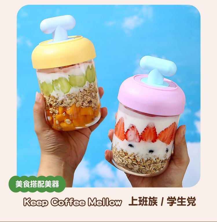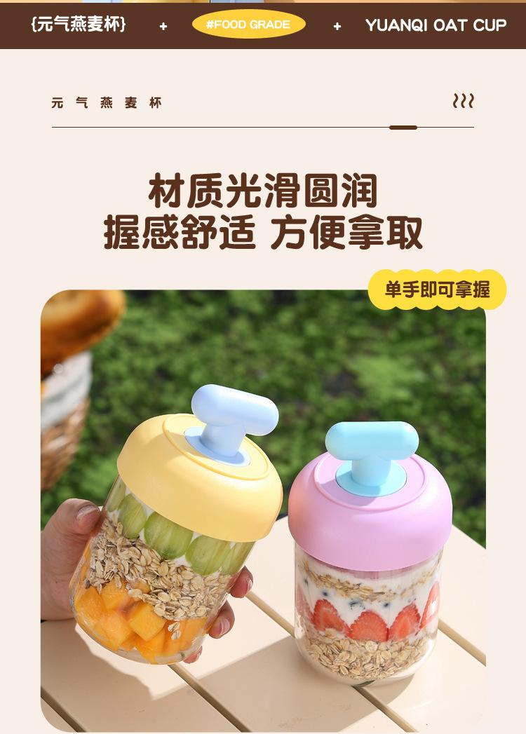Taza de Avena Nocturna Portátil Sellada para Llevar Vaso para Desayuno con Leche de Soya y Yogurt con Tapa y Cuchara Vaso para Infusión de Batido Cereal con Leche