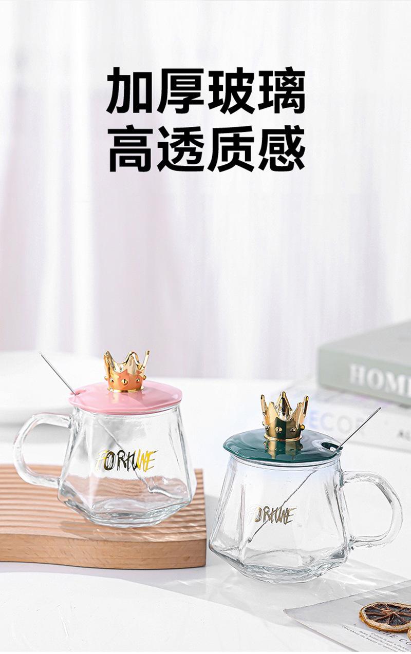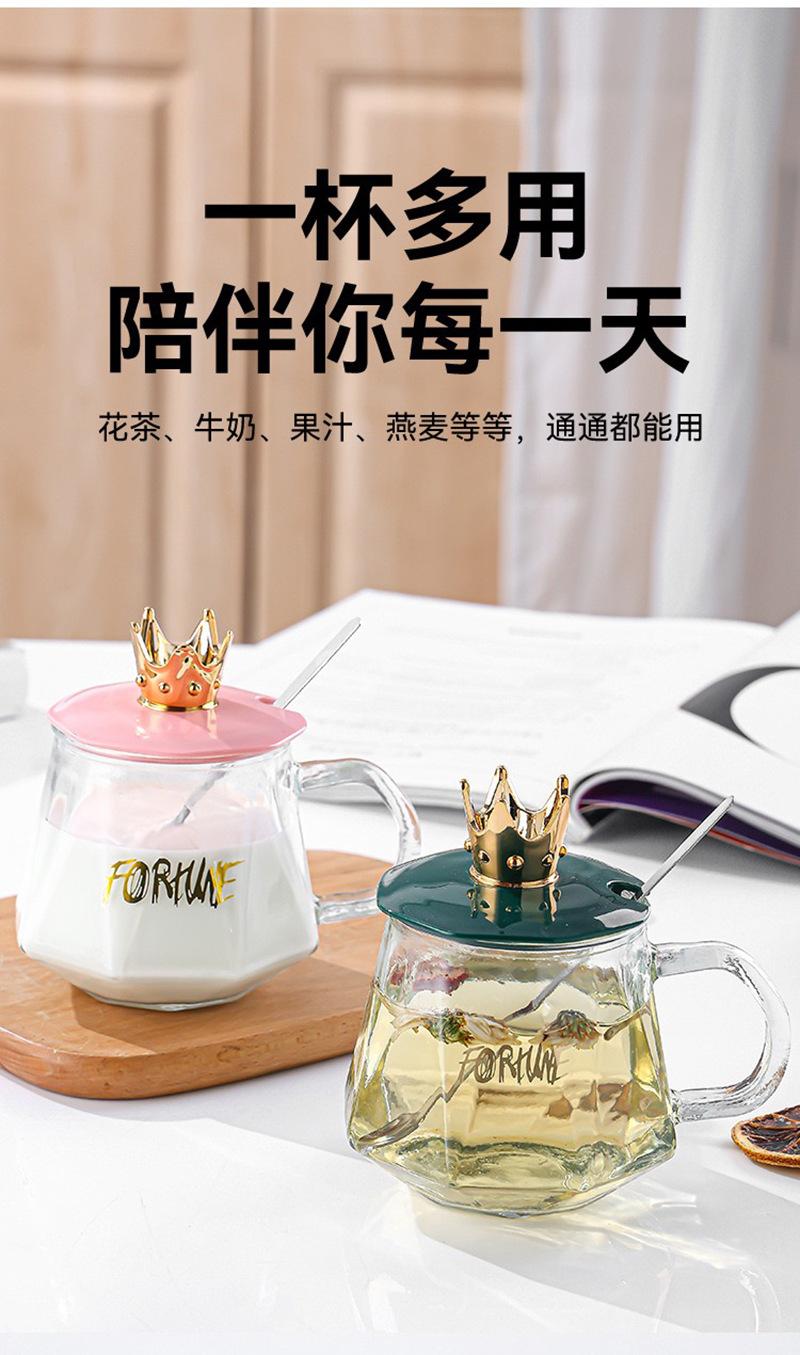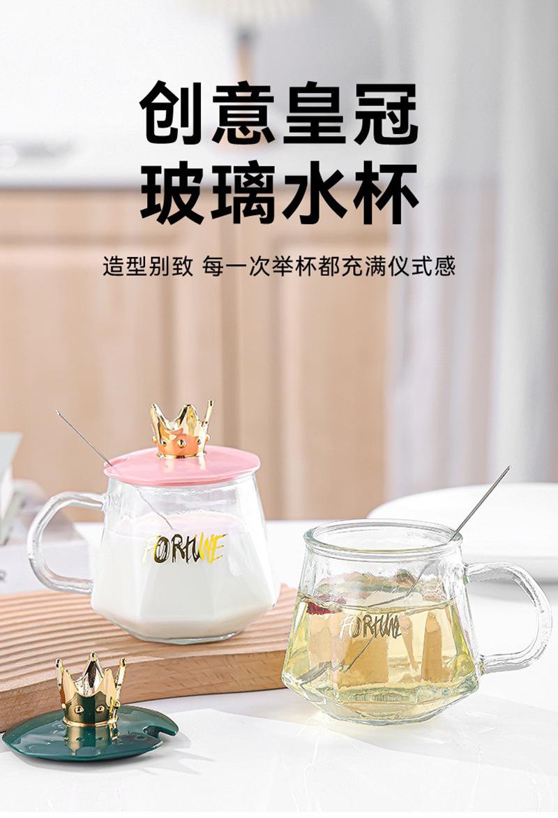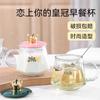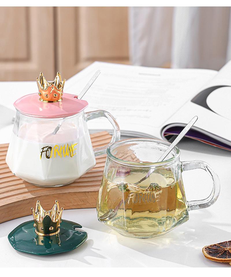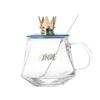 Taza de agua de vidrio con corona creativa en stock, taza de leche para avena de desayuno de alto valor 350ml, taza de agua para el hogar