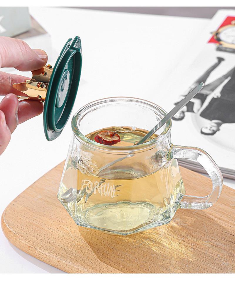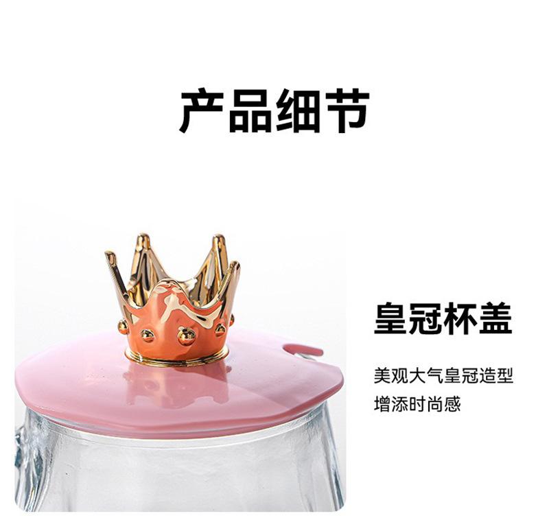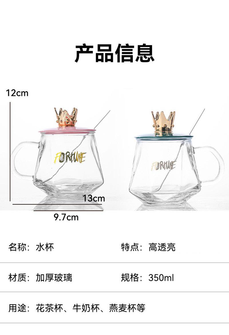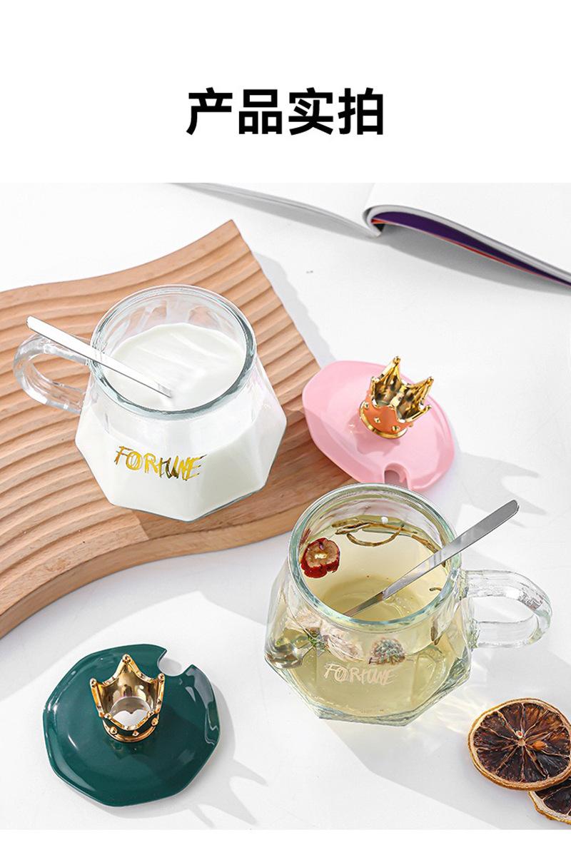 Taza de agua de vidrio con corona creativa en stock, taza de leche para avena de desayuno de alto valor 350ml, taza de agua para el hogar