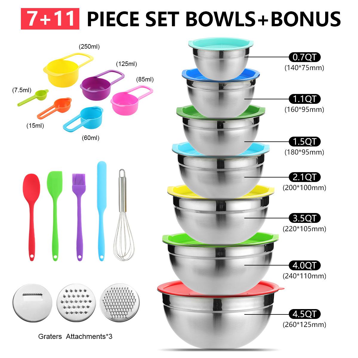 Juego de 22 piezas de Acero Inoxidable para Ensaladera, Colador para Lavar Arroz, Tazas Medidoras para Hornear, Ensaladeras, Tazones para Mezclar