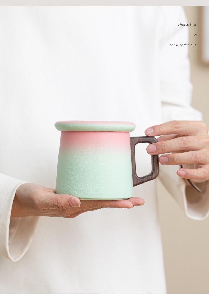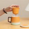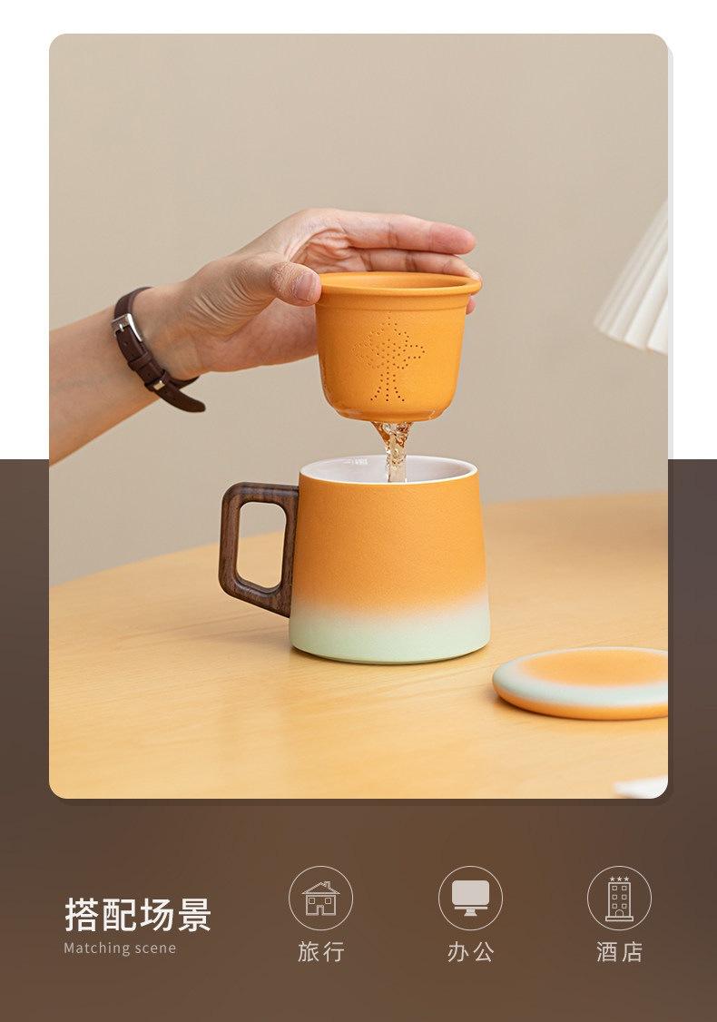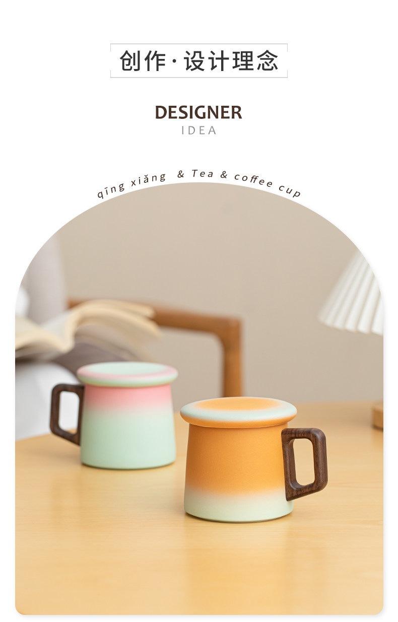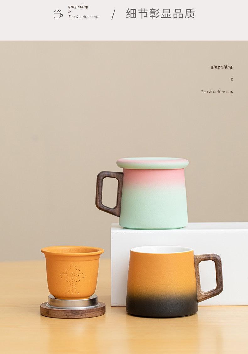 Taza de Cerámica Simple con Degradado para Separación de Té y Agua Uso Personal para Hogar Oficina con Tapa Filtro Asa de Madera Taza de Té