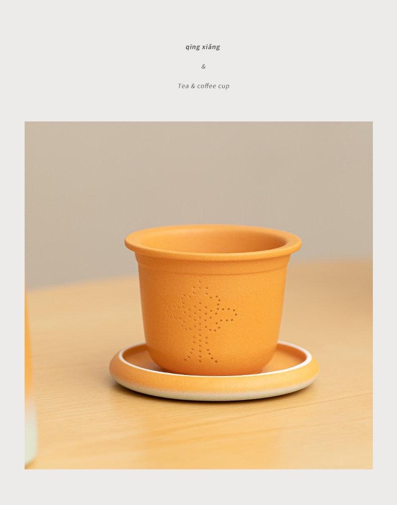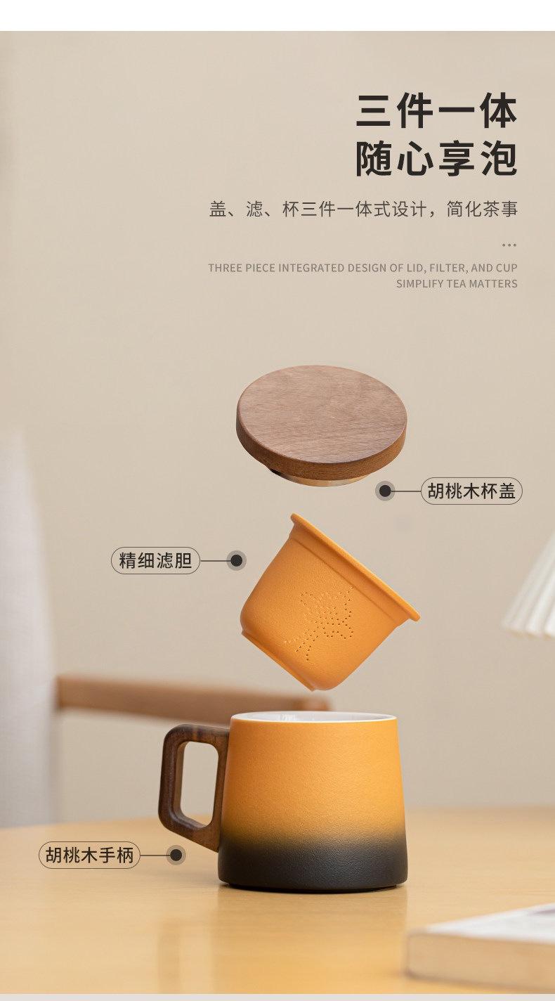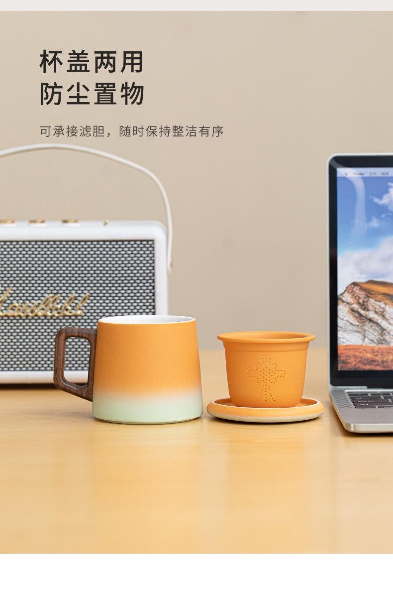 Taza de Cerámica Simple con Degradado para Separación de Té y Agua Uso Personal para Hogar Oficina con Tapa Filtro Asa de Madera Taza de Té