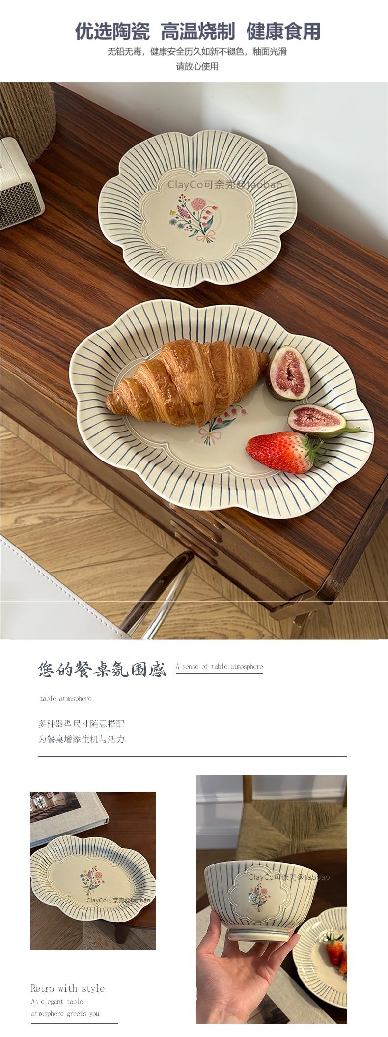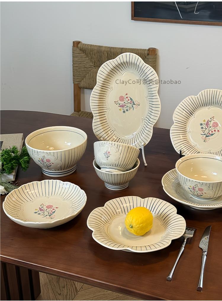 Juego de Vajilla de Cerámica Retro Francés de Alto Valor para el Hogar, Tazón de Arroz, Plato de Postre, Regalo de Inauguración