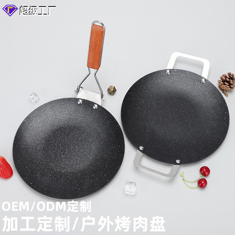 Sartén para Parrilla Antiadherente Portátil para Exterior Transfronterizo Barbacoa Coreana Trípode Estufa de Casete para Camping Plato para Barbacoa Redondo Sartén Teppanyaki