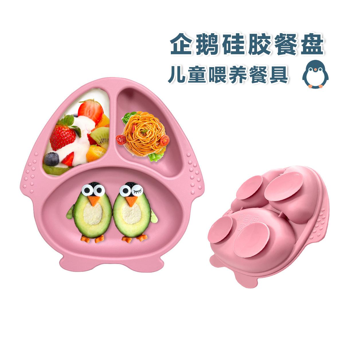 Plato de silicona para la cena, babero para bebé, vajilla para bebé, tenedor, cuchara, cuenco, taza anticaída, juego de oso, productos maternos e infantiles transfronterizos