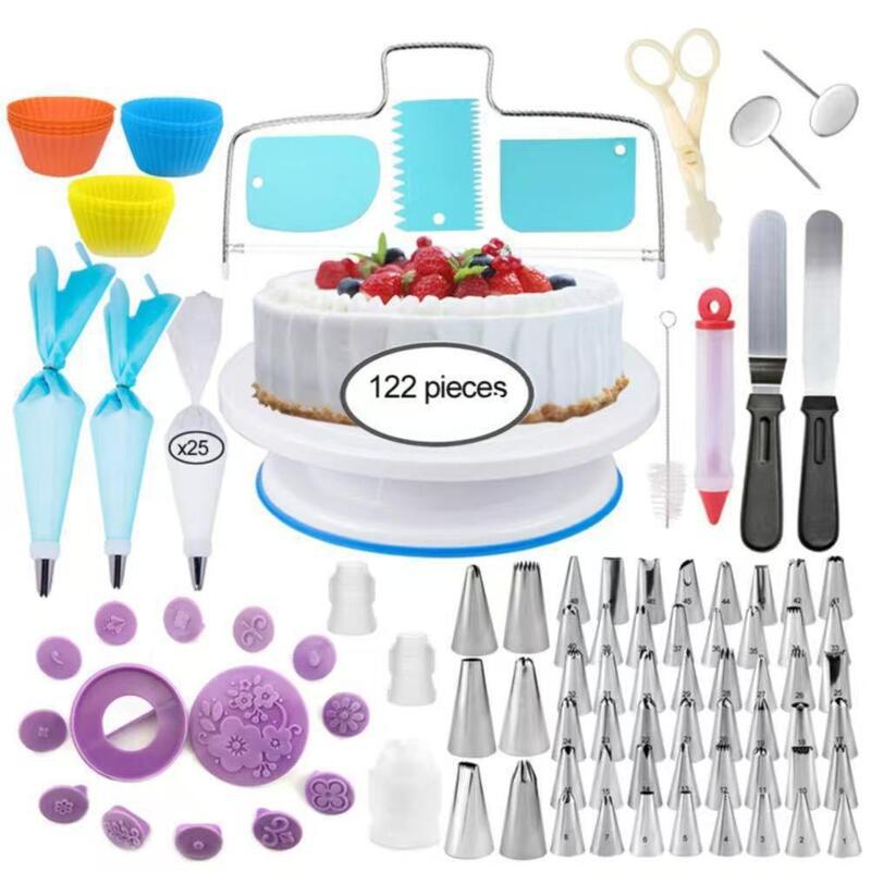 Amazon Base Giratoria para Pastel de 122 piezas Decoración de Pasteles Puntas para Glaseado Bolsas de Glaseado de TPU Moldes para Estampado de Fondant