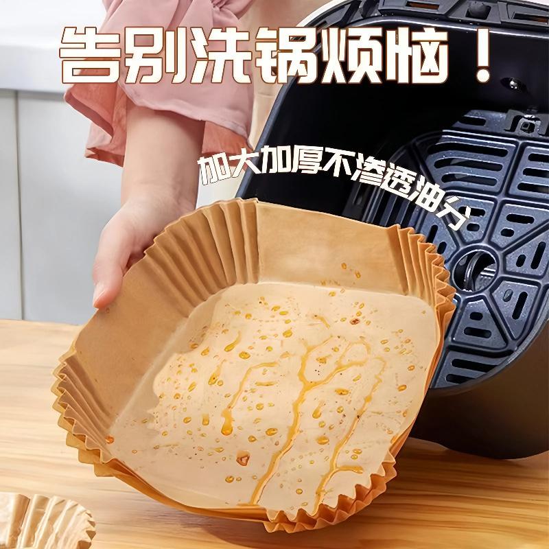 Plato de Papel Especial para Freidora de Aire Hogar Papel Absorbente de Aceite Libre de Lavado Barbacoa Redondo Comida Horno Horneado Papel de Aceite de Silicona Cuadrado