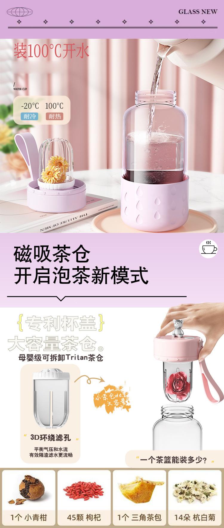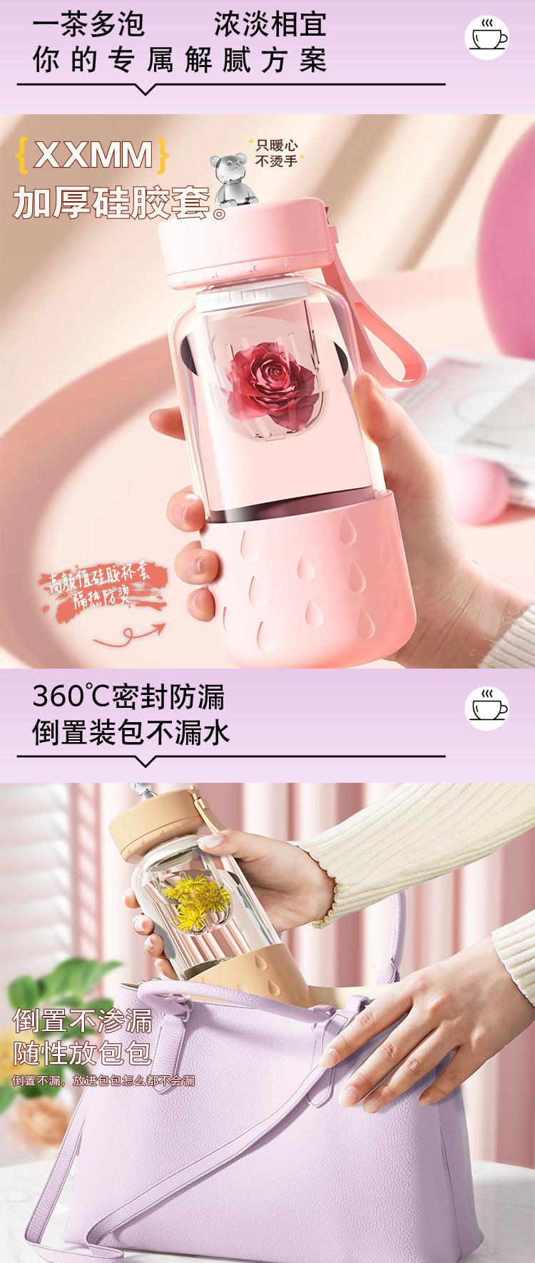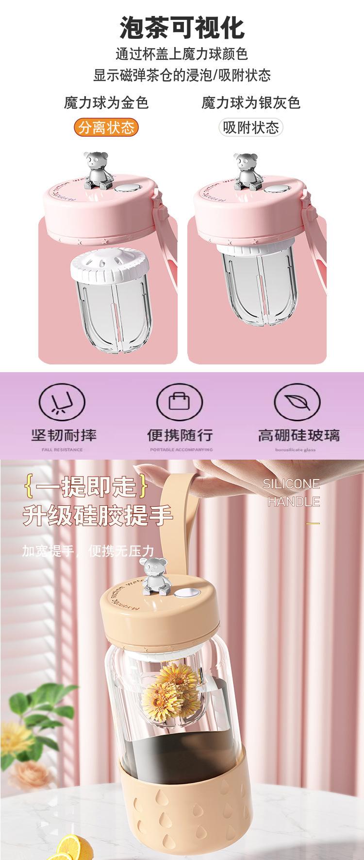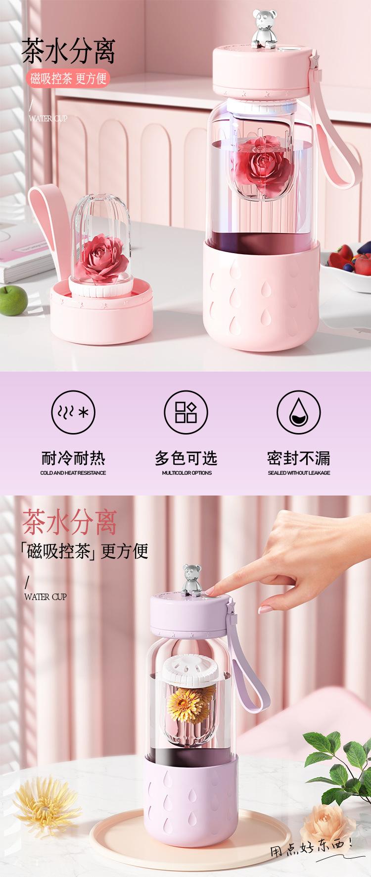 Taza de Agua de Vidrio de Borosilicato Alto de Lujo Ligero Magnética Portátil de Alto Valor Taza para Té de Flores para Mujer Nicho Taza para Té con Separación de Agua
