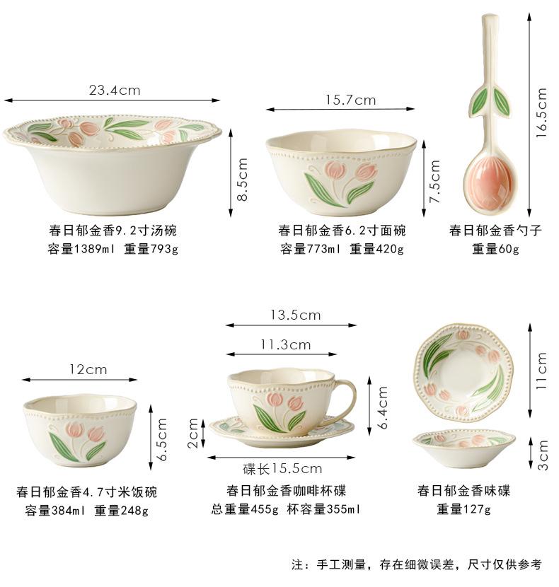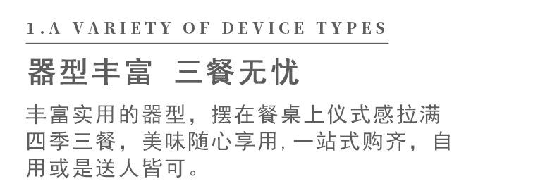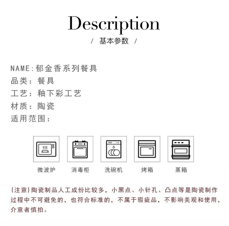 Precio de Venta Recomendado: Taza y Plato de Café 42.8 yuanes, Cuchara 8.4 yuanes, Platito para Salsa 10.8 yuanes, Tazón de Arroz de 4.7 pulgadas 18.5 yuanes, Tazón para Fideos de 6.2 pulgadas 29 yuanes, Tazón para Sopa de 9.2 pulgadas 53.6 yuanes, Plato Hondo de 8.6 pulgadas 35.5 yuanes, Plato Hondo de 8.6 pulgadas 44.5 yuanes, Plato Plano de 10.5 pulgadas 53.6 yuanes, Plato para Pescado de 12 pulgadas 49.8 yuanes