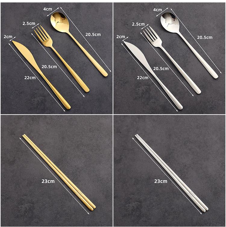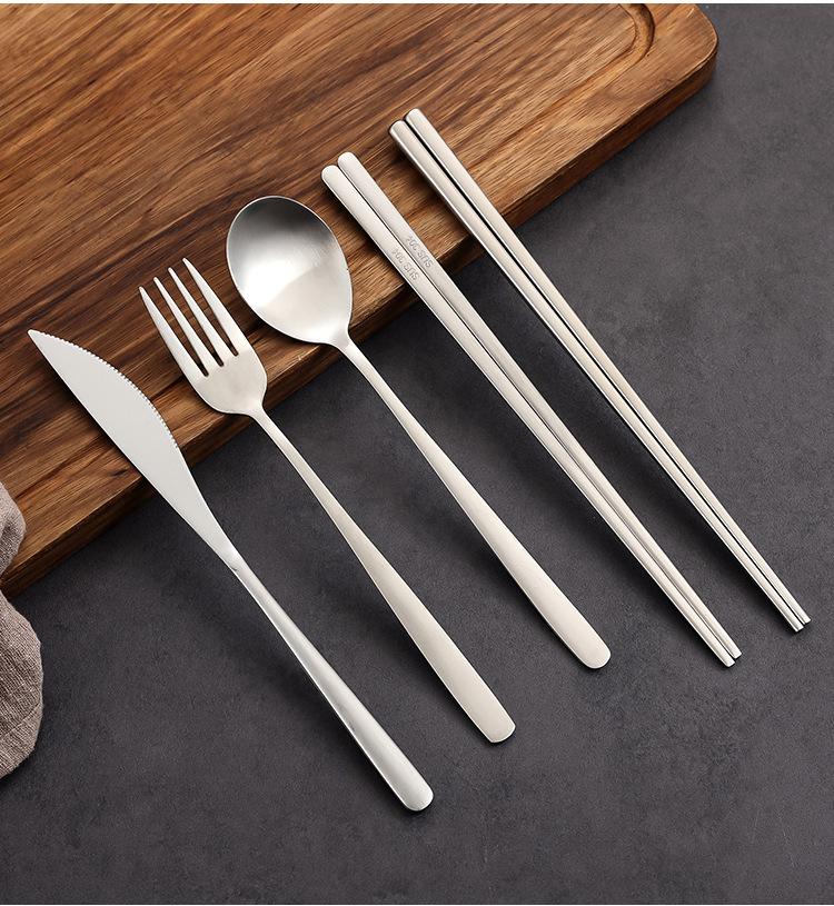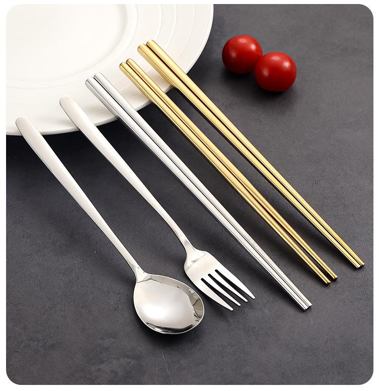 Palillos Cuchara Tenedor Acero Inoxidable Coreano 304 Juego de Cubiertos de Tres Piezas para Plato Principal Occidental Cuchillo y Tenedor Cuchara de Restaurante para Bistec